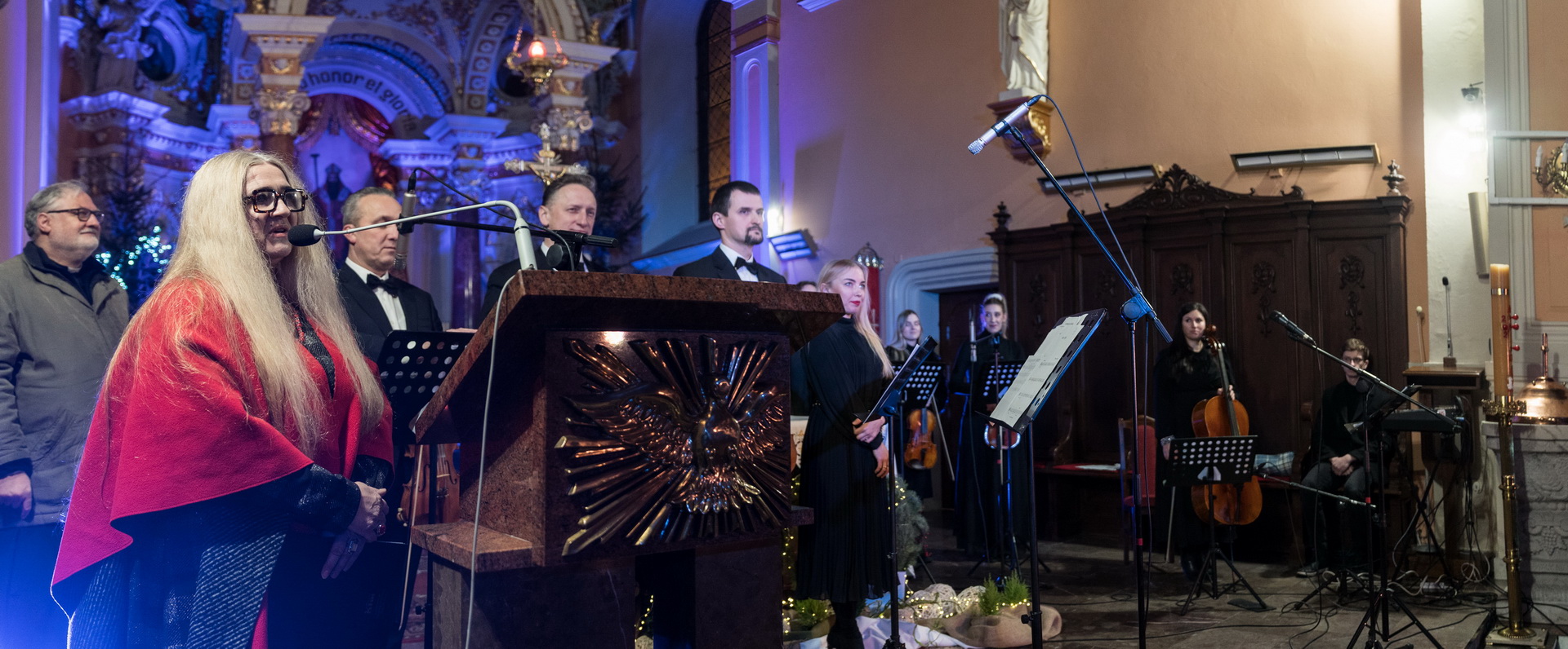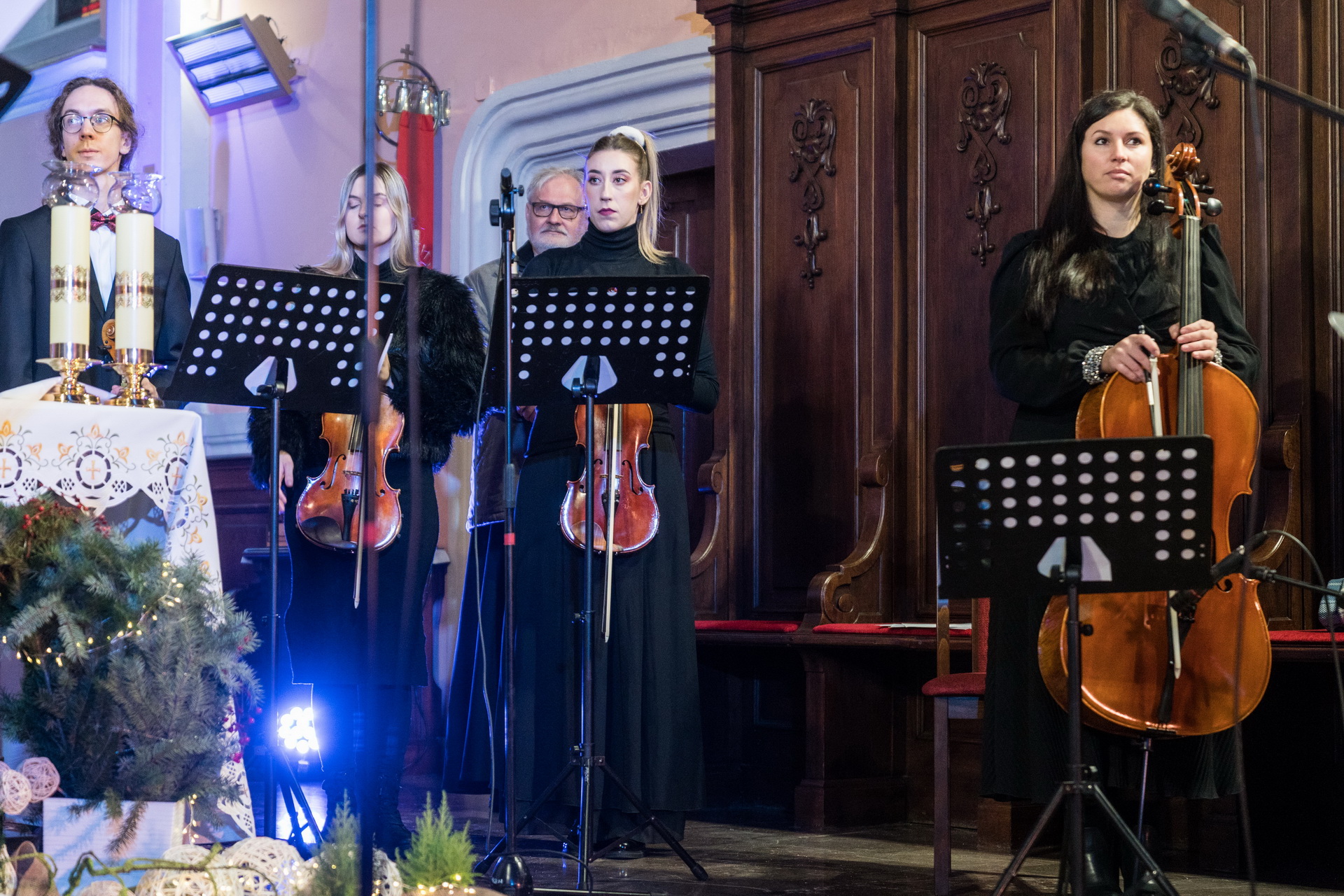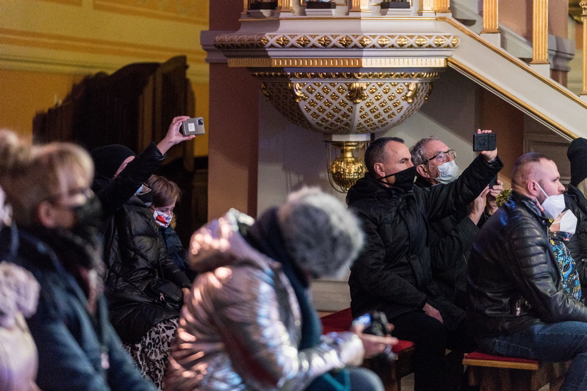 Ponad godzinny koncert w wykonaniu muzyków z Ad Libitum oczarował słuchaczy. W świątecznej atmosferze pięknie wybrzmiały najbardziej znane i kochane przez Polaków kolędy oraz pastorałki. Nie obyło się oczywiście bez bisów. Na początku muzycznego spotkania nie zabrakło, choć w tym roku bardzo symbolicznego ze względu na pandemię, opłatka, którym proboszcz św. Wojciecha, ks. Henryk Witczak, podzielił się z Mirosławem Grzanką.