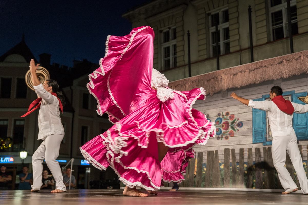 Niezwykle barwnie było w sobotni wieczór (24 sierpnia) na Placu Wolności za sprawą tancerzy z siedmiu krajów, którzy już trzynasty raz odpowiedzieli na zaproszenie poznańskich „Poligrodzian” oraz naszego miasta.