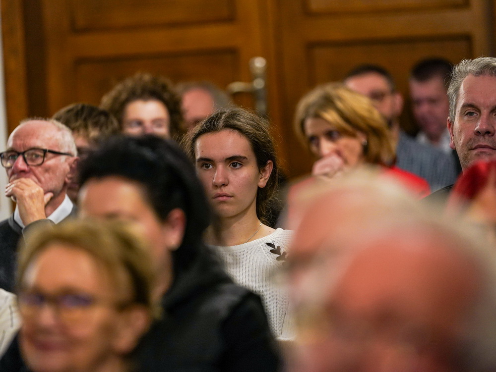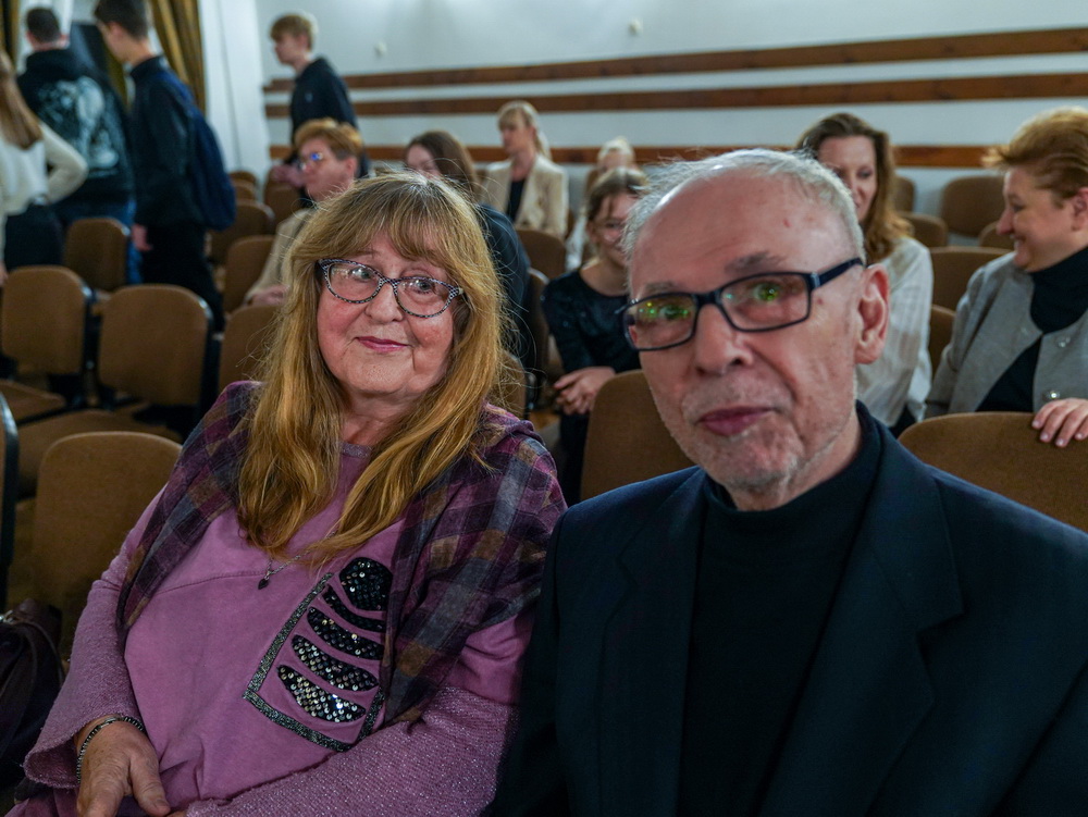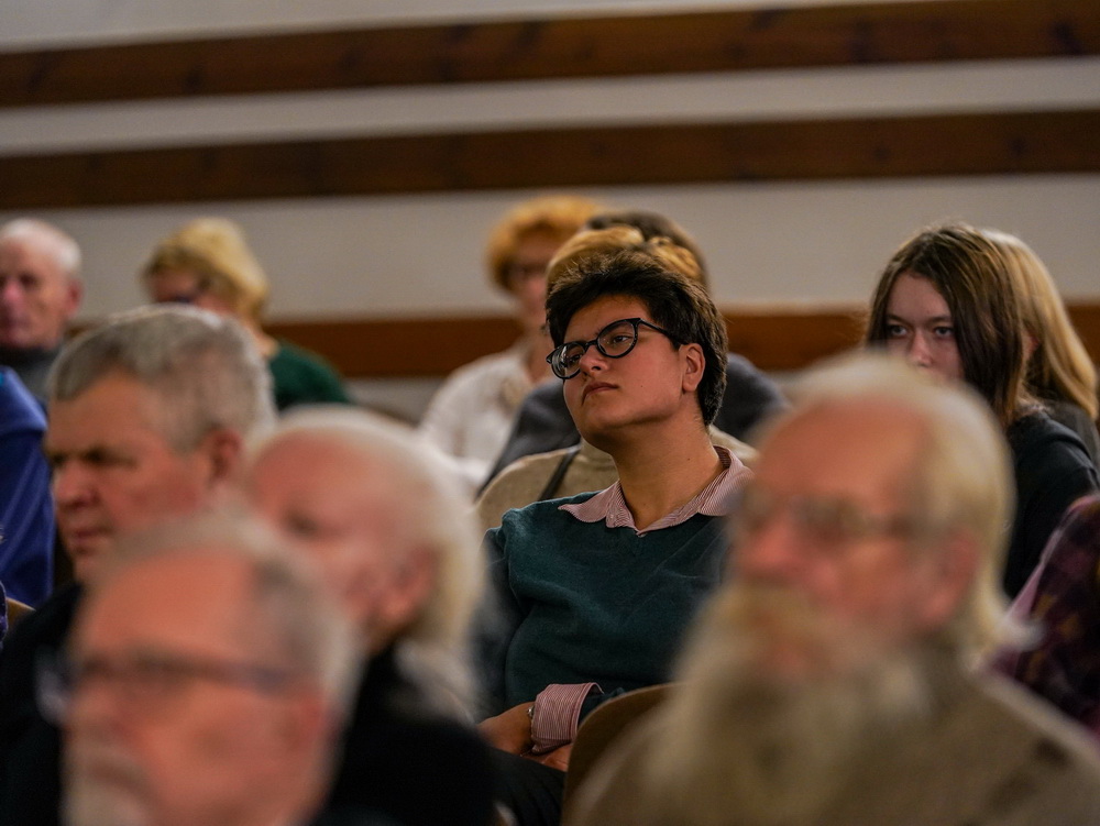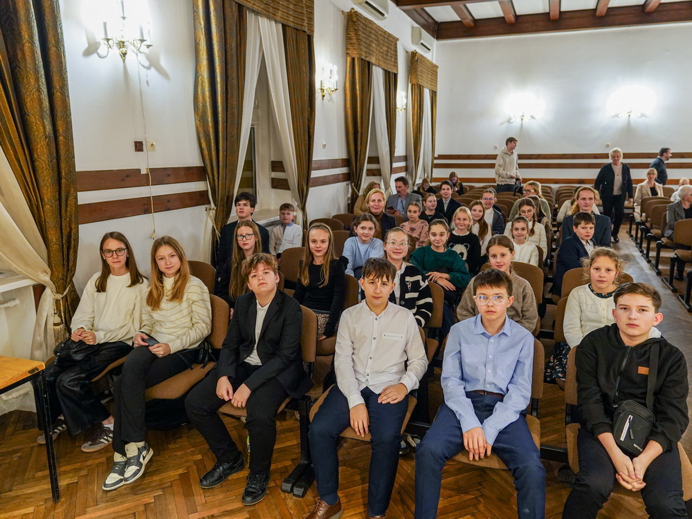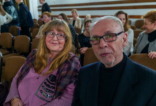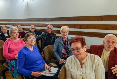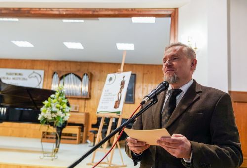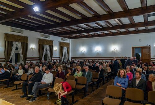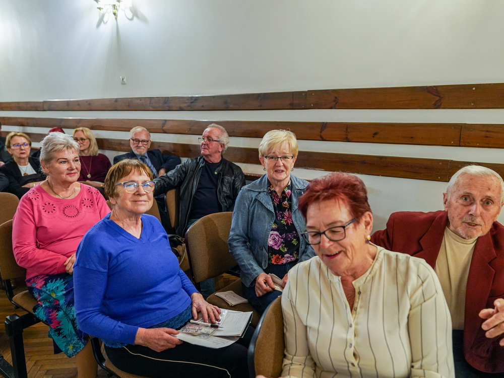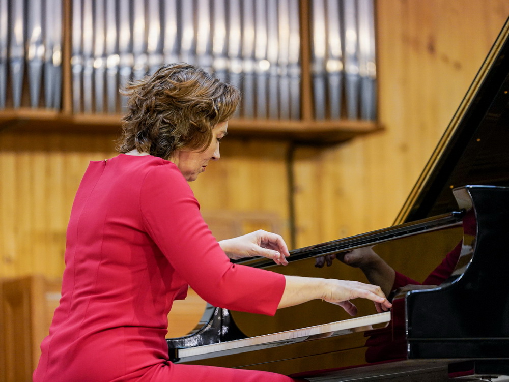 W galerii widać salę koncertową PSM w Koninie, siedzącą na krzesłach publiczność oraz koncertującą prof. dr hab. Magdalenę Lisak.