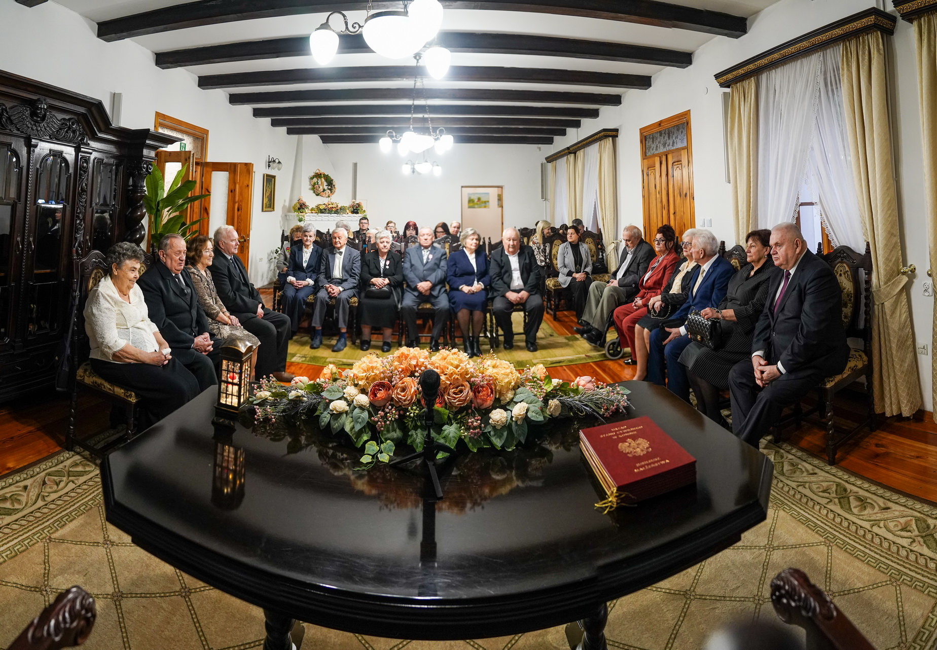 Oprócz medali, Jubilaci otrzymali pamiątkowe listy gratulacyjne oraz piękne bukiety kwiatów. Czas uroczystości wypełniony był serdecznymi życzeniami, miłymi rozmowami, toastem za zdrowie Jubilatów oraz sesją zdjęciową we wnętrzach urokliwego Dworku znanej pisarki Zofii Urbanowskiej.