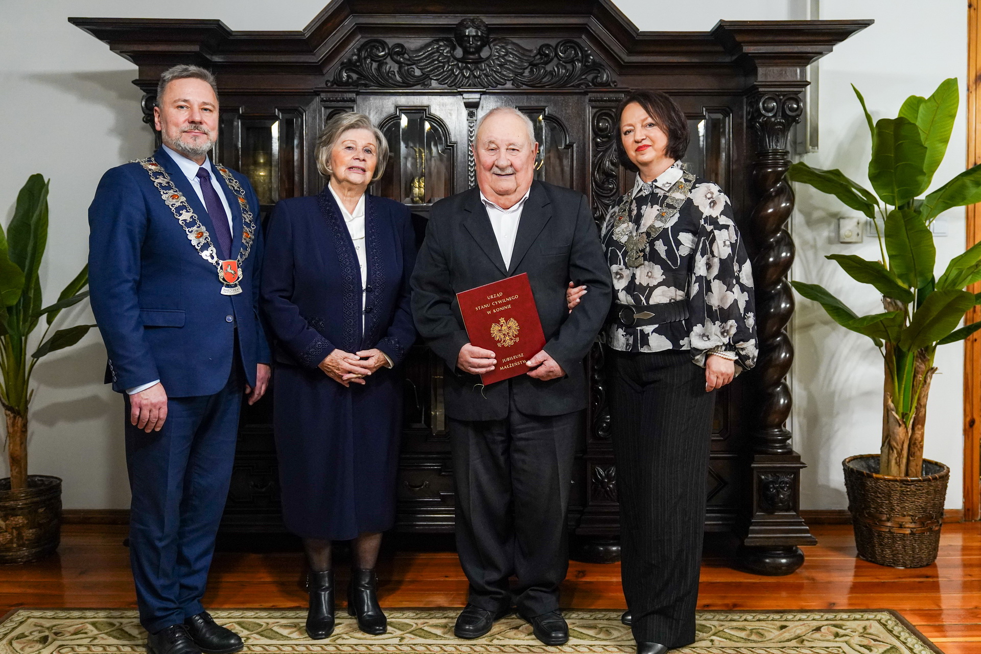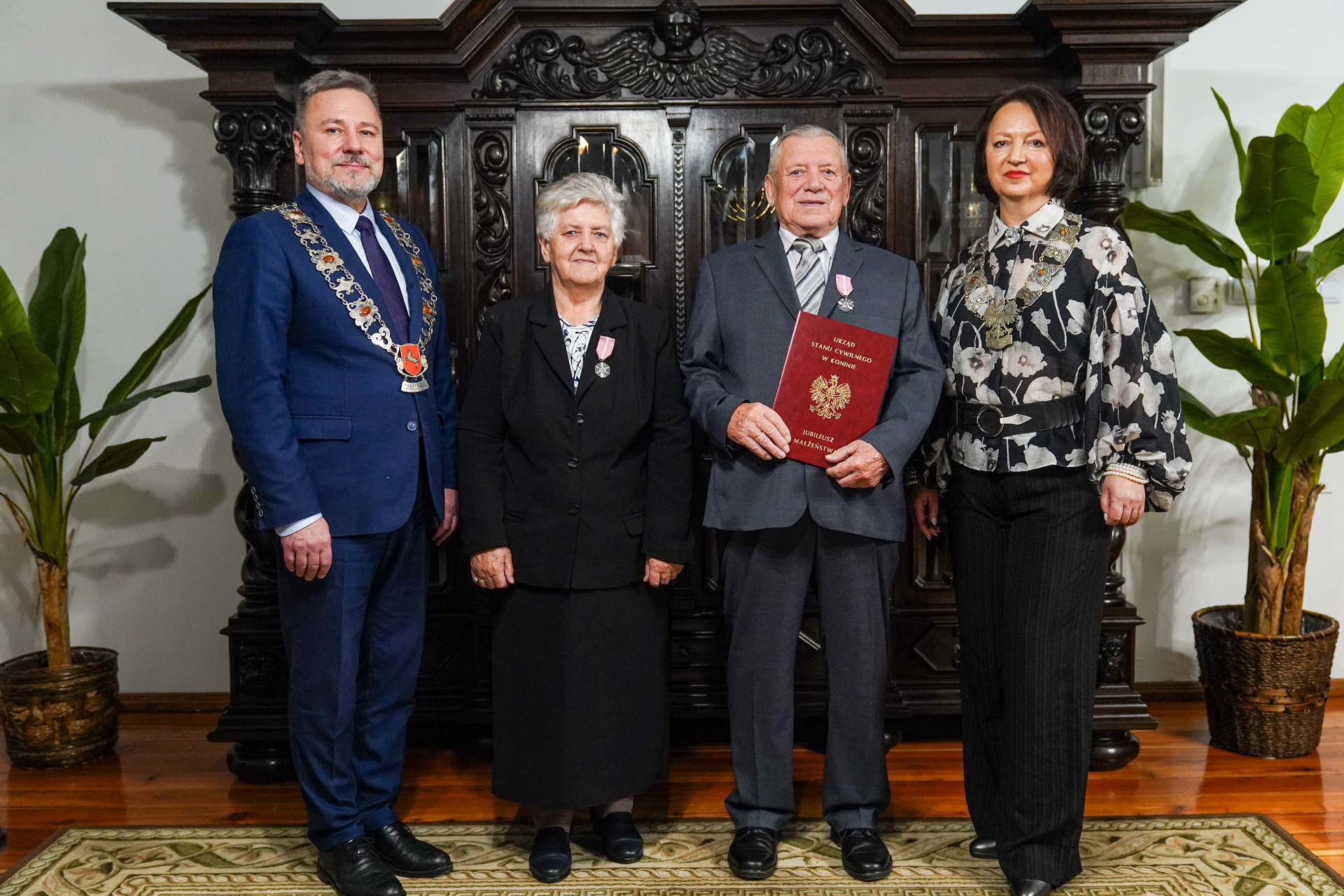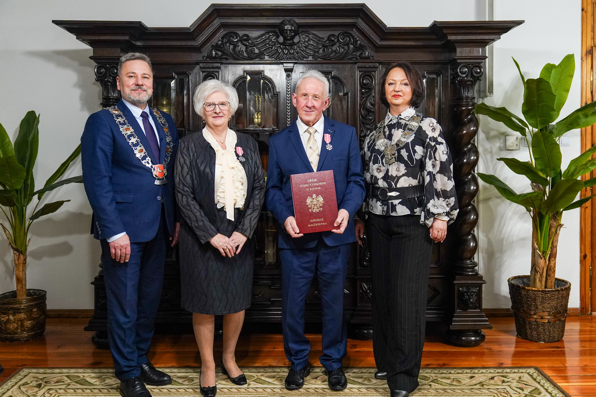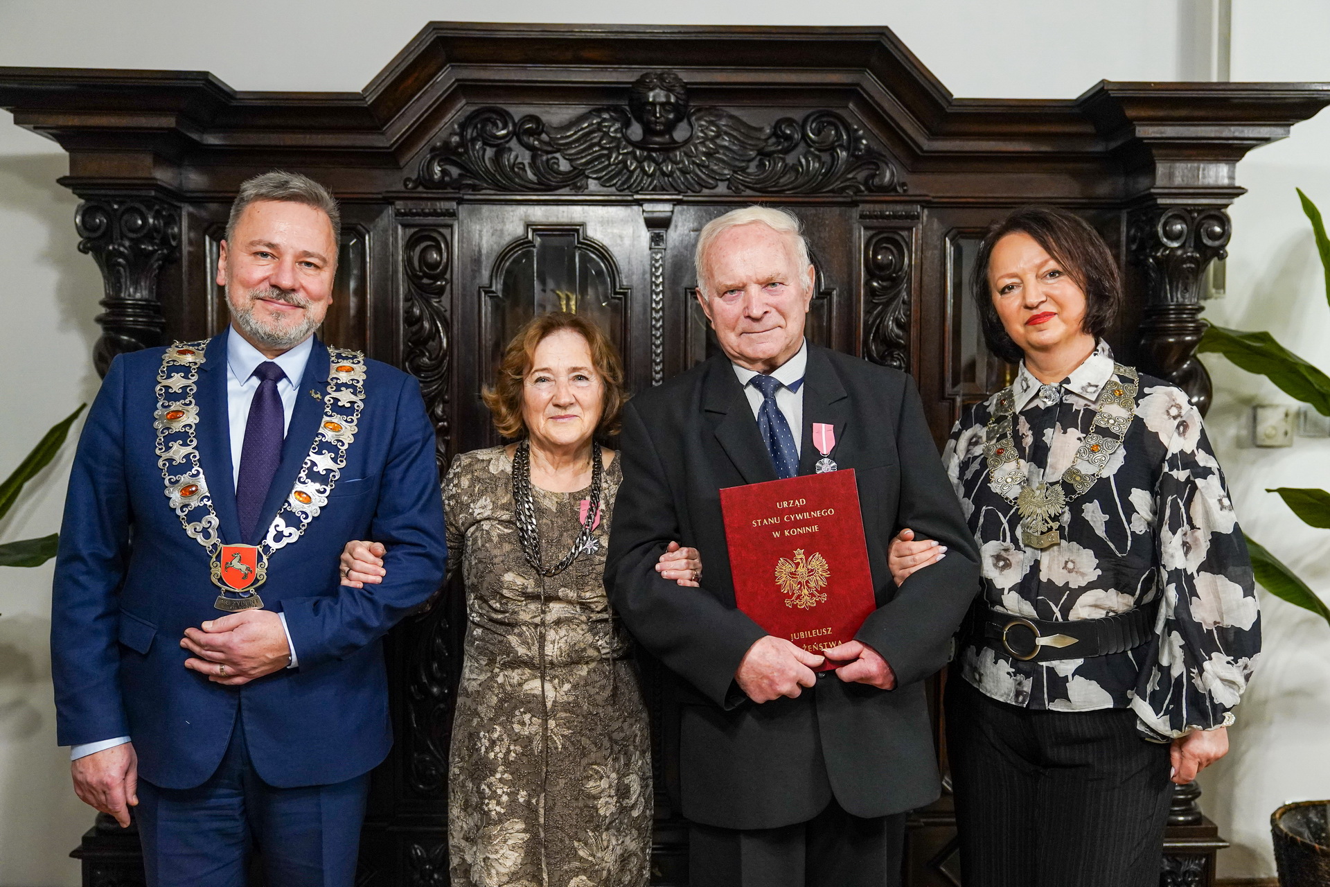 Wręczenia medali dokonał Prezydent Miasta Konina Piotr Korytkowski, któremu towarzyszyła Kierownik Urzędu Stanu Cywilnego Magdalena Kuznowicz-Górniak. Prezydent, pod adresem Dostojnych Jubilatów wyraził słowa uznania i podziękowania za wytrwałe, zgodne i pełne miłości pożycie małżeńskie, stanowiące wspaniały przykład dla młodego pokolenia. Wszystkim parom życzył cudownych, szczęśliwych lat życia i kolejnych pięknych jubileuszy.