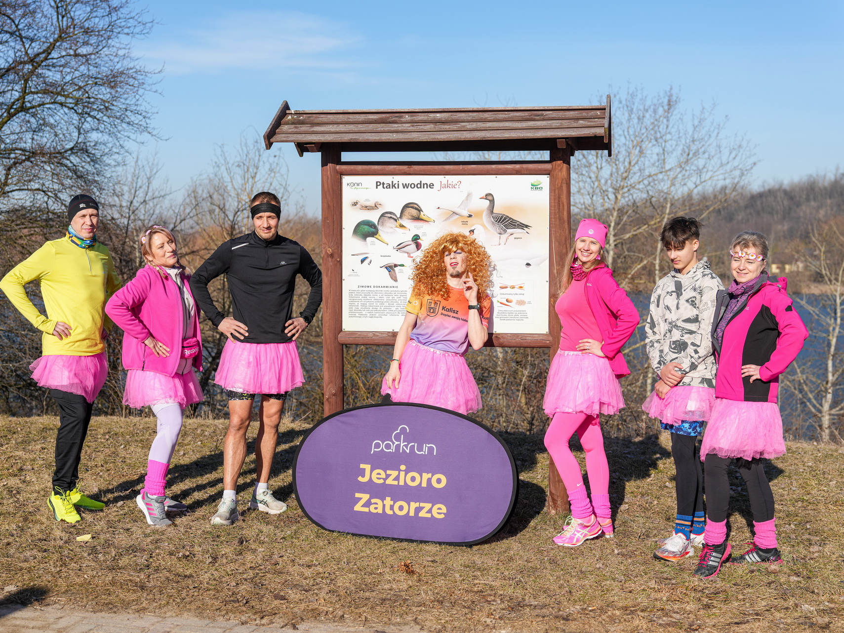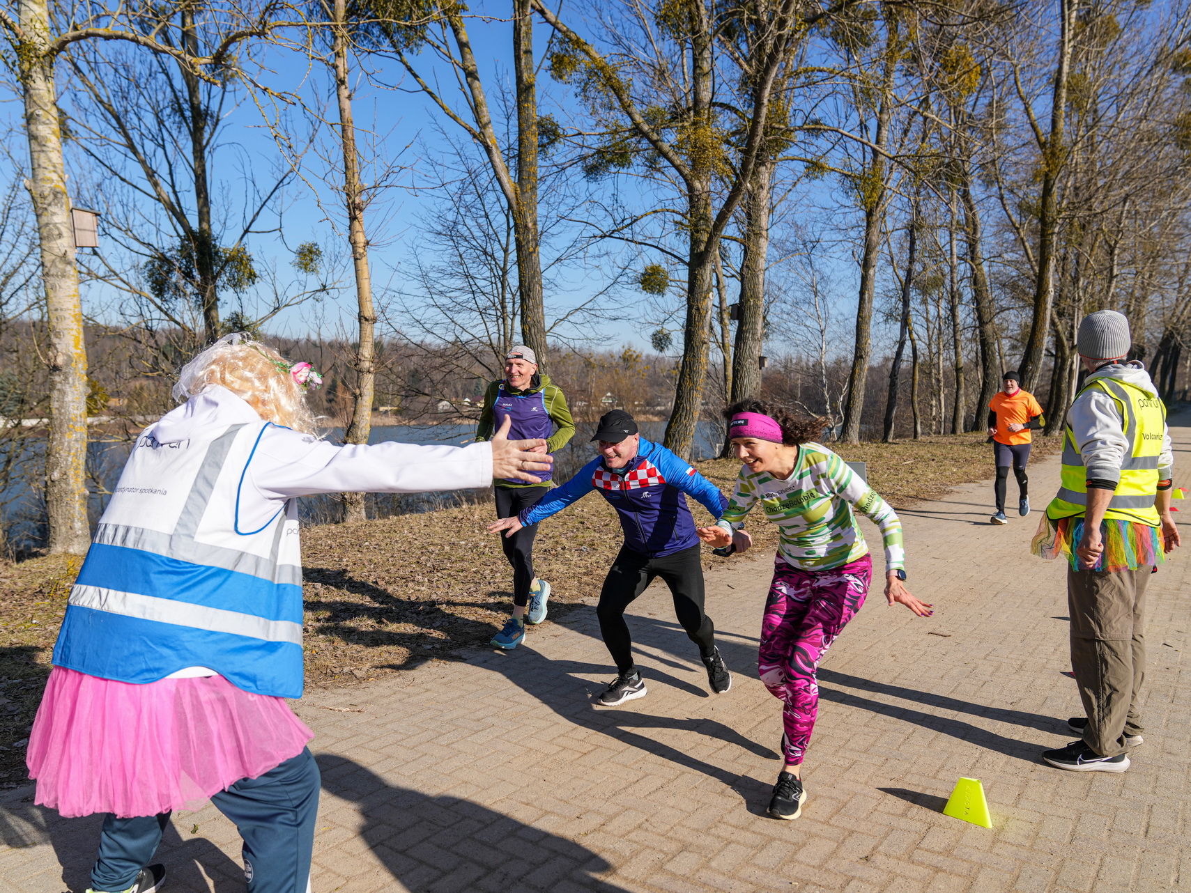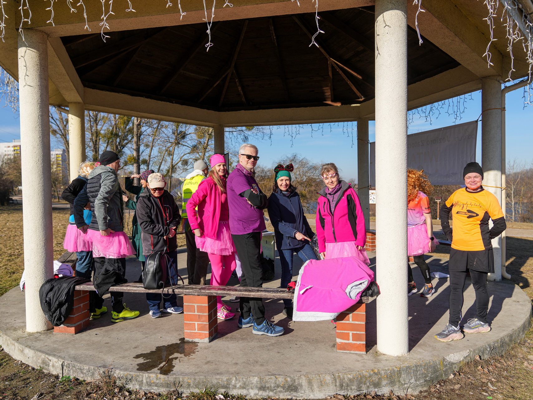 Oczywiście czasy liczyły się, ale nie były najważniejsze. Królowała zabawa, dobry humor i radość życia. Świadczyły o tym kolorowe (utrzymane w różu) przebrania biegaczy i trudny do rozpoznania Robert „Niedźwiedź” Zawadziński.