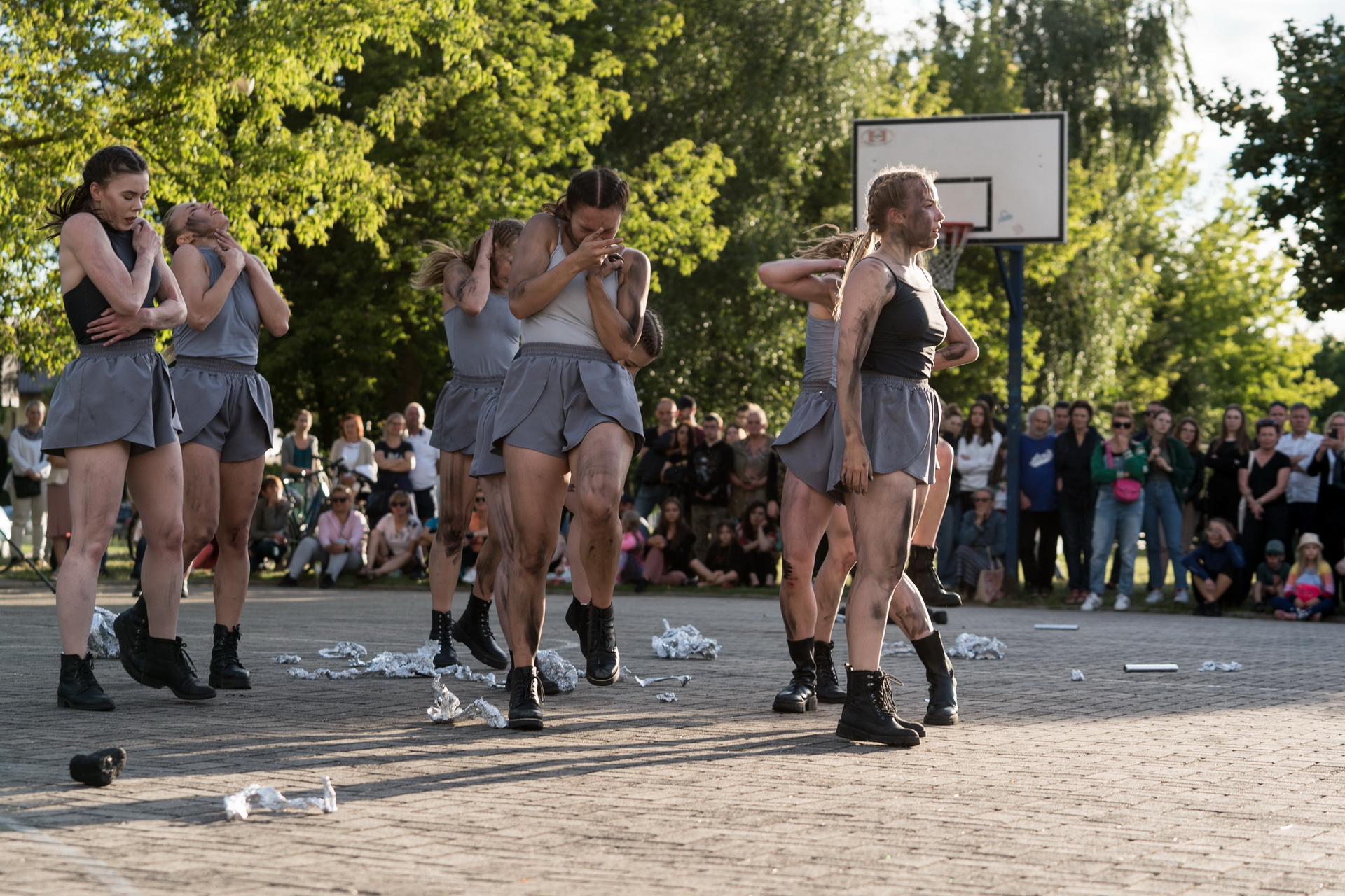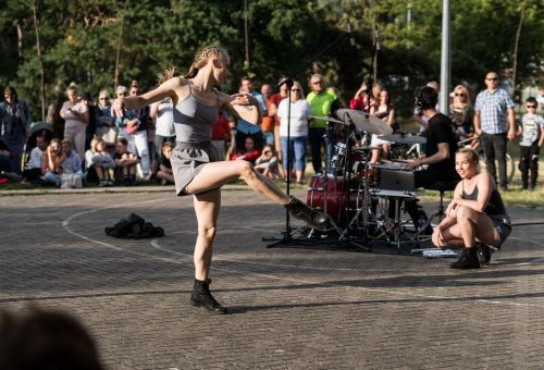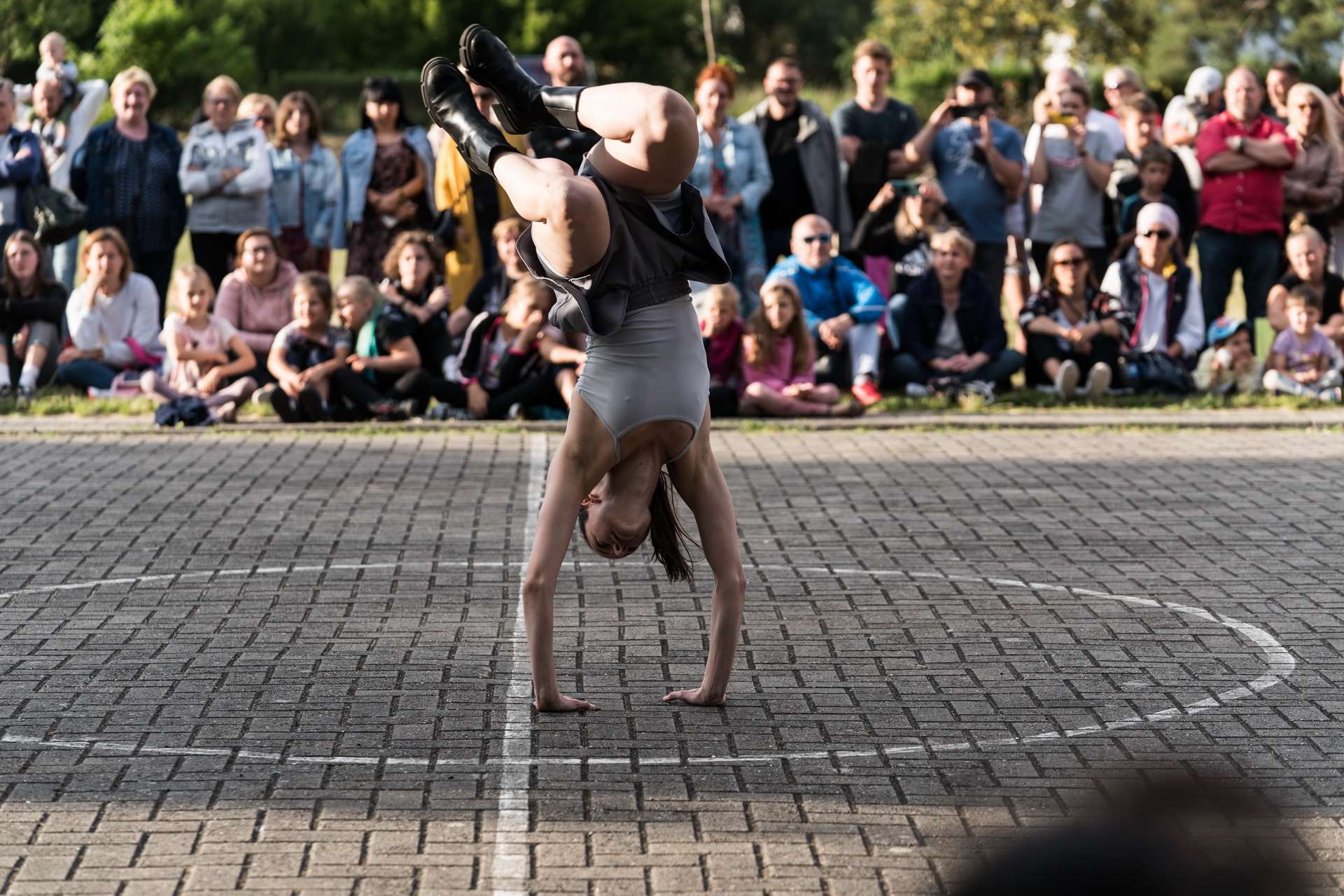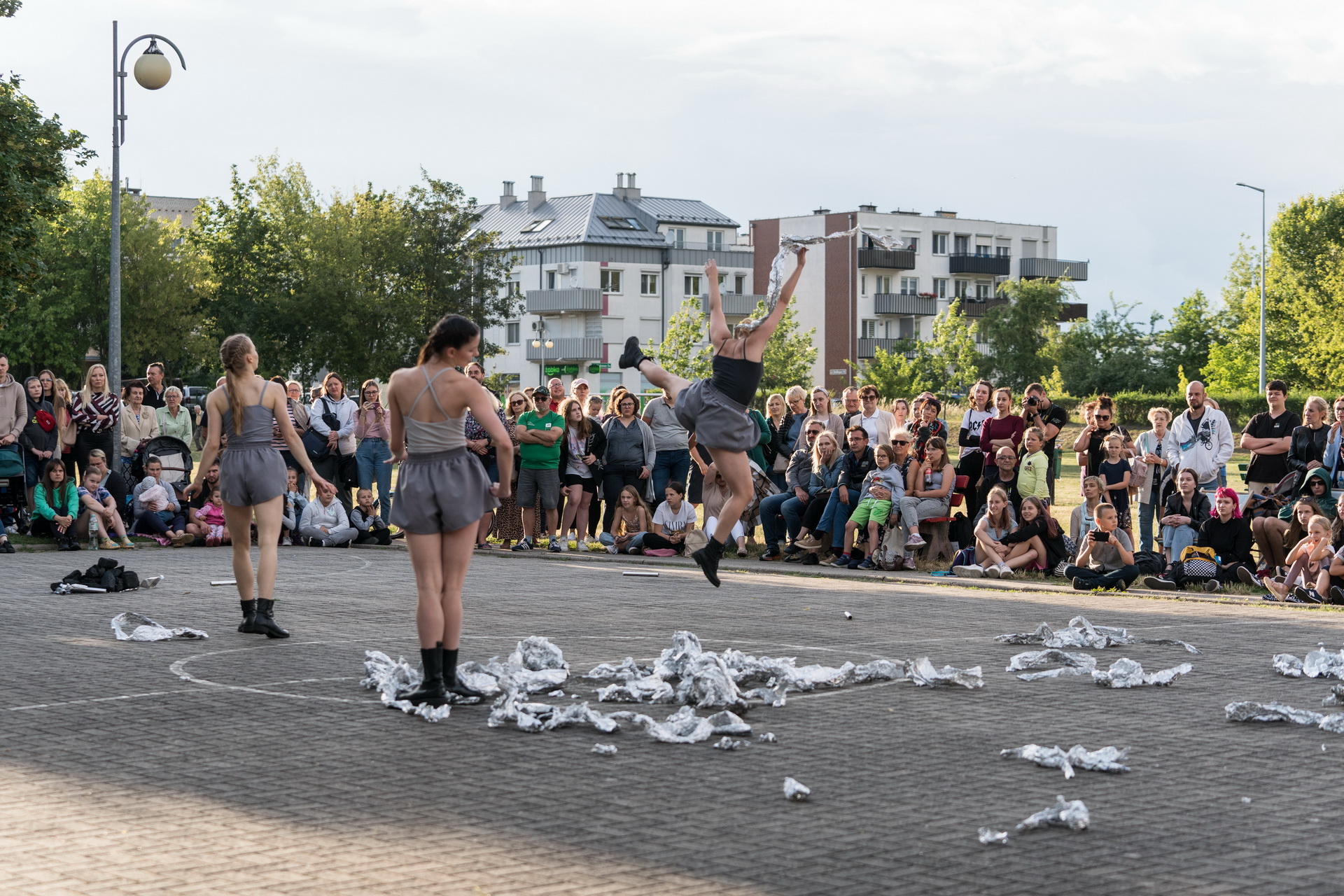 Tym razem na wybrukownym boisku na skwerze przy ul. Makowej (Chorzeń) swoją scenę rozłożył Festiwal Teatrów Otwórz Okno na Kulturę. Na niej, w sobotnie późne popołudnie (9 lipca) tancerki z Konińskiego Teatru Tańca zaprezentowały spektakl „Dowód bardzo osobisty”.