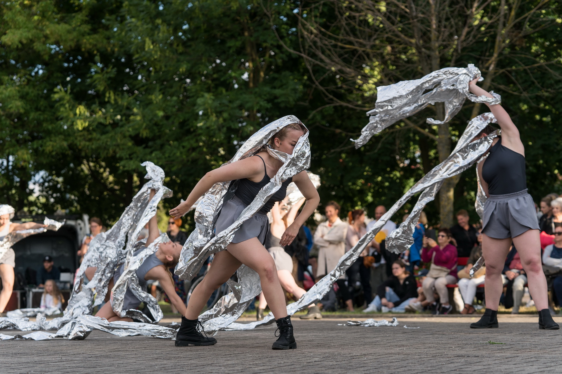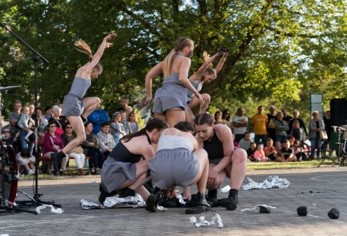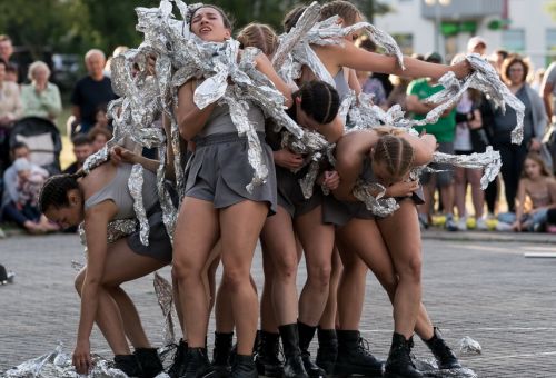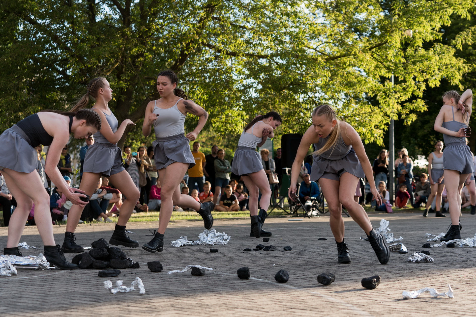 Tym razem na wybrukownym boisku na skwerze przy ul. Makowej (Chorzeń) swoją scenę rozłożył Festiwal Teatrów Otwórz Okno na Kulturę. Na niej, w sobotnie późne popołudnie (9 lipca) tancerki z Konińskiego Teatru Tańca zaprezentowały spektakl „Dowód bardzo osobisty”.