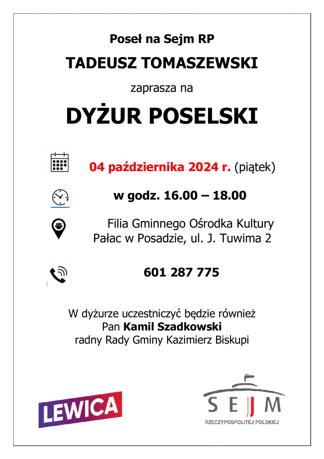 Dyżur Poselski - Poseł na Sejm RP Tadeusz Tomaszewski