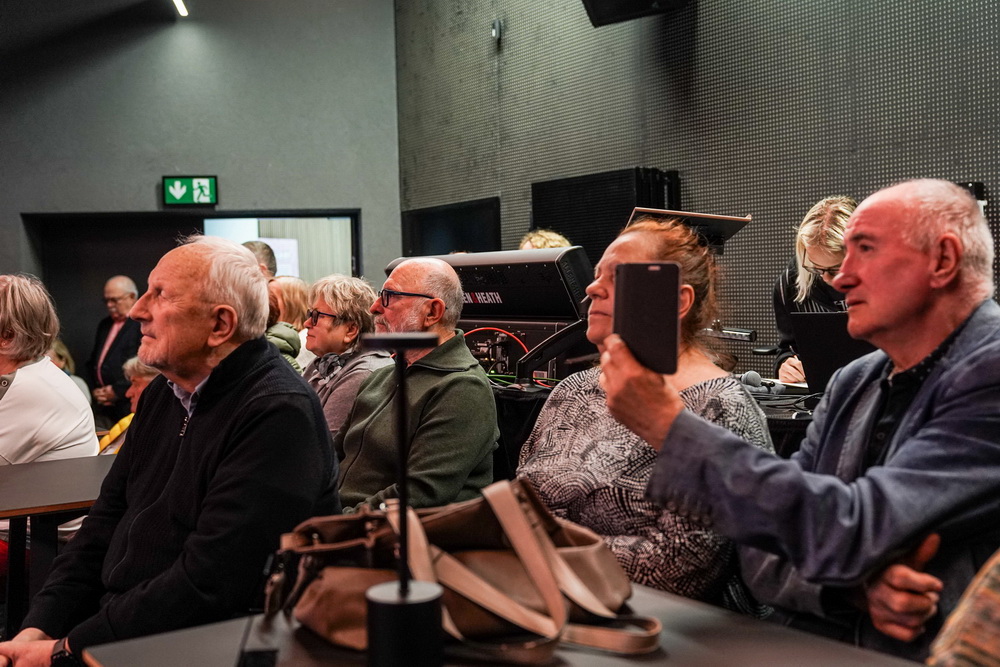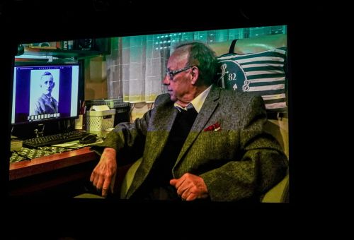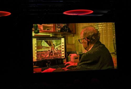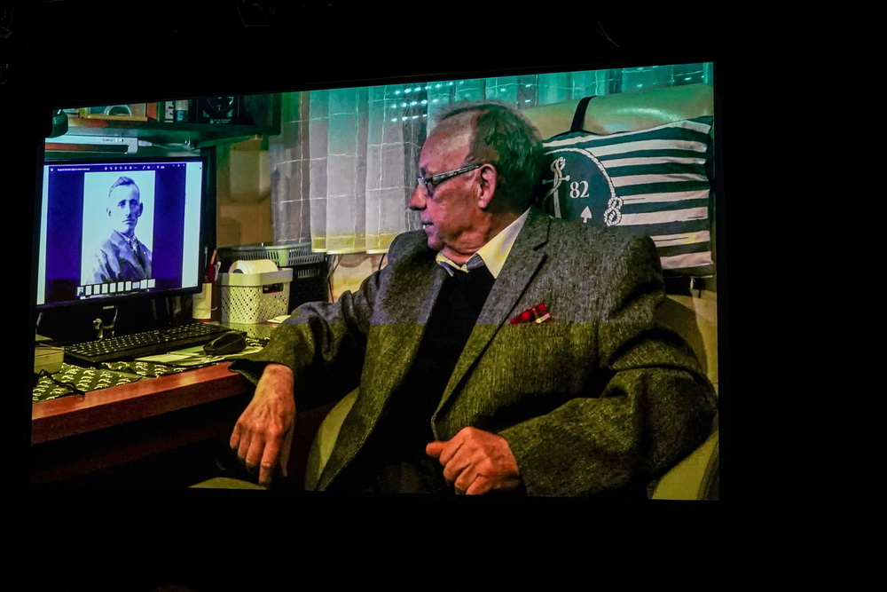 Na zdjęciach widać: kadry z filmu, gości na widowni, prowadzących spotkanie autorów filmu, fragmenty wystawy.
