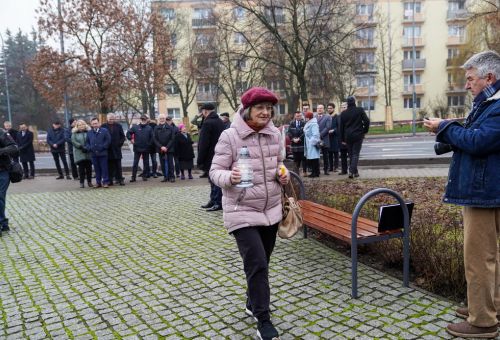 Po przemówieniach uczestnicy rocznicowych obchodów – oficjalne delegacje oraz mieszkańcy złożyli przed głazem kwiaty i zapalili znicze.