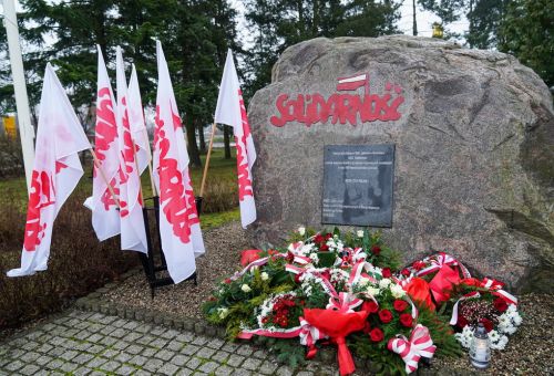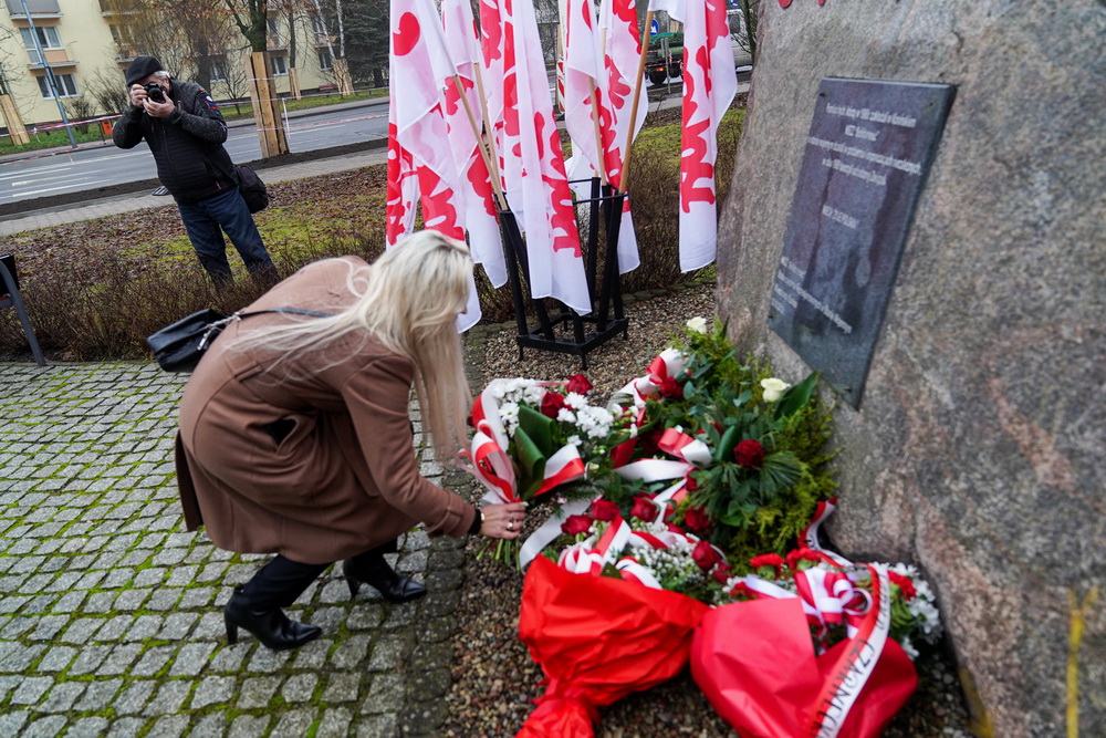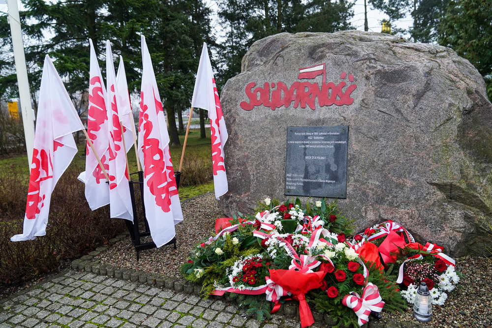 Przed głazem upamiętniającym działaczy Solidarności odbyły się konińskie obchody 44. rocznicy wprowadzenia stanu wojennego w Polsce.