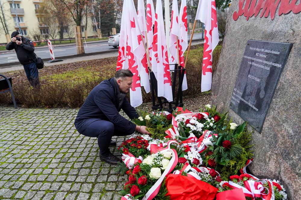 Prezydenta Konina reprezentował Rafał Duchniewski, sekretarz miasta. – Nikt nie ma dzisiaj wątpliwości, że wprowadzenie stanu wojennego w 1981 roku to jedno z najbardziej dramatycznych wydarzeń w historii powojennej Polski. Tysiące osób internowano, wielu zginęło, rozdzielono rodziny, społeczeństwo zostało pogrążone w strachu i swego rodzaju beznadziei. Władza komunistyczna zabrała ludziom nadzieję na pokojowe zmiany, na wprowadzenie nowego, demokratycznego ustroju, co w zasadzie odcisnęło piętno na całych latach 80. i przez długi czas opozycja solidarnościowa dźwigała się z tego ciosu. Myślę, że stan wojenny jest też dla nas dzisiaj symbolem, że wolność i demokracja nie są dane raz na zawsze. Musimy o tym pamiętać i dbać o to, by nigdy takie mroczne czasy nie wróciły – mówił Duchniewski.