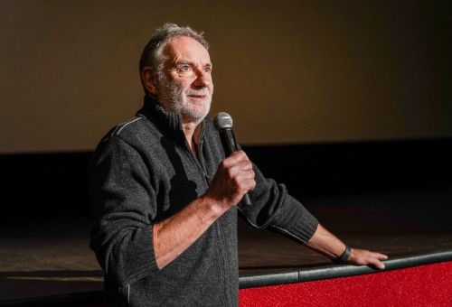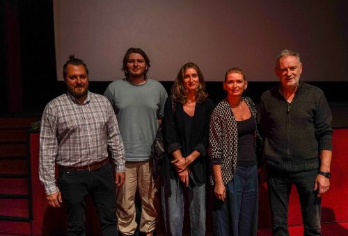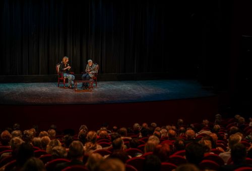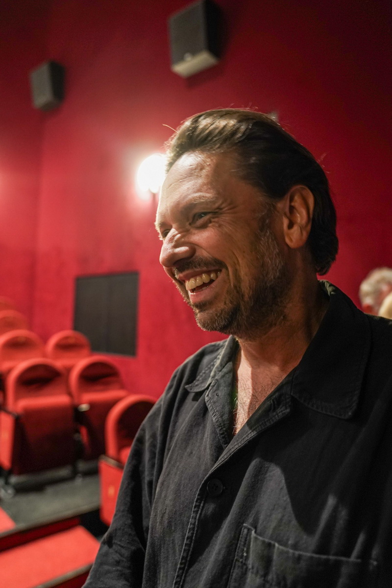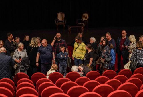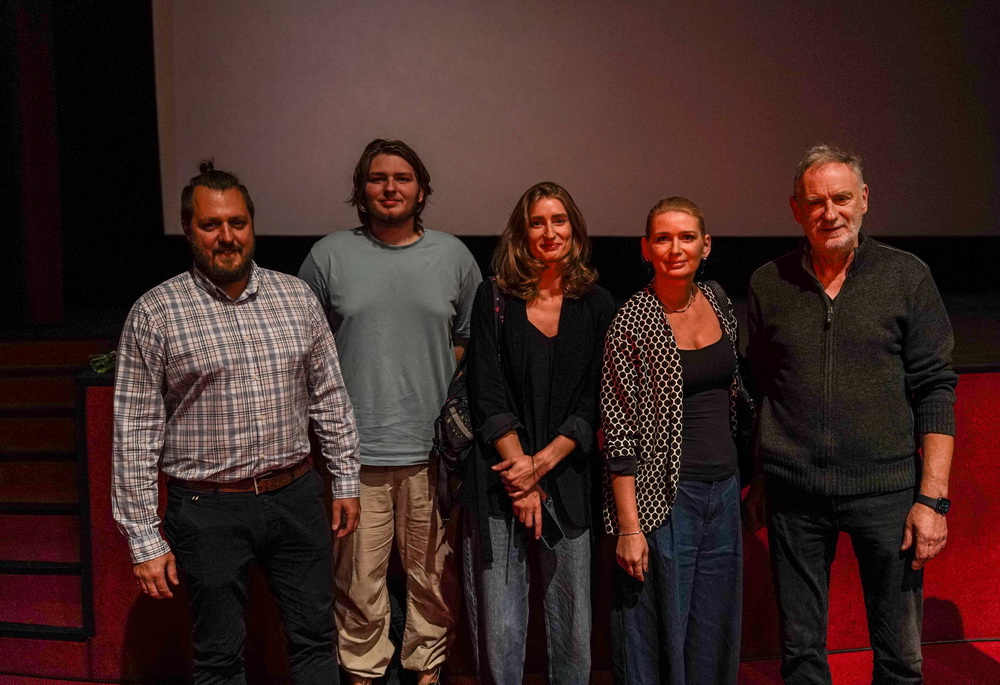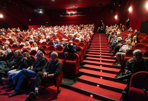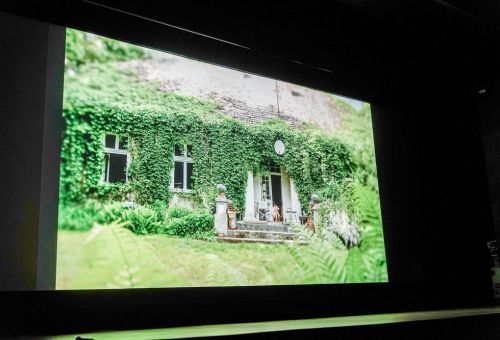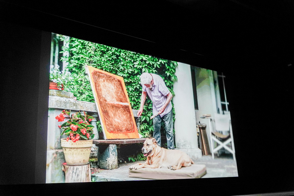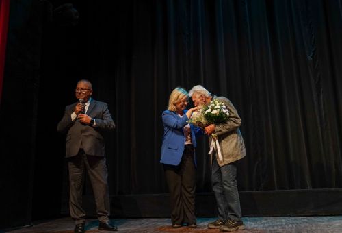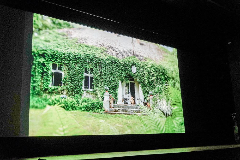 Zdjęcia przedstawiają widownie w KCK, Jana Sznajdra siedzącego na fotelu widowni i na scenie podczas rozmowy po filmie, widać kadry z filmu i osoby składające życzenia bohaterowi.