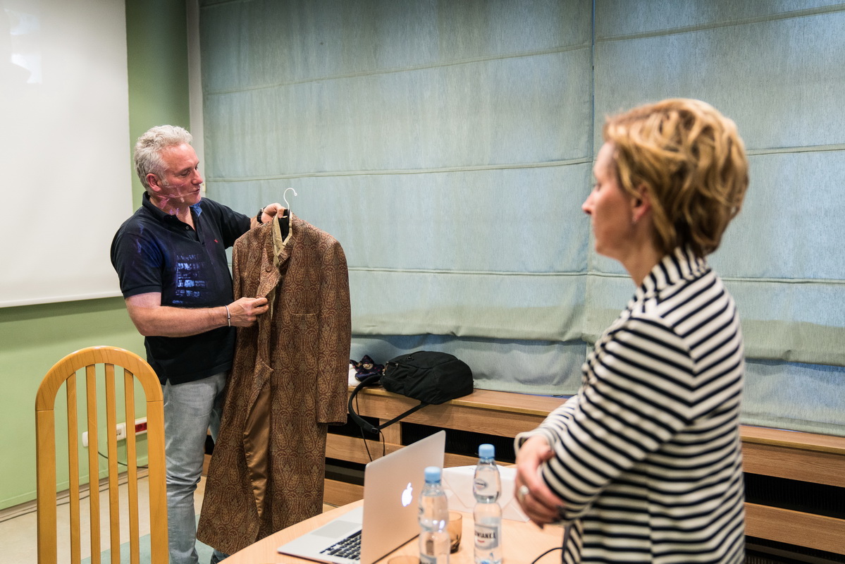 Na koniec zaprezentował swoje indyjskie stroje, przy okazji wyjaśniając skąd wziął się najpierw polski kontusz, a później... europejska marynarka. Interesująco opowiedział też zaskoczonym paniom o... szalu.
