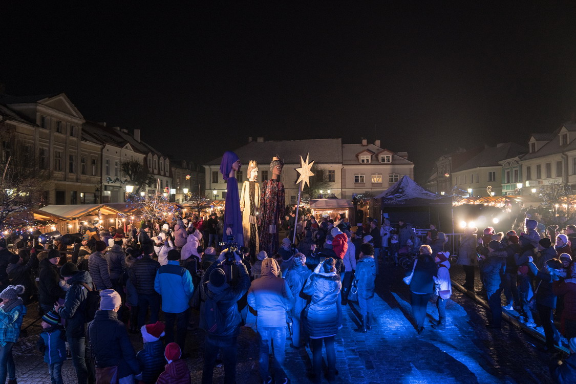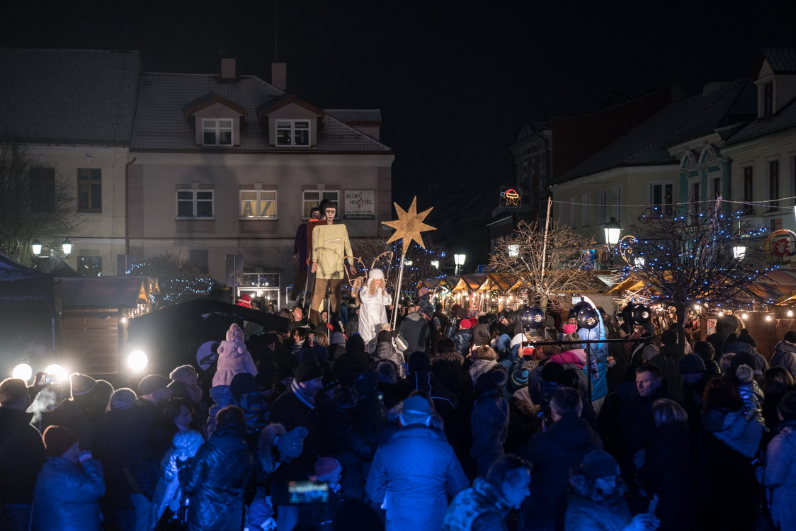 Zwieńczeniem jarmarku był spektakl teatru ulicznego, w którym zagrały 5-metrowe lalki, prezentujące biblijną historię Jezusowych narodzin. Całość zwieńczyło wspólne śpiewanie kolęd.