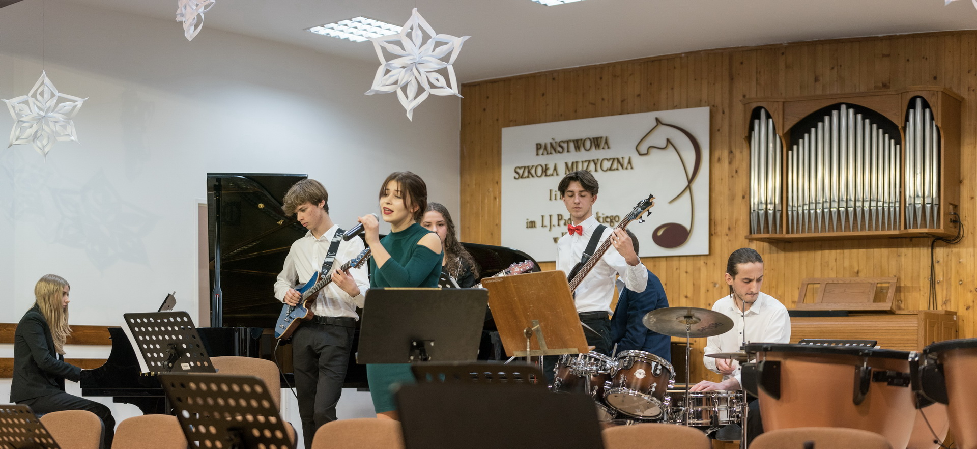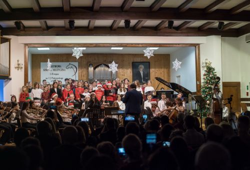 Aula Państwowej Szkoły Muzycznej I i II st. im. Ignacego J. Paderewskiego w środowy wieczór (21 grudnia) pękała w szwach. Tłoczno było na scenie, jeszcze bardziej na widowni. Wszyscy – i wykonawcy, i publiczność – chcieli posłuchać i pośpiewać najpiękniejszych kolęd.