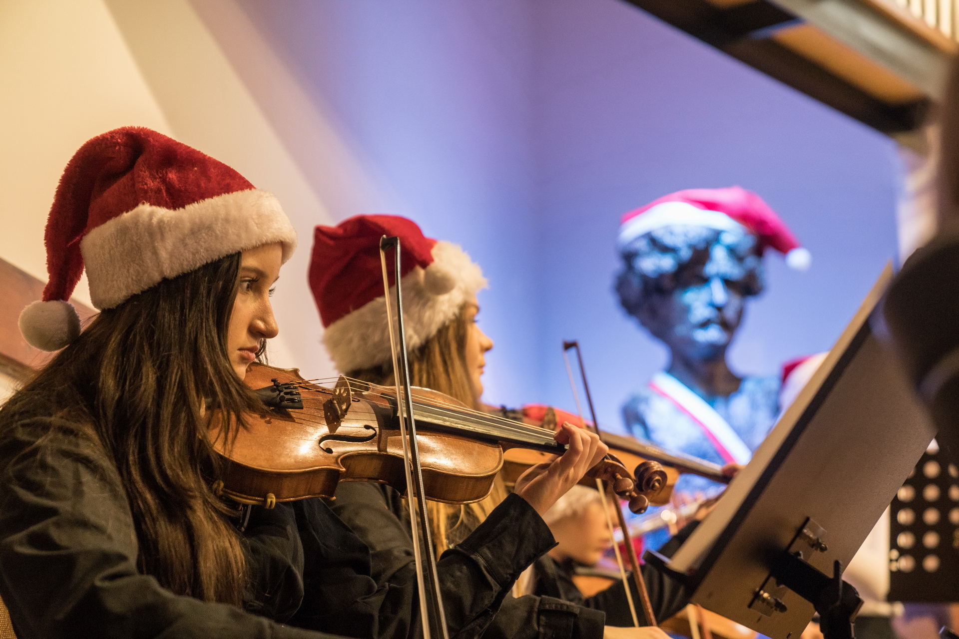 Tegoroczny Koncert Bożonarodzeniowy uczniów, nauczycieli i absolwentów naszego „Muzyka” przyciągną tłumy. Dość powiedzieć, że wielu słuchało wspaniałej muzyki w wykonaniu wspaniałych artystów nawet na szkolnych korytarzach. Zabrzmiały kolędy na jazzowo i klasyczne. Najpopularniejszy świąteczny przebój zaprezentowała szkolna orkiestra dęta. A szkolna orkiestra symfoniczna, z towarzyszeniem chóru, wykonała świąteczne utwory Bacha i Czajkowskiego.