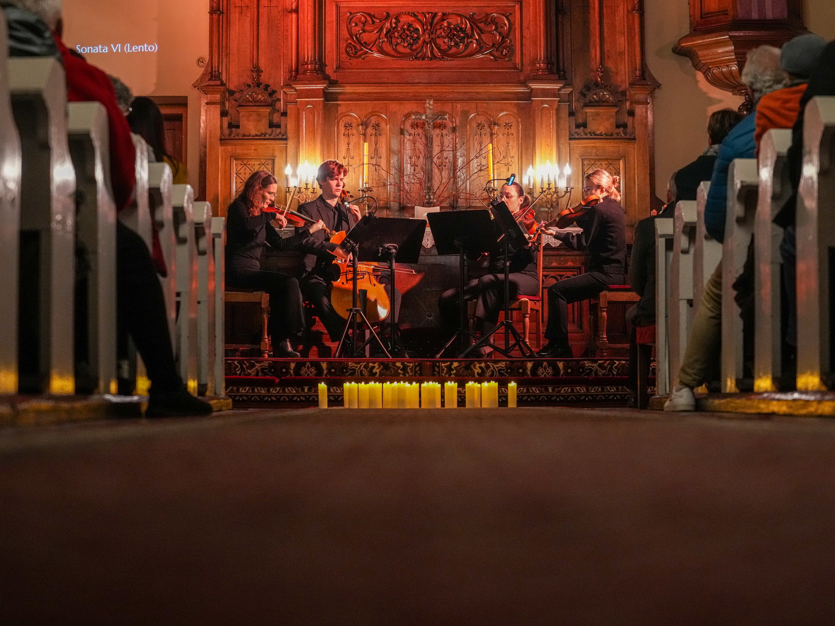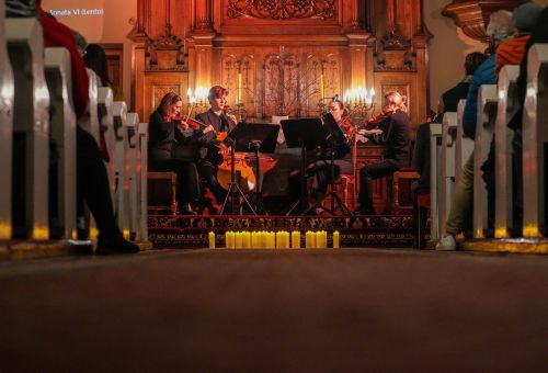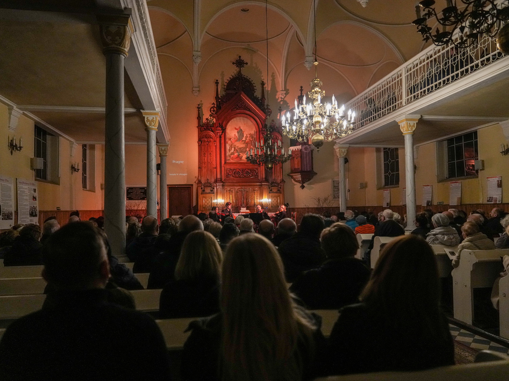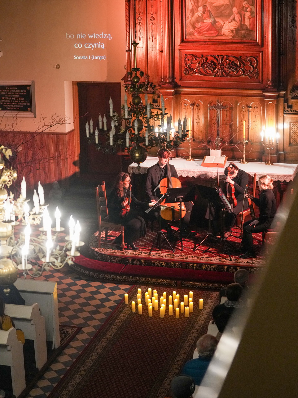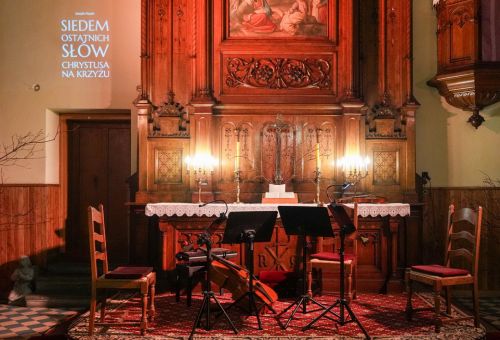Zdjęcia przedstawiają koncert „Siedem ostatnich słów Chrystusa na krzyżu” Josepha Haydna w ramach cyklu Muzyka w Ewangelickim. Wykonał go kwartet Camera Musica Gnesnensis orkiestry barokowej Capella Musica Gnesnensis