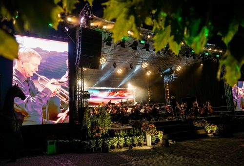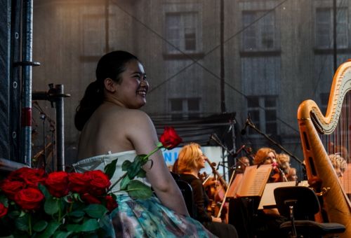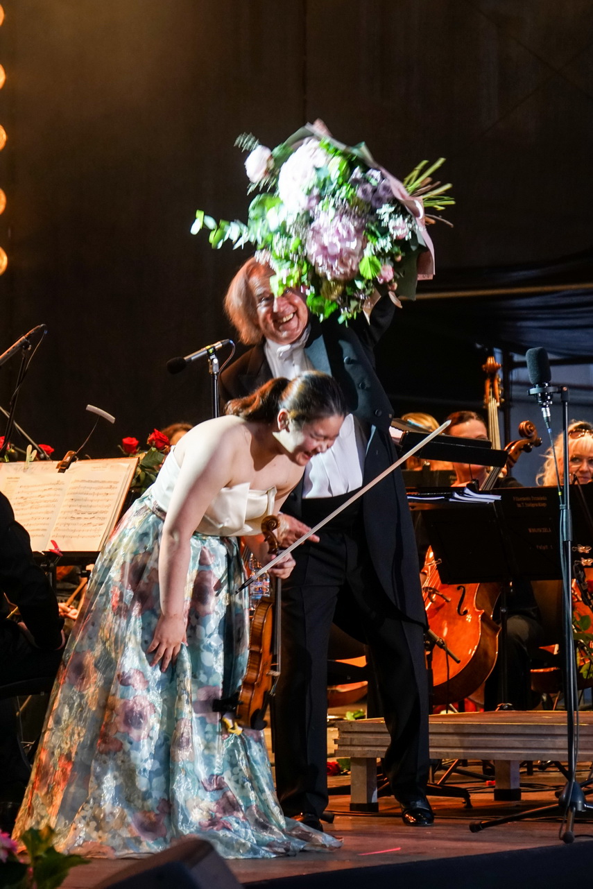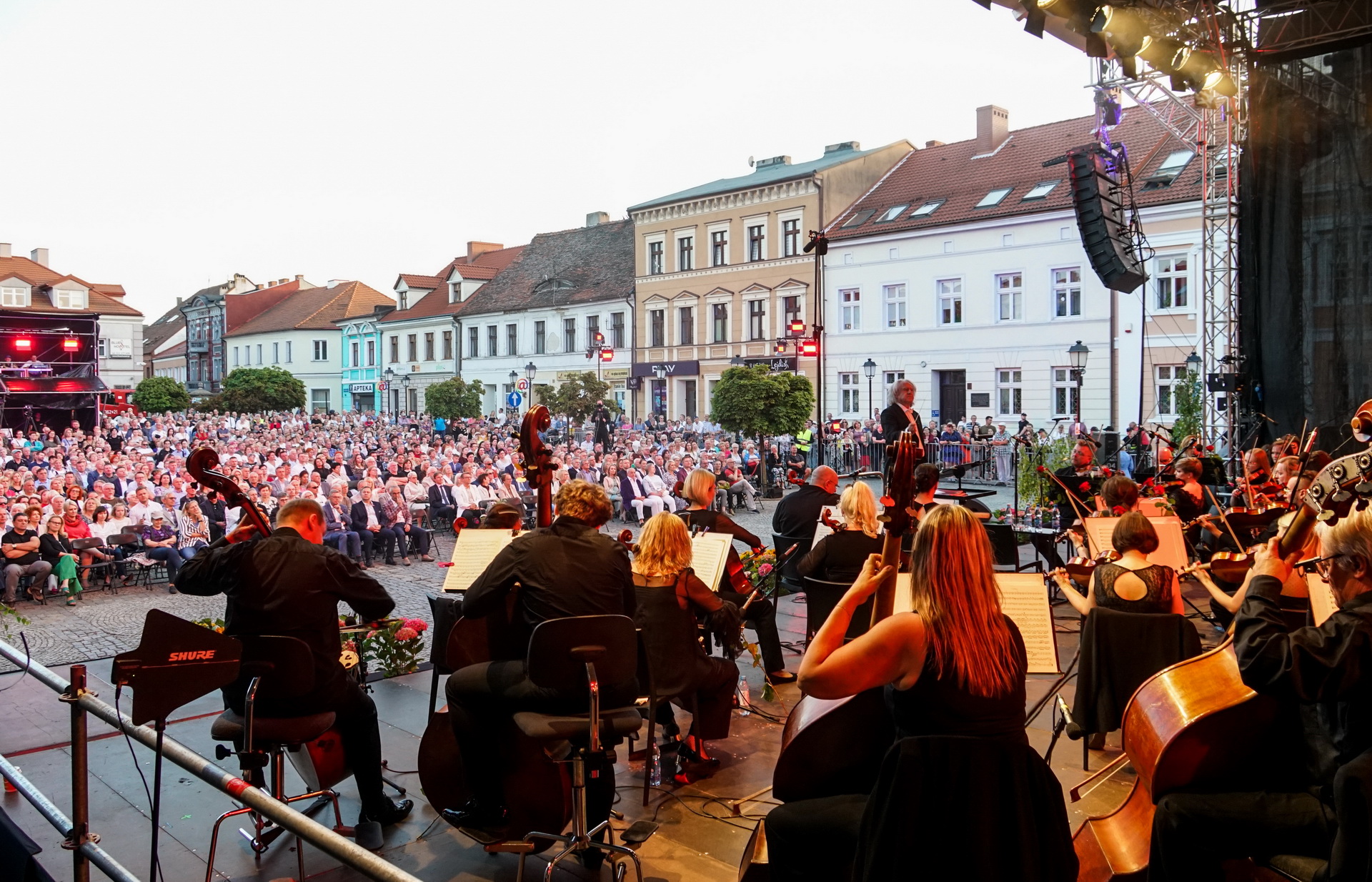 Na scenie ustawionej na placu Wolności zagrali filharmonicy poznańscy (Orkiestra Filharmonii Poznańskiej im. Tadeusza Szeligowskiego) pod batuta niezwykłego Marka Pijarowskiego. Z nimi wystąpiła, kończąc właśnie w naszym mieście turne pokonkursowe, japońska skrzypaczka, grająca na Stradivariusie Hinas Maeda, laureatka pierwszej nagrody i kilku innych ostatniego Międzynarodowego Konkursu Skrzypcowego im. Henryka Wieniawskiego w Poznaniu.