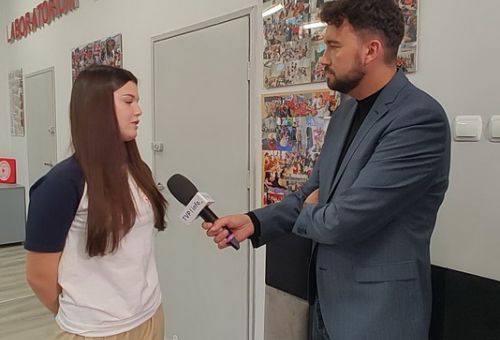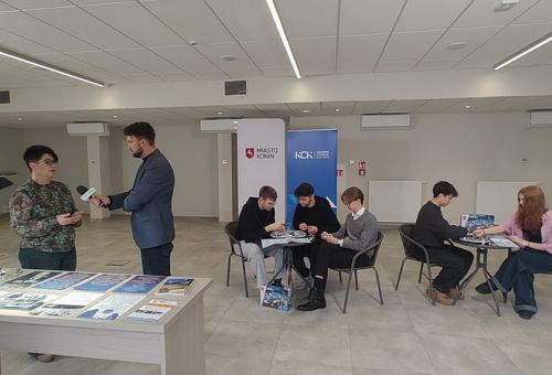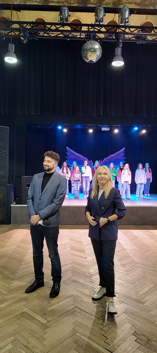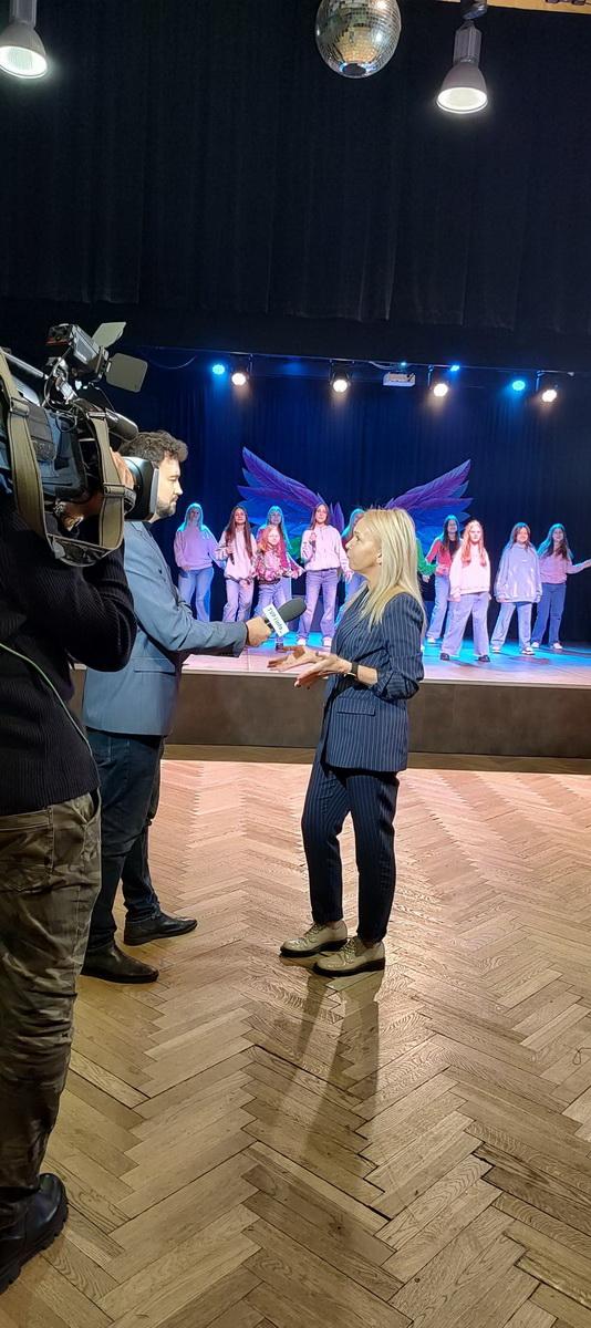 Z placu Wolności obie ekipy pojechały do Konińskiego Centrum Kultury (KCK) przy ul. Przemysłowej, gdzie trwała próba zespołu prowadzonego przez instruktorkę Sylwię Dziardziel – Wojownicy Światła. Utalentowane wokalistki zaśpiewały na żywo fragment hymnu Międzynarodowego Dziecięcego Festiwalu Piosenki i Tańca, a Dorota Gapska z KCK, która od lat pracuje przy festiwalu, opowiedziała o przygotowaniach do przyszłorocznej 46. edycji. - To jest czas, kiedy Konin staje się europejską stolicą piosenki i tańca dziecięcą. Klucze do miasta otrzymują wtedy dzieciaki i rządzą tutaj przez pięć dni. Przez 45 lat festiwalu do Konina przyjechało blisko 300 tysięcy dzieciaków i młodzieży – podkreśliła Dorota Gapska.