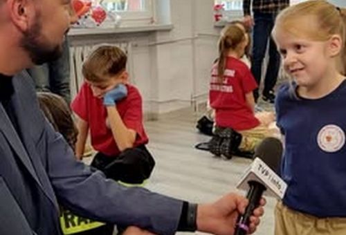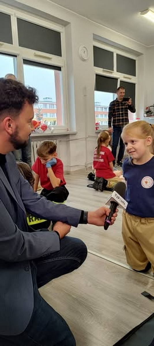 Lekcję pierwszej pomocy dla całej Polski prowadzili uczniowie Szkoły Podstawowej nr 3 w Koninie. W działającym tam wyjątkowym miejscu – Laboratorium Edukacji Ratownictwa ER LAB. Co ciekawe – ekspertami od ratownictwa były… dzieci! Alicja znakomicie opowiedziała o tym., co należy robić w przypadku zagrożenia. Młodzi strażacy z Młodzieżowej Drużyny Pożarniczej OSP Konin-Grójec pokazali, jak ćwiczą przygotowania do akcji. Wszystko odbywało się pod okiem doświadczonych strażaków z OSP Konin-Grójec oraz dyrektor Szkoły Podstawowej nr 3 Marty Idczak.