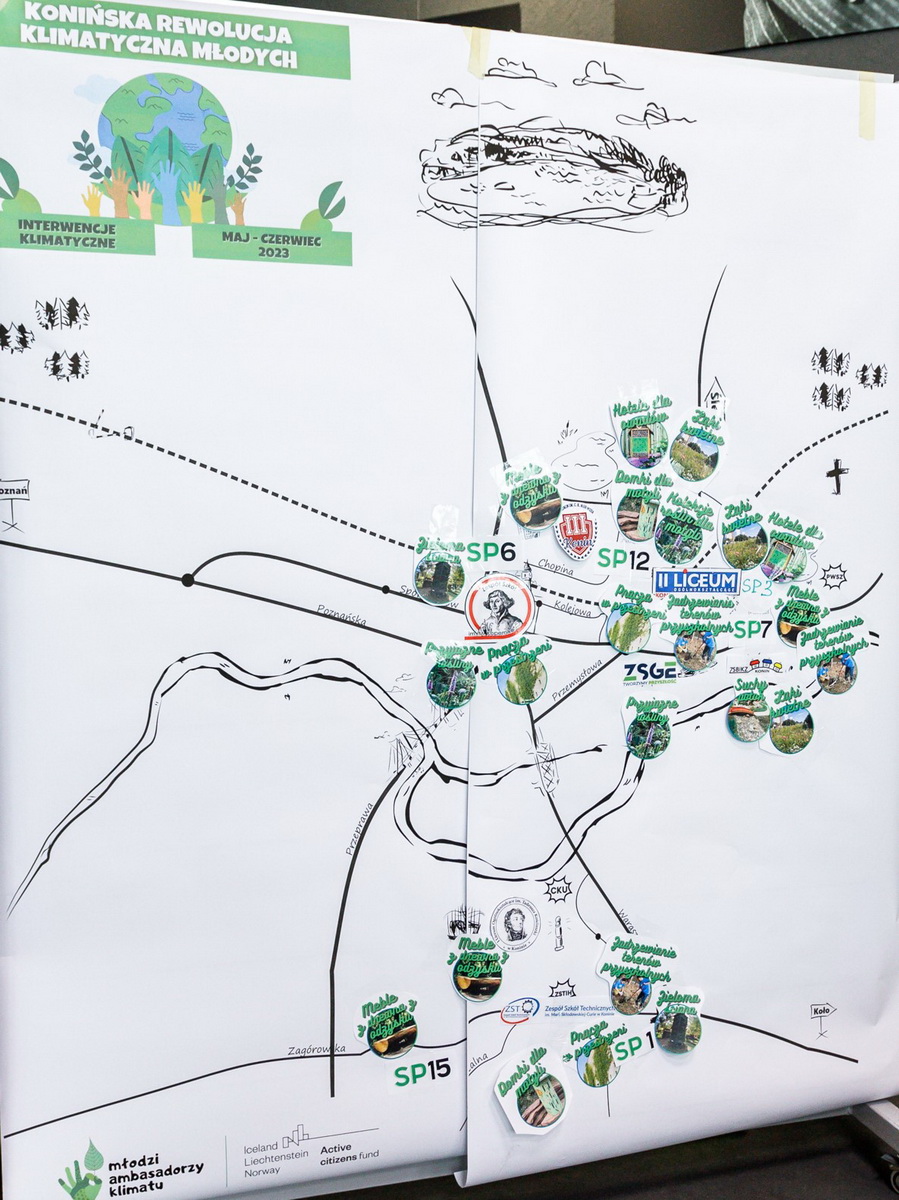Młodzi Ambasadorzy Klimatu zaprosili swoich rówieśników do nowej akcji pn. „Konińska Rewolucja Klimatyczna Młodych’23”. MAK wspólnie z uczniami 13 szkół – uczestnikami sejmiku, którzy już zgłosili się do akcji, zrealizują projekty małych niskokosztowych interwencji klimatycznych w otoczeniu swoich szkół. Uczniowie zaprezentowali swoje pomysły na interwencje podczas Sejmiku – a pomysłów im zdecydowanie nie brakowało. Znalazły się wśród nich m.in. zielone ściany, ogród przyrodniczy, budki lęgowe dla ptaków, hotele dla owadów czy ławki łąki kwiatowe.