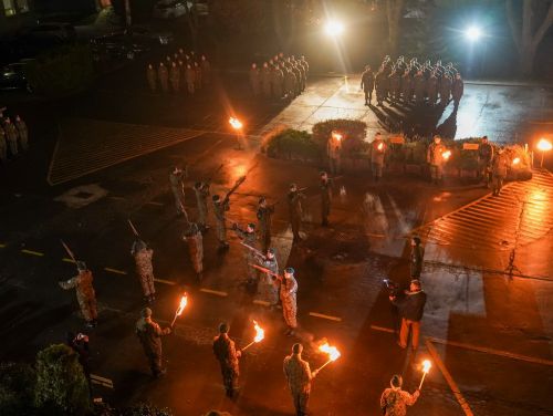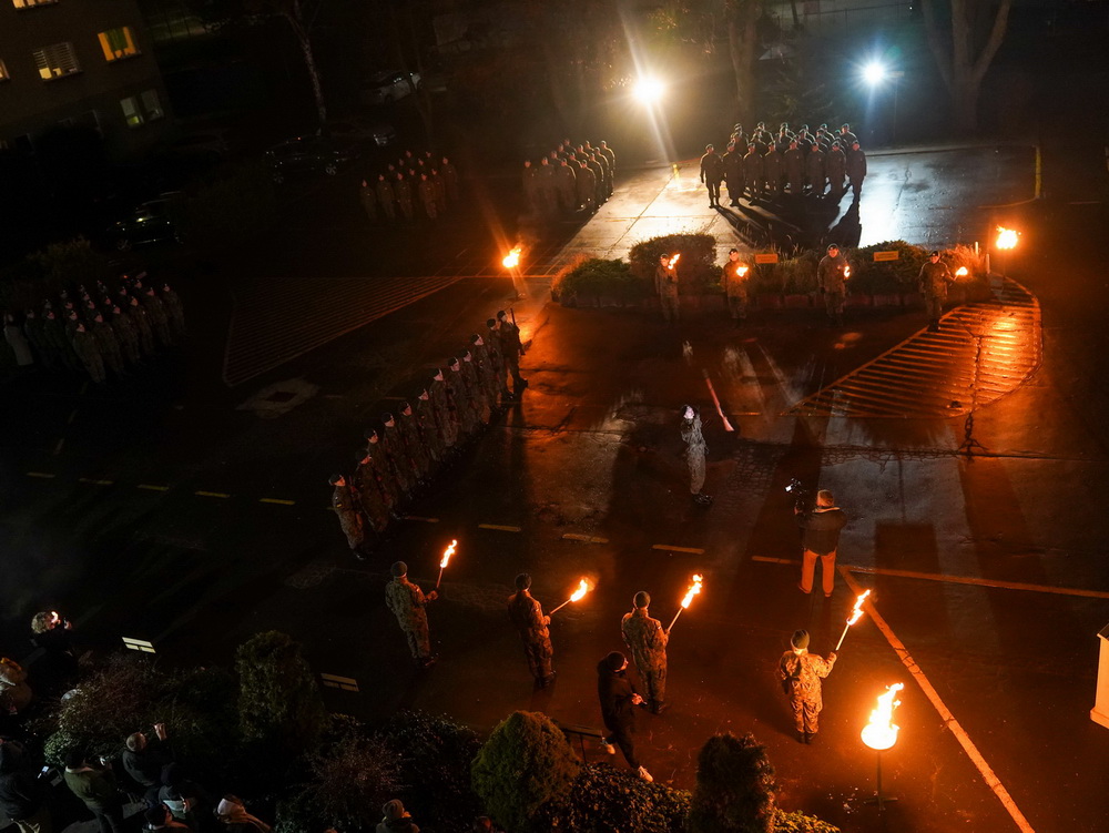 Zdjęcia robiono wieczorem, przy skąpym świetle pochodni i delikatnym sztucznym oświetleniu. Widać na nich: uczniów z klas pierwszych w strojach polowych, specjalne pododdziały: musztry paradnej i historyczny. Jest moment wciągania flagi na maszt, zmiana warty przy szkolnym sztandarze, przysięga na sztandar. Widać przemawiających gospodarzy, gości, są zdjęcia z rodzicami, a na koniec kelnerki roznoszące grochówkę.
