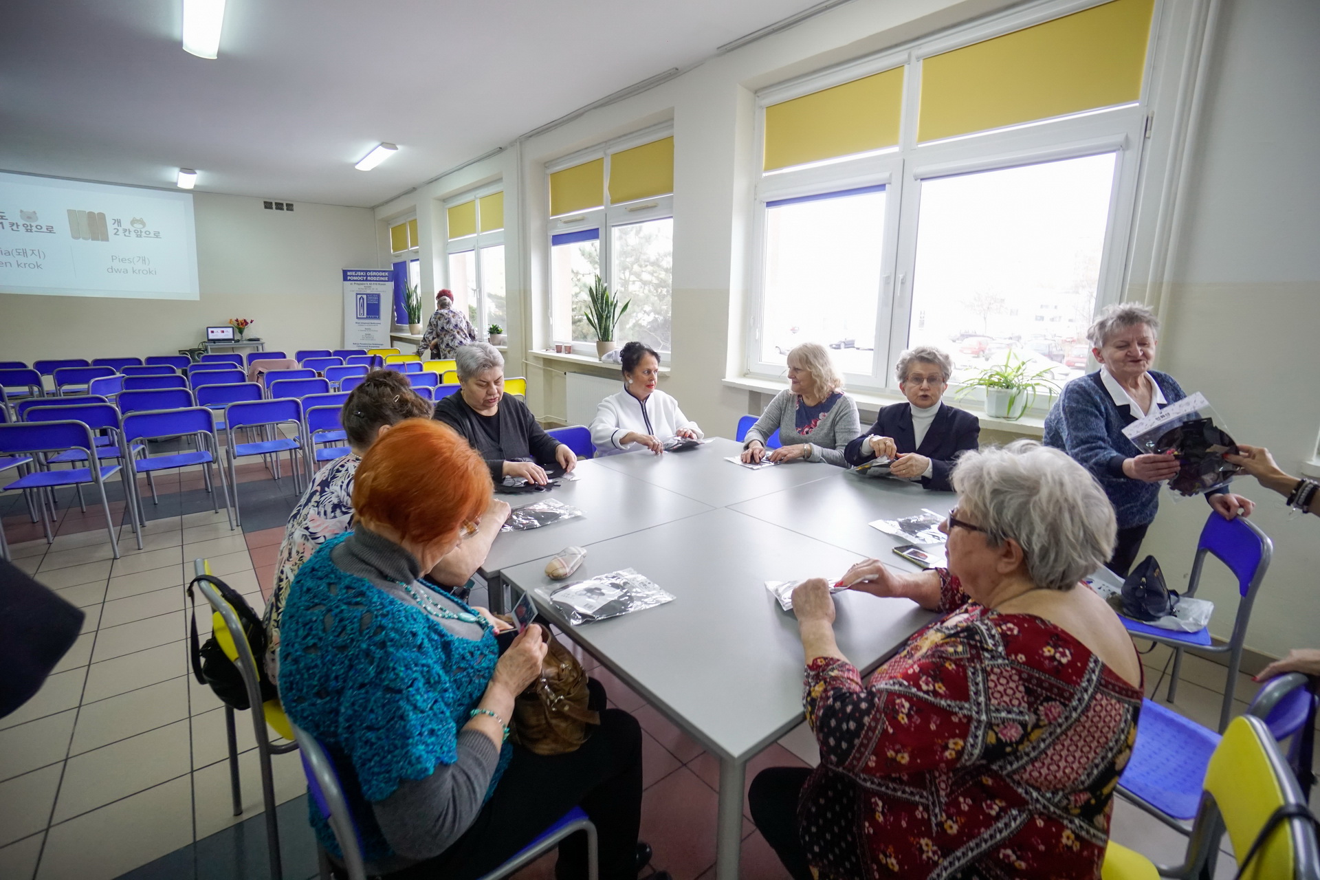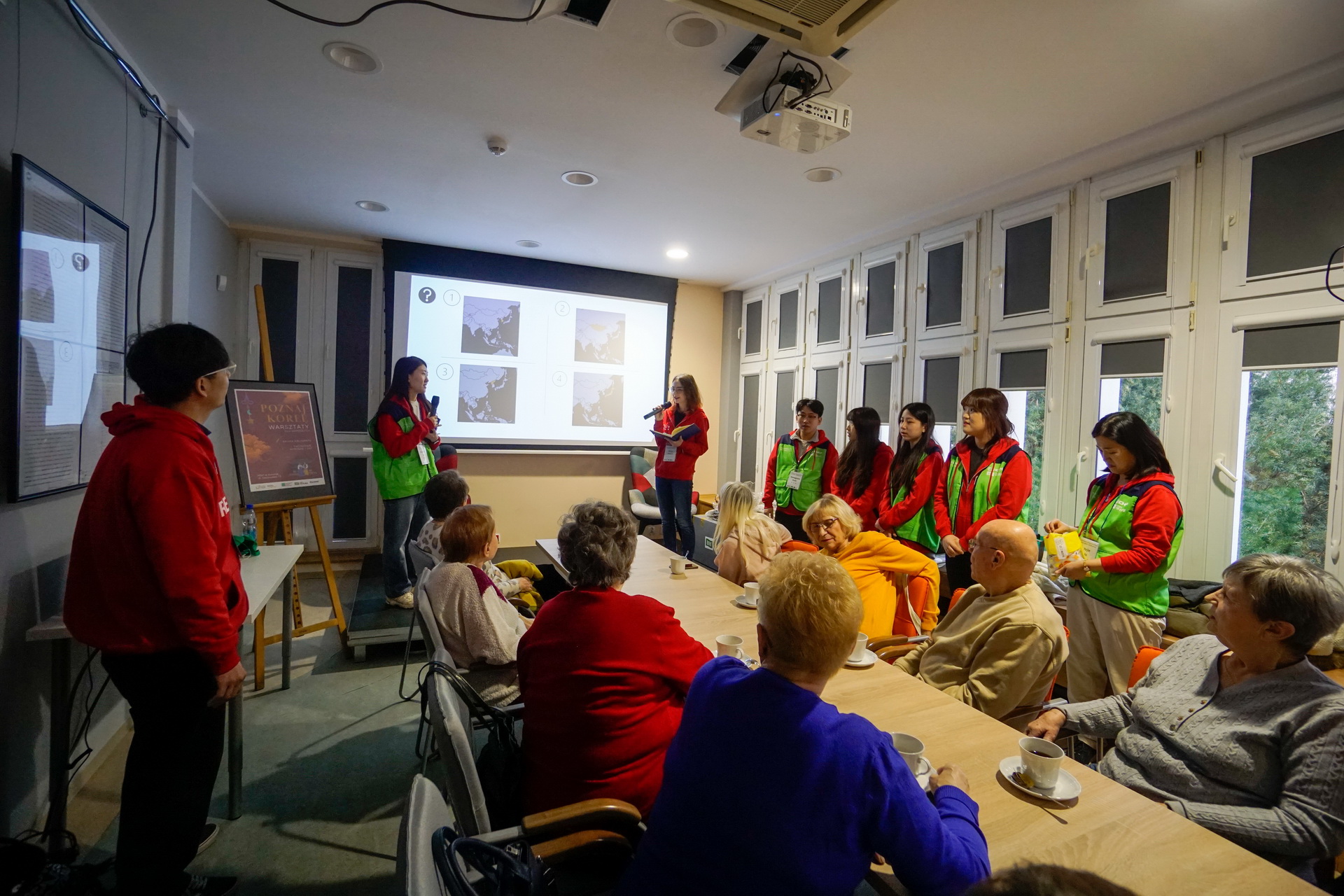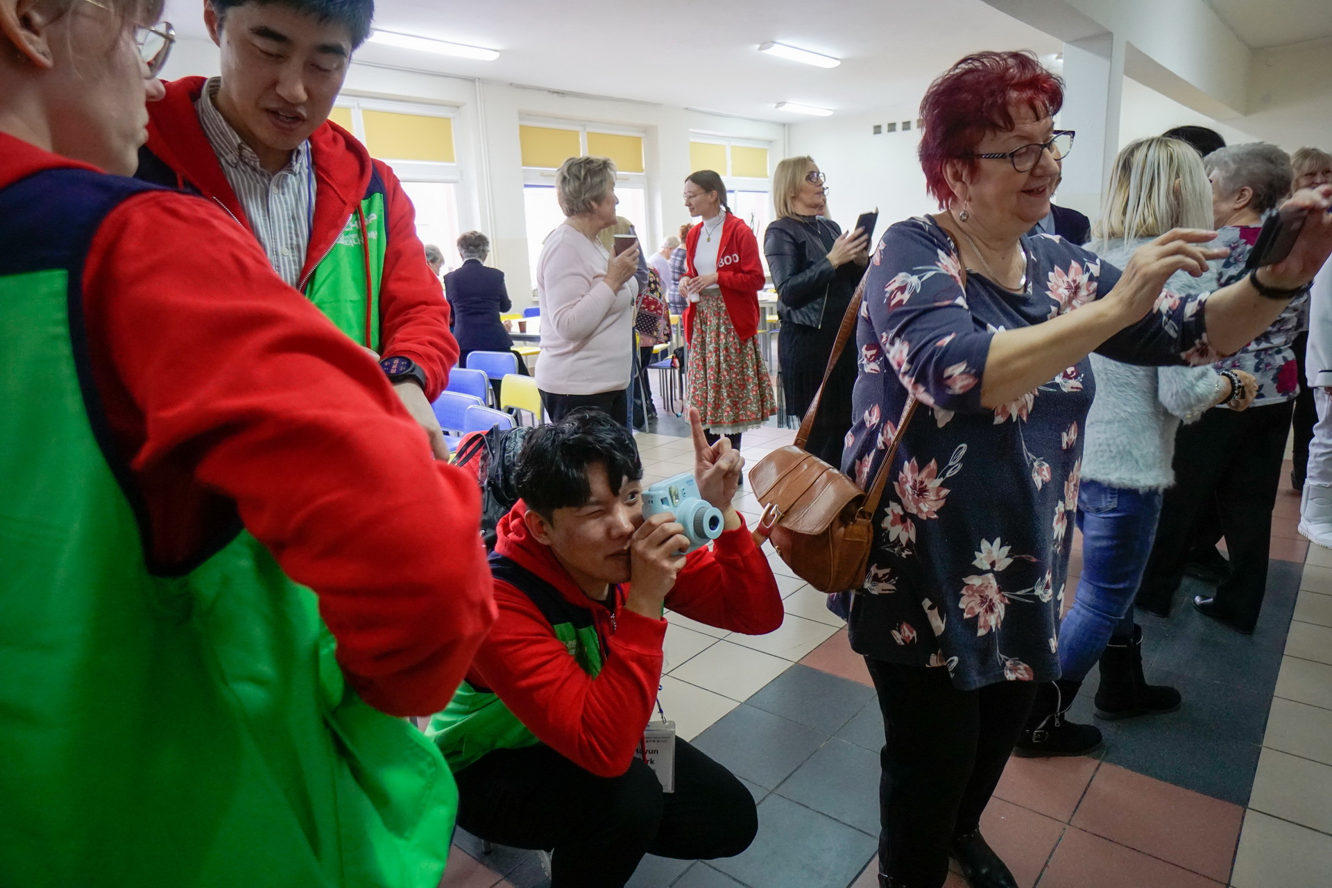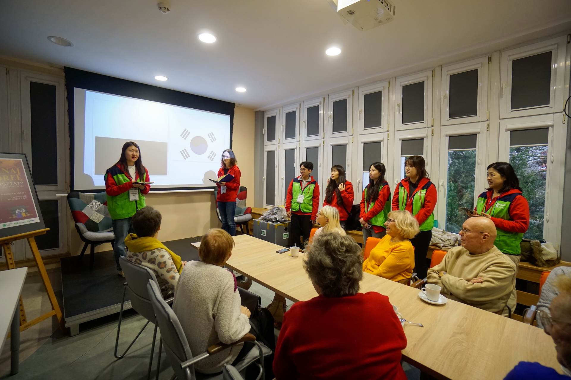 Podzieleni na kilka grup goście z Korei spotkali się w Miejskiej Bibliotece Publicznej im. Zofii Urbanowskiej z seniorami. Prezentowali podobieństwa między naszymi krajami: od pierogów, po klimat. Uczyli także koreańskiej kaligrafii, rozdawali słodkie prezenty, podobne w smaku do naszych faworków. Podobnie było w placówkach Miejskiego Ośrodka Pomocy Rodzinie. Tu także były wspólne rozmowy i prezentacje dla dzieci i seniorów. Okazało się, że w Korei równie popularna co u nas jest gra tzw. „Zośka”. Były rozmowy, padło wiele pytań. Nie zabrakło wspólnych fotografii. Wszystkie spotkania przebiegały w bardzo serdecznej atmosferze, żeby nie powiedzieć – bardzo rodzinnej.