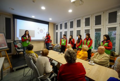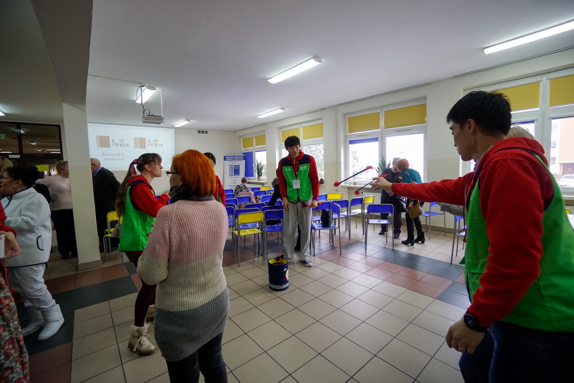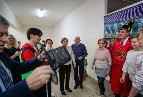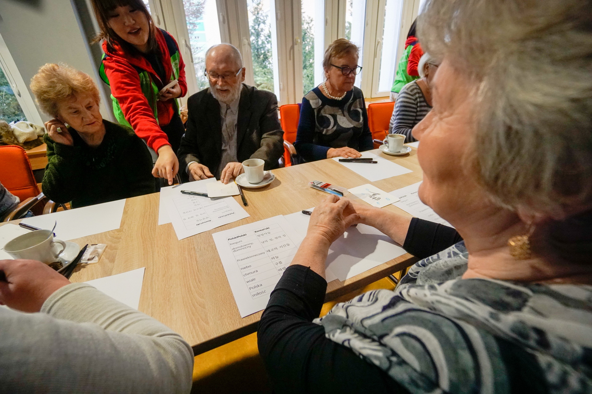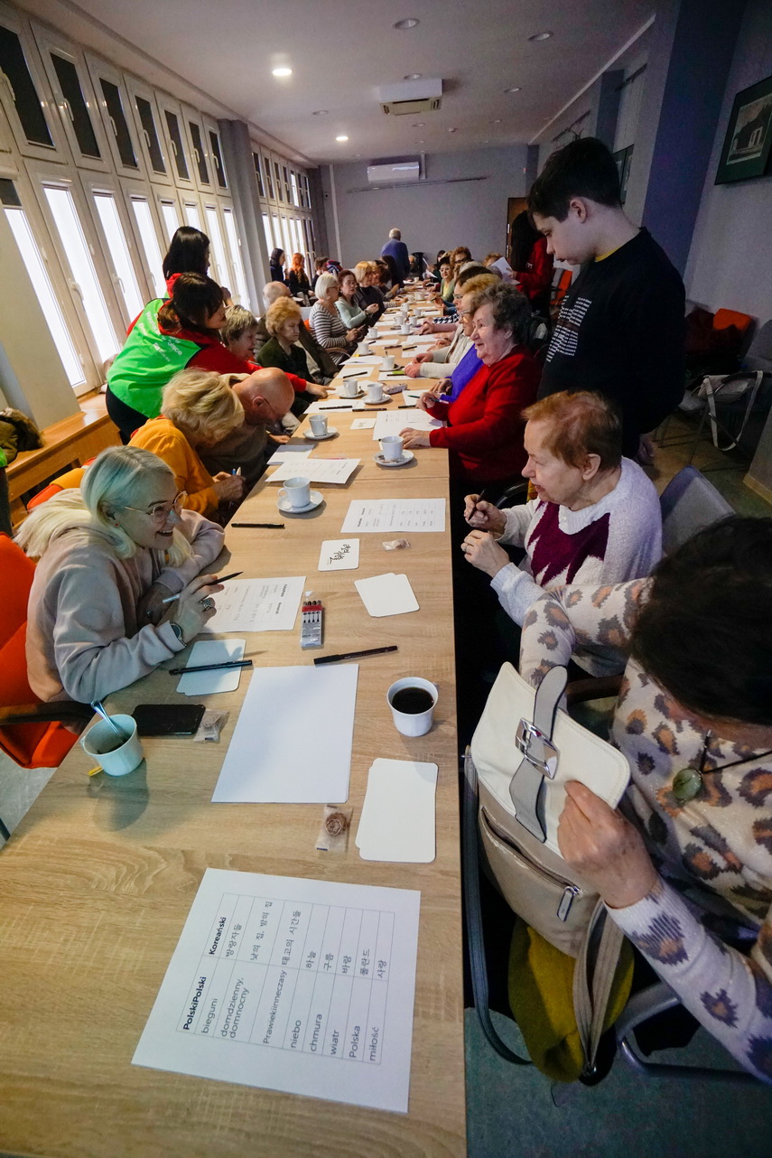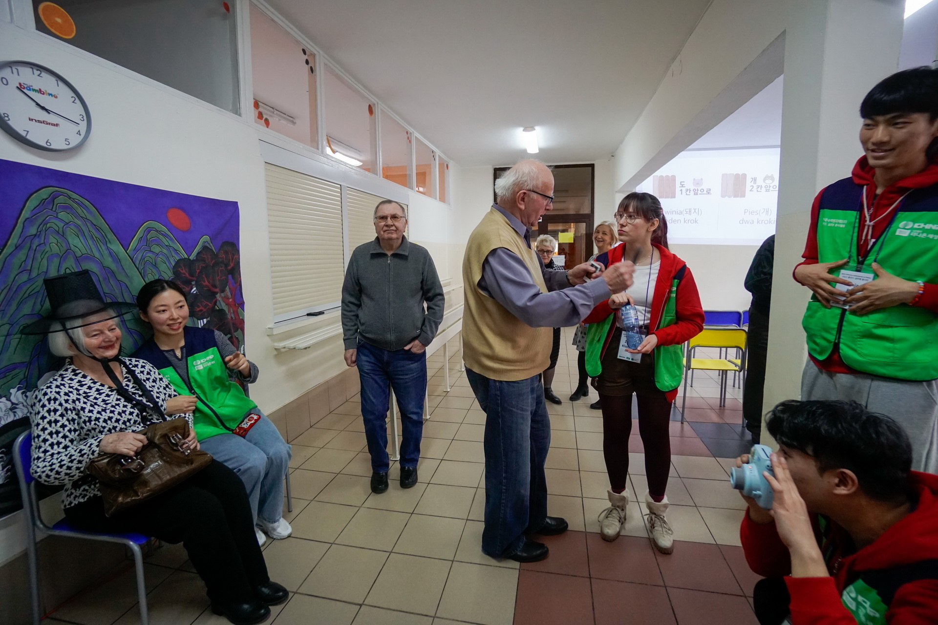Podzieleni na kilka grup goście z Korei spotkali się w Miejskiej Bibliotece Publicznej im. Zofii Urbanowskiej z seniorami. Prezentowali podobieństwa między naszymi krajami: od pierogów, po klimat. Uczyli także koreańskiej kaligrafii, rozdawali słodkie prezenty, podobne w smaku do naszych faworków. Podobnie było w placówkach Miejskiego Ośrodka Pomocy Rodzinie. Tu także były wspólne rozmowy i prezentacje dla dzieci i seniorów. Okazało się, że w Korei równie popularna co u nas jest gra tzw. „Zośka”. Były rozmowy, padło wiele pytań. Nie zabrakło wspólnych fotografii. Wszystkie spotkania przebiegały w bardzo serdecznej atmosferze, żeby nie powiedzieć – bardzo rodzinnej.