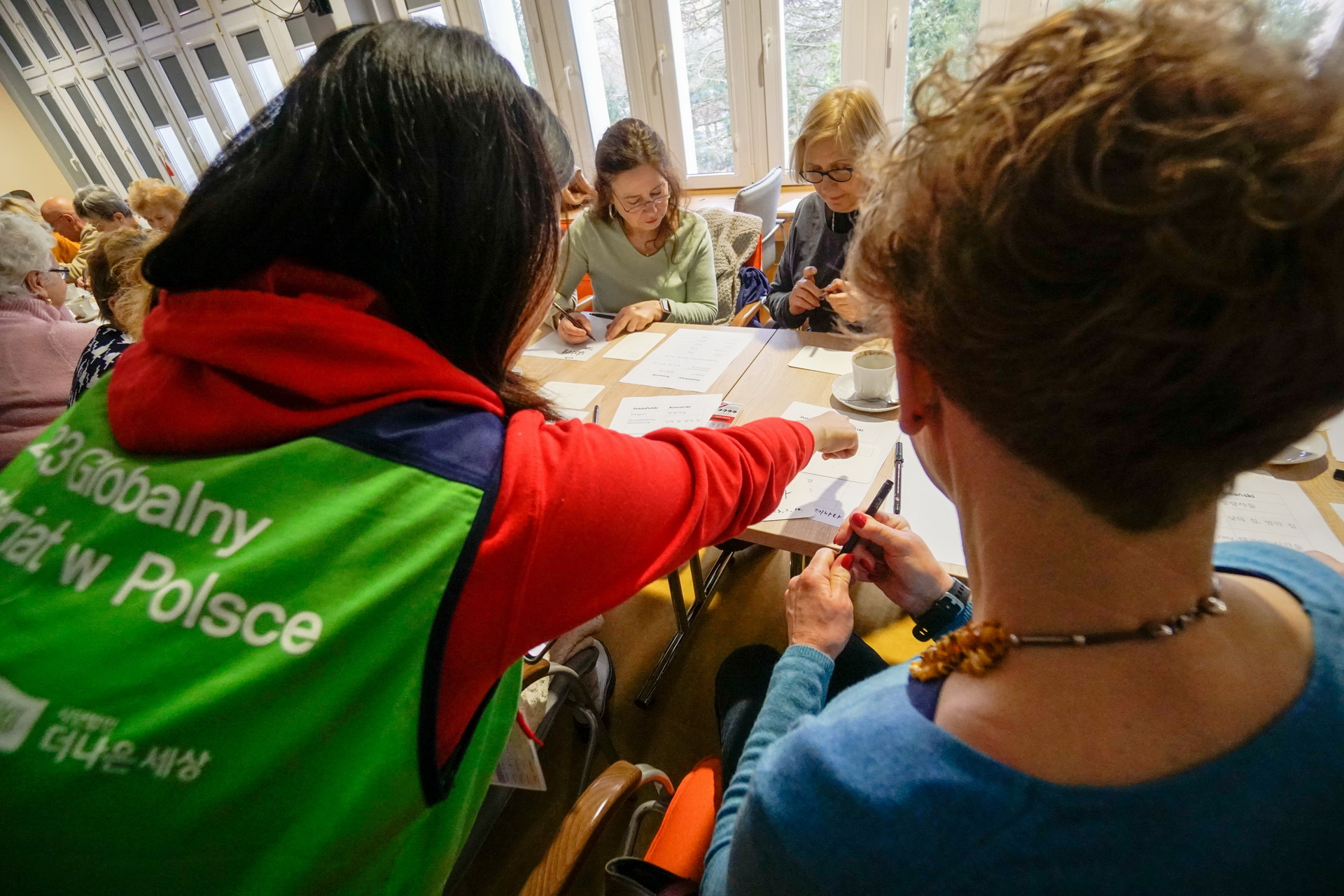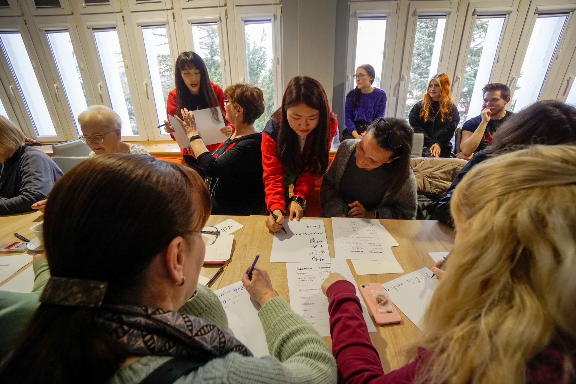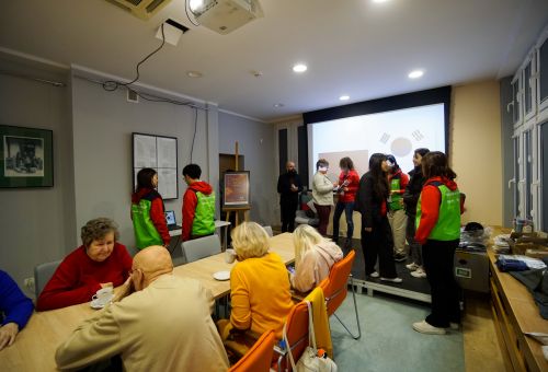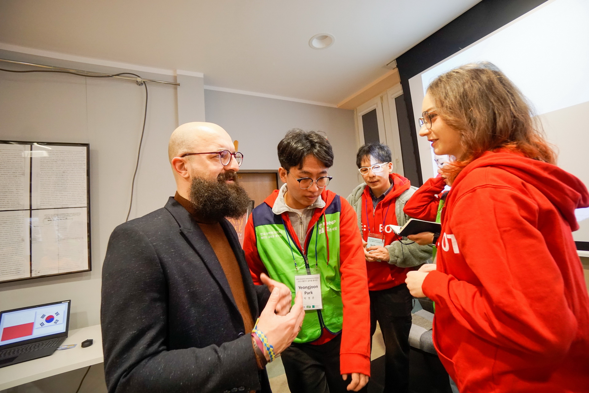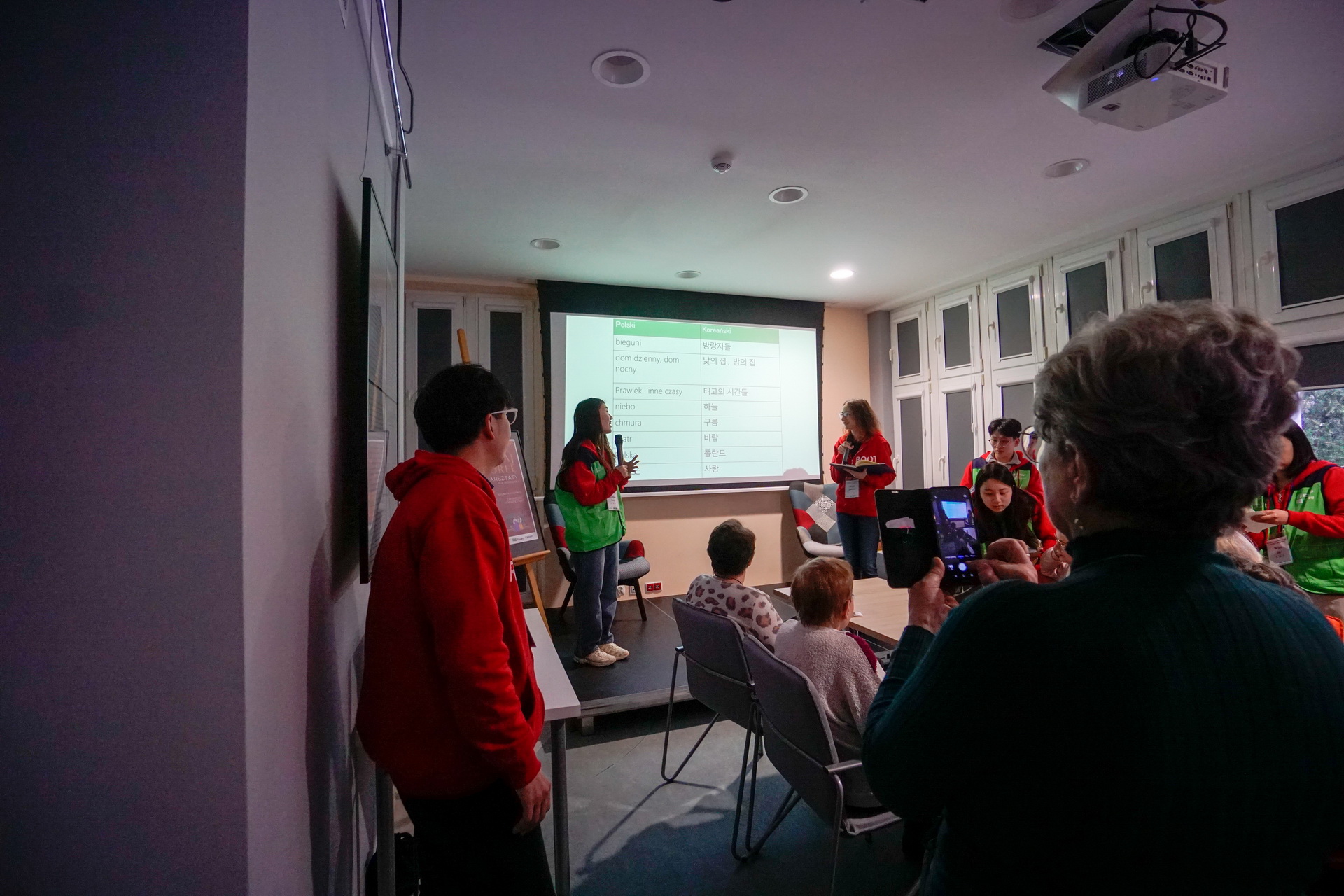 Podzieleni na kilka grup goście z Korei spotkali się w Miejskiej Bibliotece Publicznej im. Zofii Urbanowskiej z seniorami. Prezentowali podobieństwa między naszymi krajami: od pierogów, po klimat. Uczyli także koreańskiej kaligrafii, rozdawali słodkie prezenty, podobne w smaku do naszych faworków. Podobnie było w placówkach Miejskiego Ośrodka Pomocy Rodzinie. Tu także były wspólne rozmowy i prezentacje dla dzieci i seniorów. Okazało się, że w Korei równie popularna co u nas jest gra tzw. „Zośka”. Były rozmowy, padło wiele pytań. Nie zabrakło wspólnych fotografii. Wszystkie spotkania przebiegały w bardzo serdecznej atmosferze, żeby nie powiedzieć – bardzo rodzinnej.