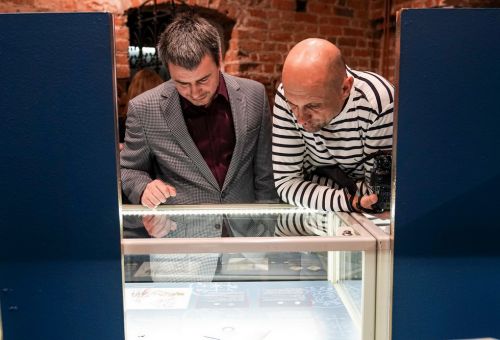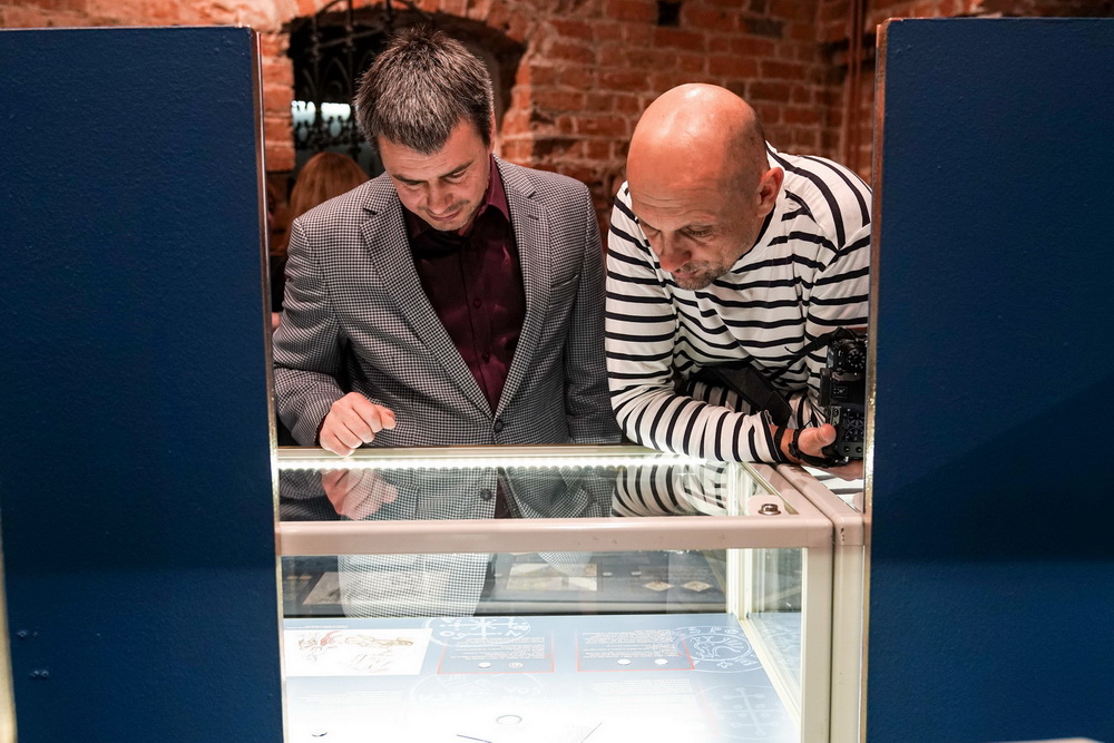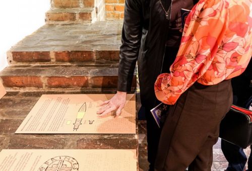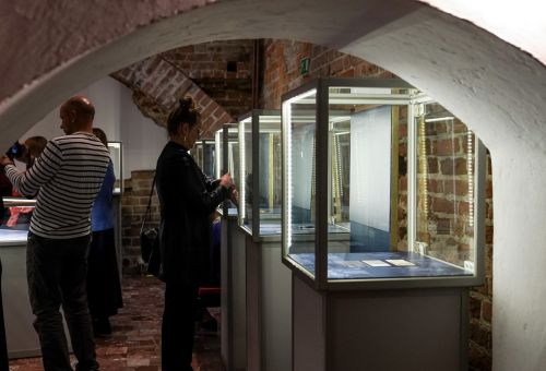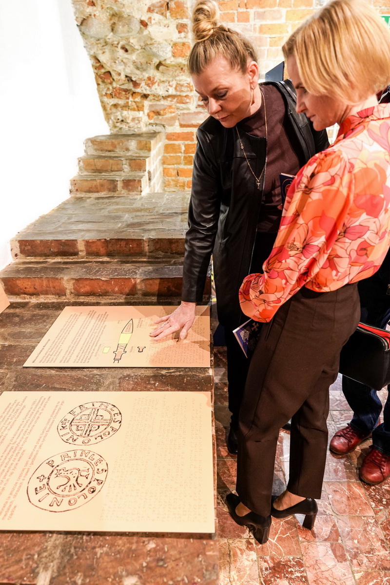 Na zdjęciach widać salę wystawową na zamku, elementy wystaw, a także osoby odwiedzające i gospodarzy wydarzenia.