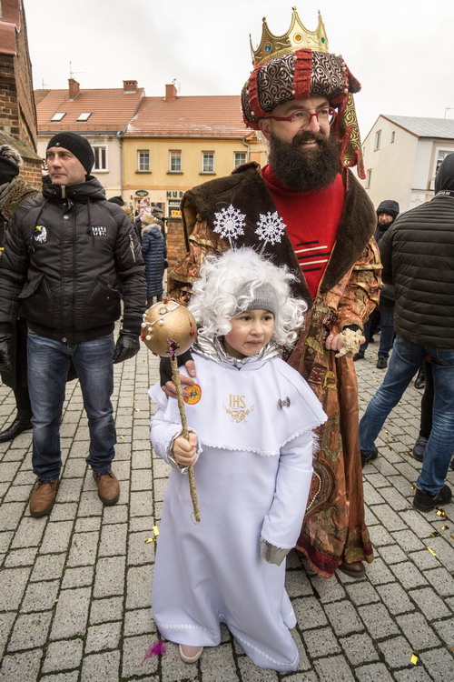 Z fary wyruszyli „Gwiazda” oraz „Mędrcy”, diabły i anioły, harcerze, mali i duzi królowie, w towarzystwie Młodzieżowej Orkiestry Dętej ZSG-E pod dyrekcją Roberta Żurańskiego. Najpierw zatrzymali się pod ratuszowym balkonem, by usłyszeć i zobaczyć co mieli do powiedzenia Herod i jego towarzyszka, a kolejnym etapem był Plac Wolności, gdzie uczestnicy orszaku zaśpiewali kolędy.