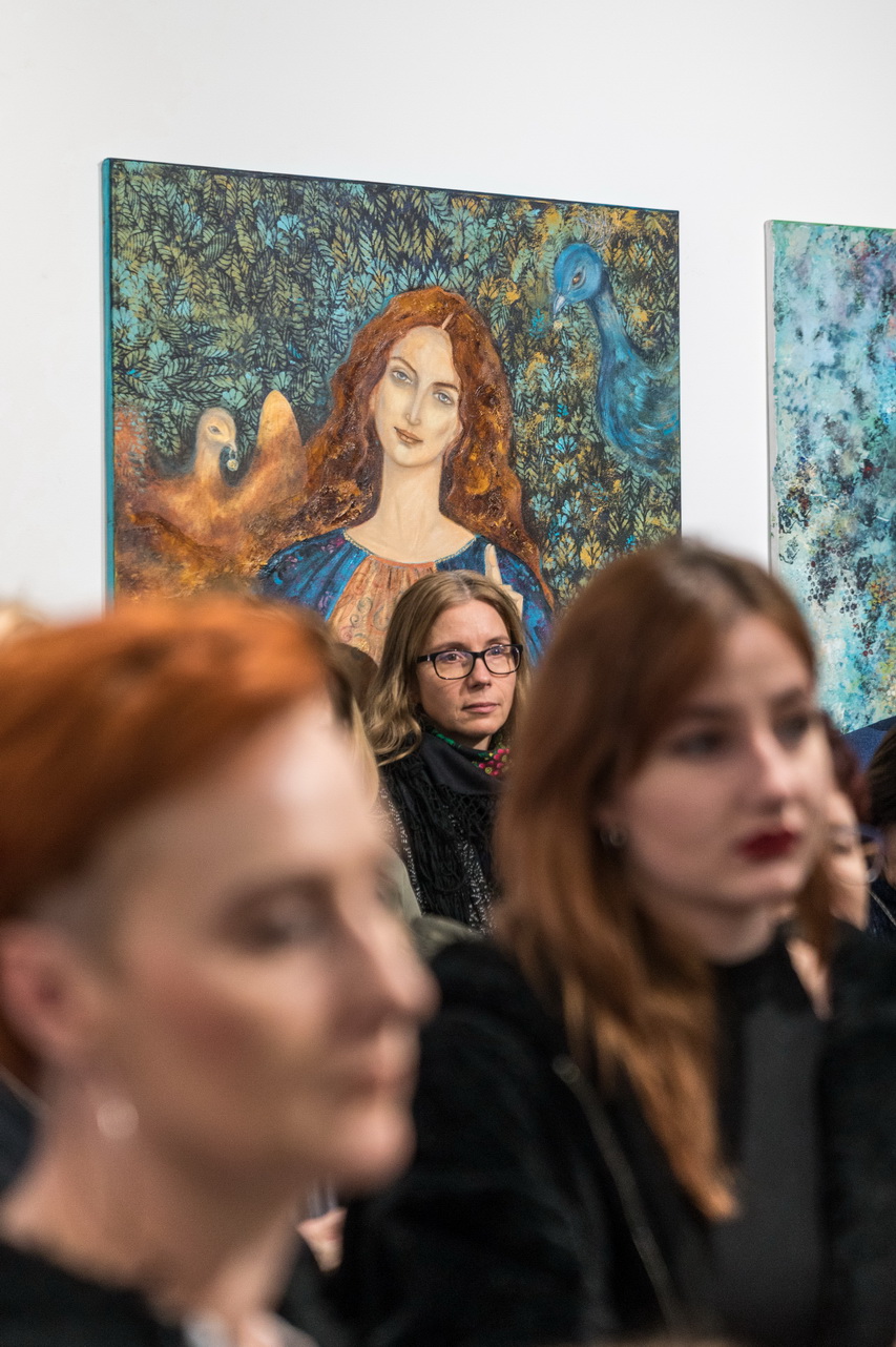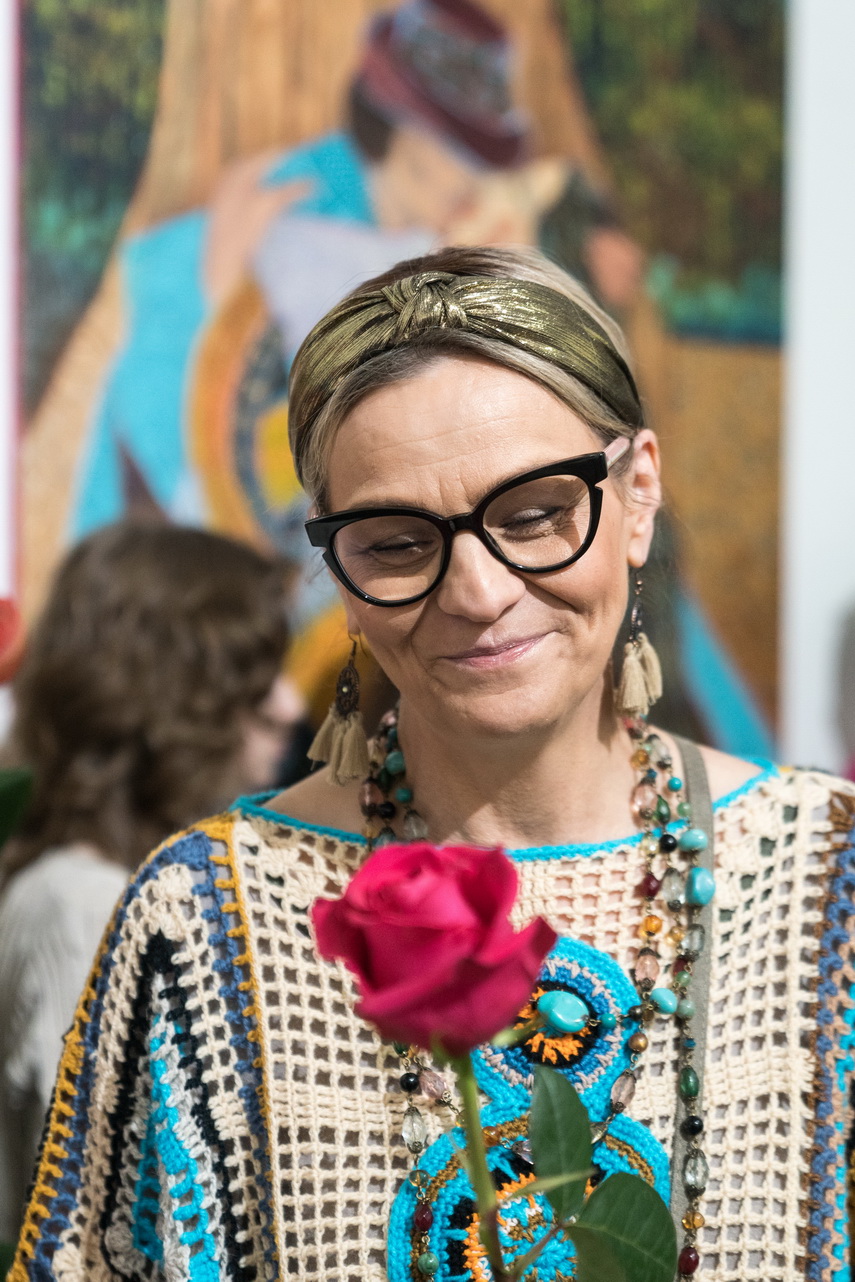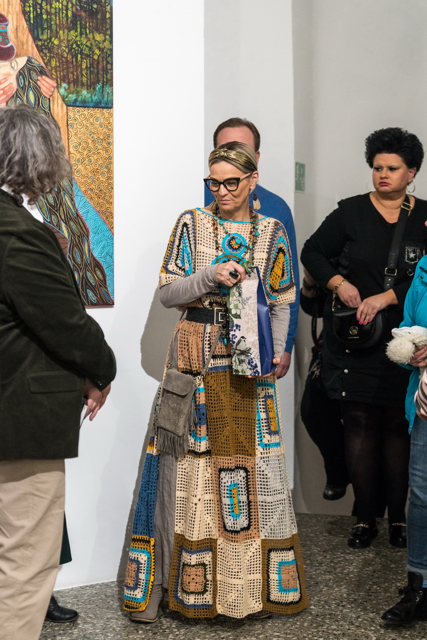 Krystyna Ruminkiewicz maluje od lat. Swój talent rozwija na naszych oczach, zaskakując za każdym razem, gdy prezentuje swoje prace. Tak jest i tym razem, w Wieży Ciśnień bowiem zawisły obrazy wskazujące, że malarka odnalazła kolejną, równie ciekawa drogę. Są to duże i zupełnie małe formaty, utrzymane w tak typowej dla artystki formie. Obok portretów kobiet także abstrakcyjne formy, ze śmiałym „malarskim tekstem”, ale i czytelnym przesłaniem. Sama malarka też tego wieczoru stanowiła swoisty obraz – przyszła w sukience, którą (jak obraz) zrobiła sama. Zachwycającej sukience!