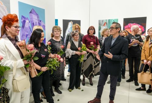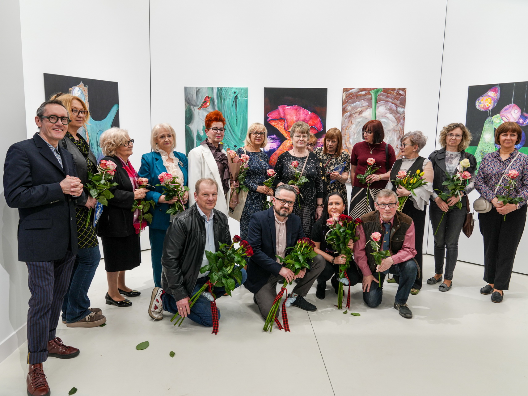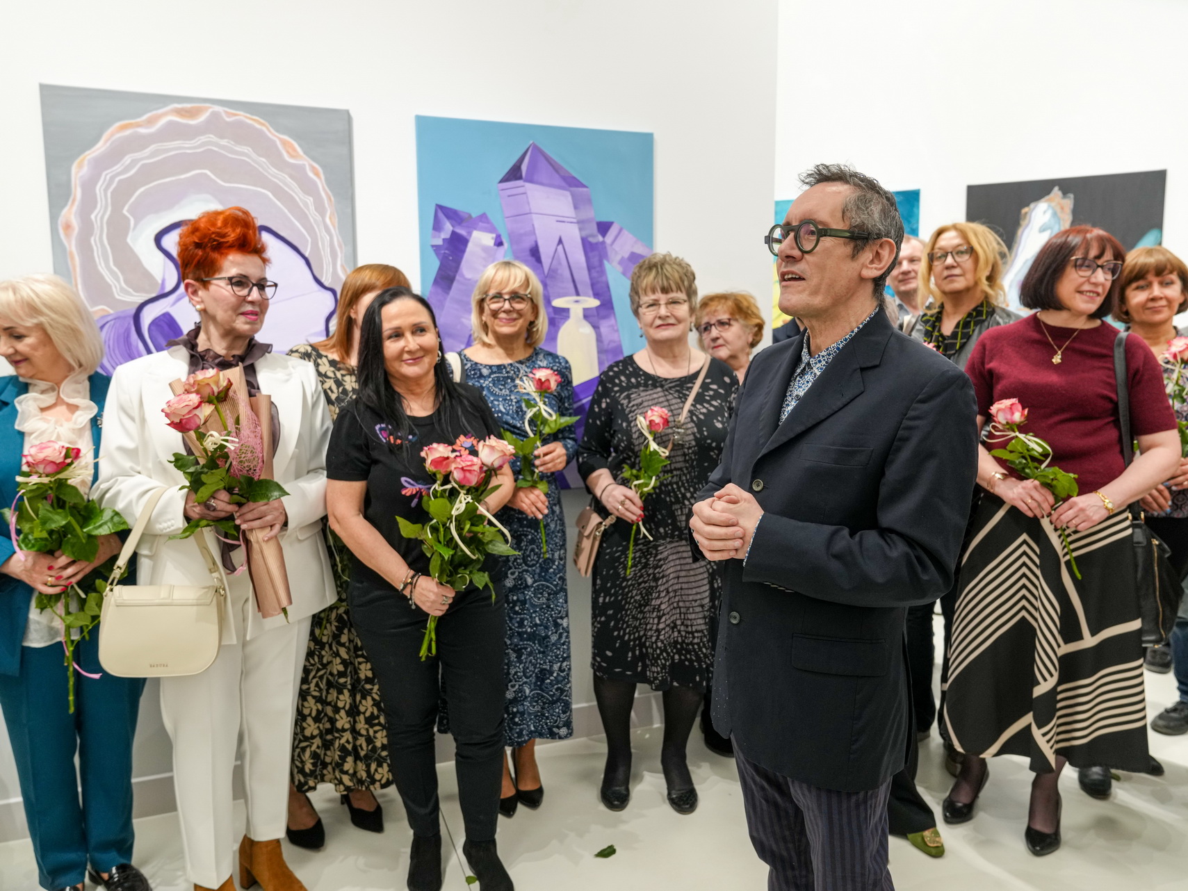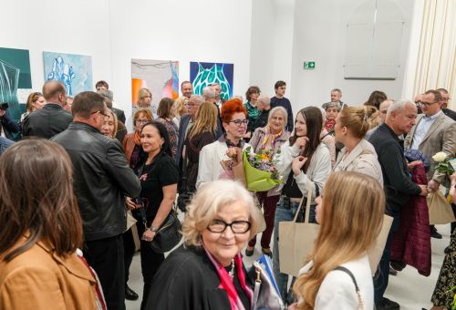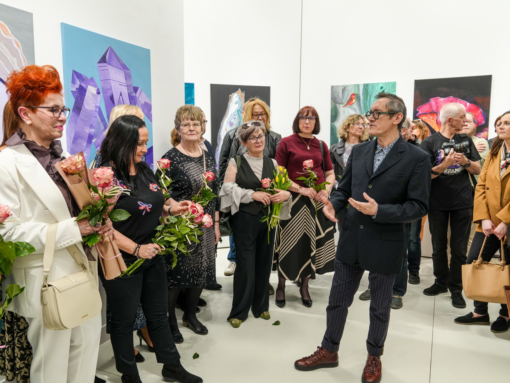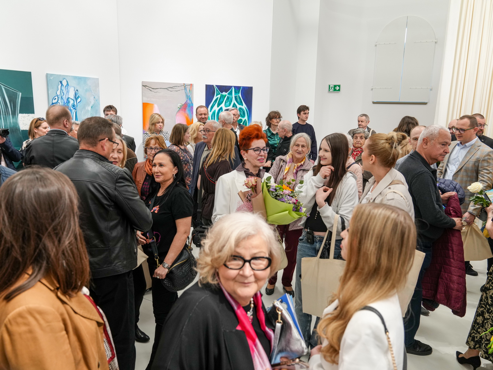 Zdjęcia przedstawiają uczestników wernisażu wystawy zatytułowanej „Ciała krystaliczne”