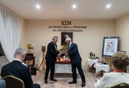 Spotkanie rozpoczęło się od wręczenia złotych odznak Konińskiego Towarzystwa Muzycznego. Odebrały je Aleksandra Jurgielewicz i Ewa Majewskie. Następie wiceprezes KTM Alicja Wardęcka-Gościńska wygłosiła wykład związany z rocznicą, przypominając wiele faktów i anegdot. Życzenia i gratulacje, poparte specjalnym listem prezydenta Konina Piotra Korytkowskiego oraz prezentami, złożył zastępca prezydenta Konina Witold Nowak, podkreślając wagę i znaczenie oraz dorobek Towarzystwa. Nie zabrakło też życzeń i gratulacji od innych stowarzyszeń i instytucji.