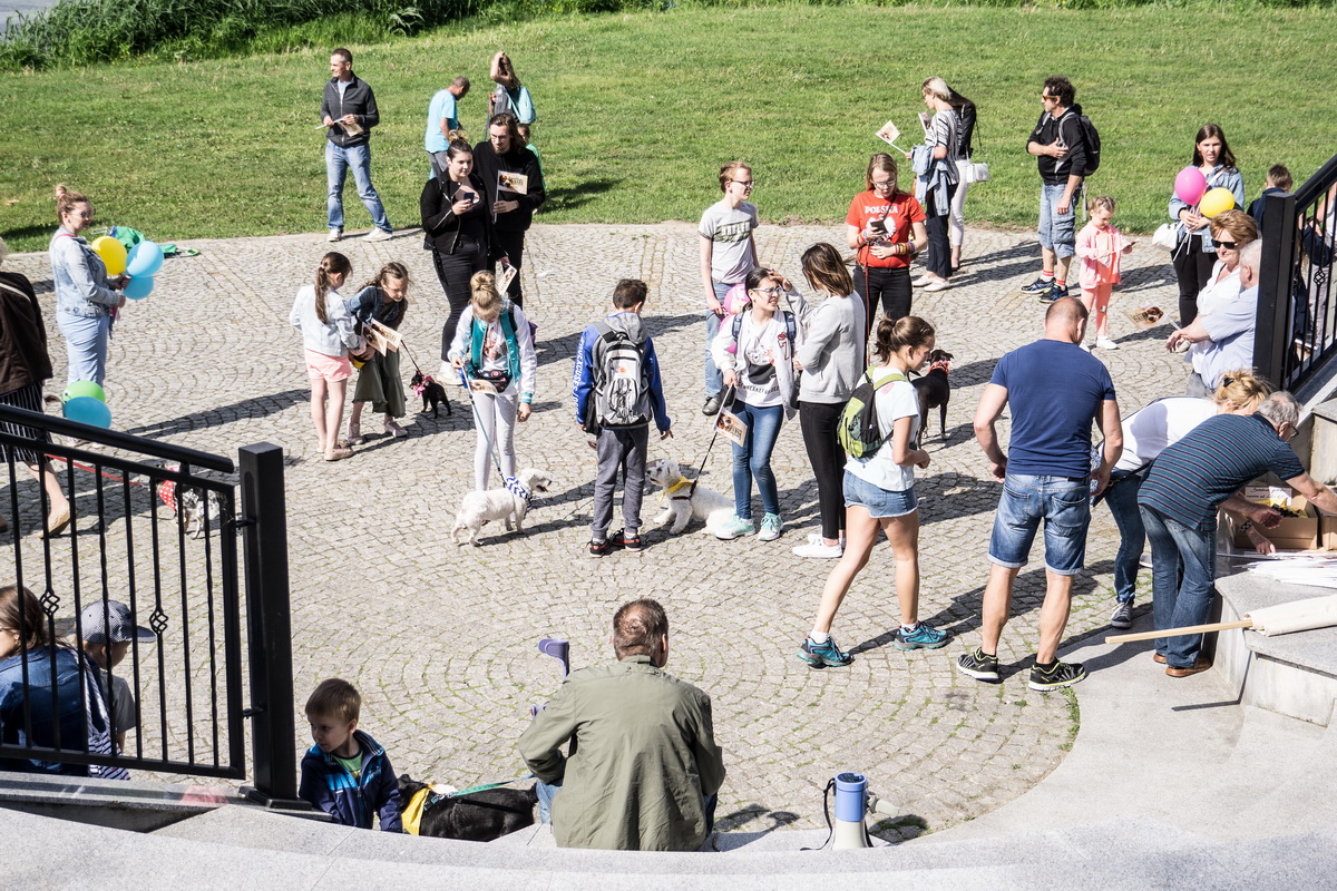 Jak przystało na paradę poprzedzały ją prawdziwa kapela oraz wielki transparent. Dalej szły rozszczekane psiaki różnej maści i „gatunków”, także te bardziej rasowe oraz ich właściciele. Zwierzęta przystrojono w kolorowe chusty.