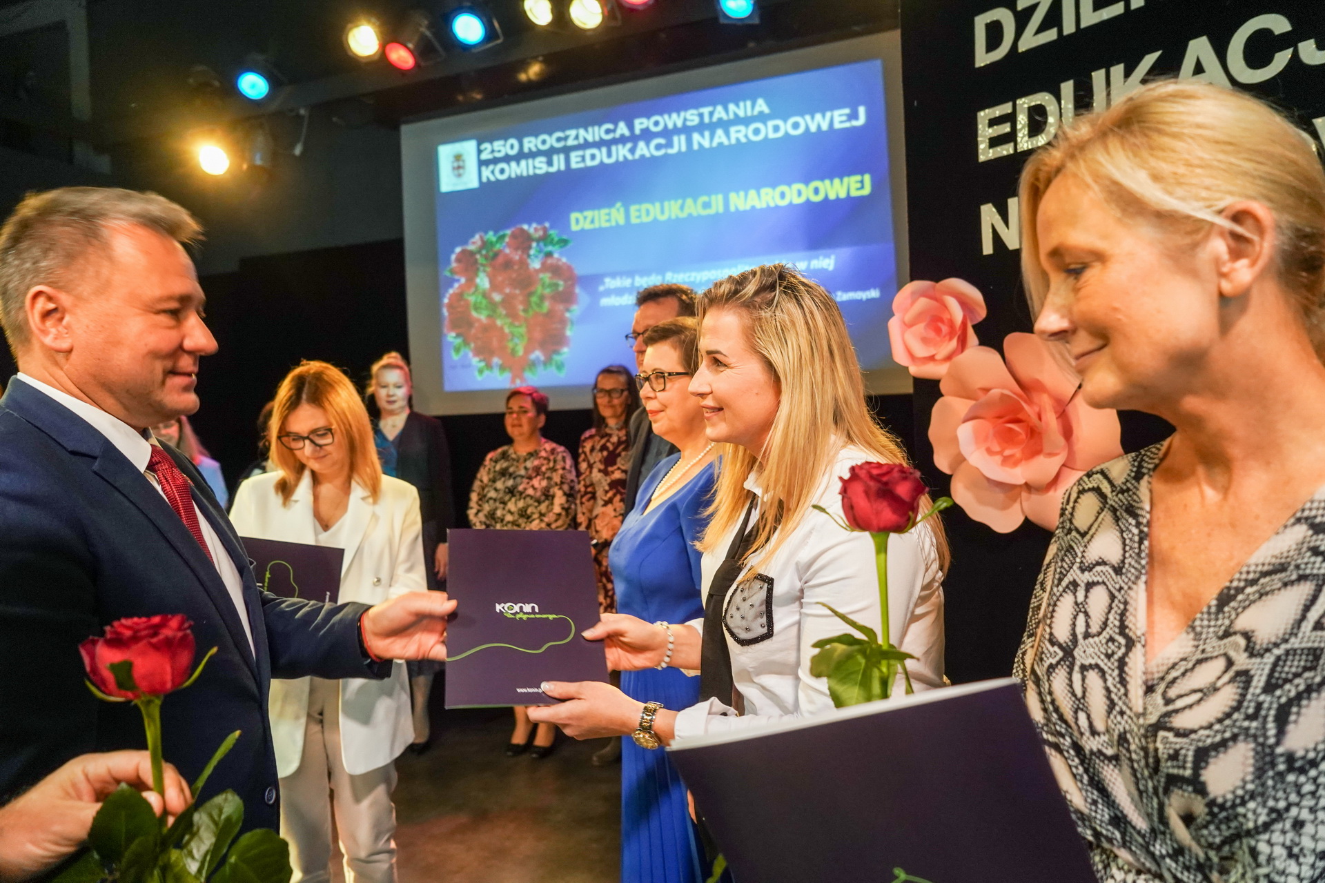 W dniu 13 października 2023 r. w Młodzieżowym Domu Kultury w Koninie odbyły się miejskie obchody Dnia Edukacji Narodowej. Piotr Korytkowski - Prezydent Konina nagrodził nauczycieli za osiągnięcia w pracy dydaktycznej i opiekuńczo-wychowawczej. Wszystkim nauczycielom życzył należnego im szacunku, wytrwałości i konsekwencji w realizacji powierzonych obowiązków oraz niesłabnącej motywacji, a także tego, aby w swojej codziennej pracy byli dla swoich uczniów autorytetami, mistrzami i przewodnikami. Podziękowania skierował także do pracowników administracji i obsługi, do przedsiębiorców, którzy uczą młodych ludzi zawodu, do rodziców, którzy angażują się w sprawy szkoły, oraz wszystkich osób i instytucji wspierających nasze środowisko oświatowe.Prowadzenie i wspaniałą oprawę artystyczną uroczystości zapewnili nauczyciele i uczniowie z Zespołu Szkół im. Mikołaja Kopernika.