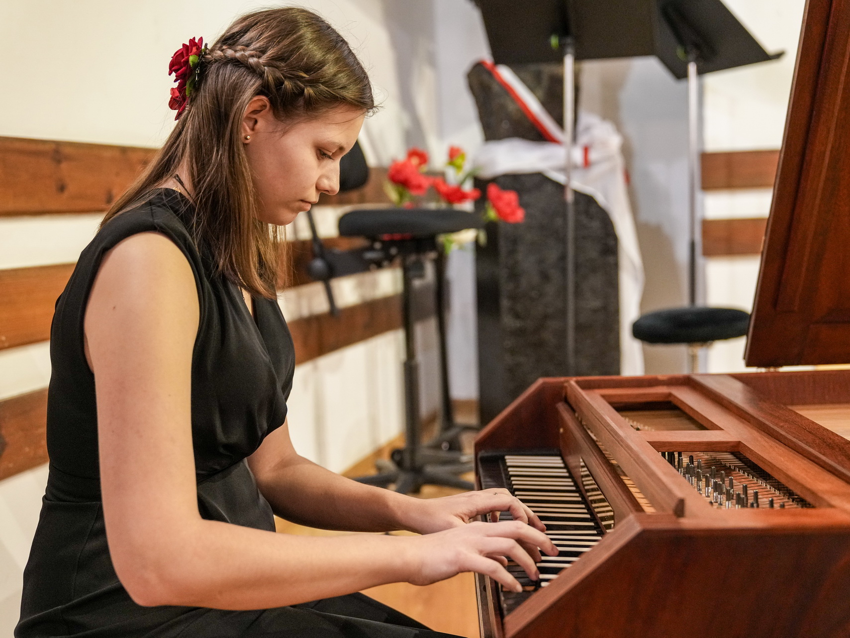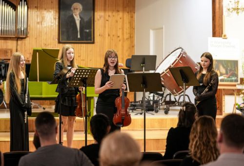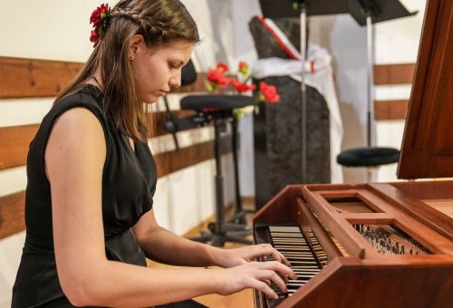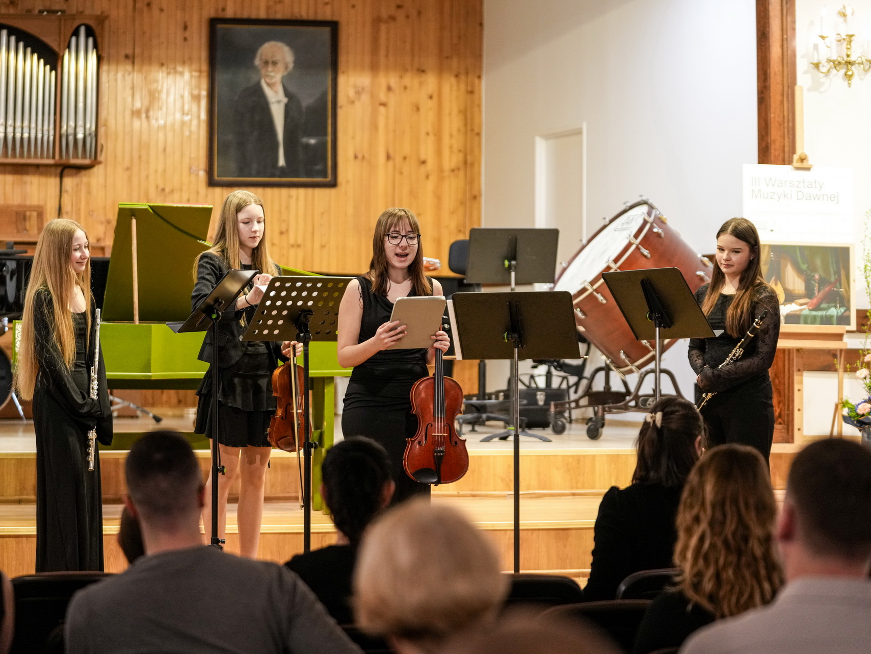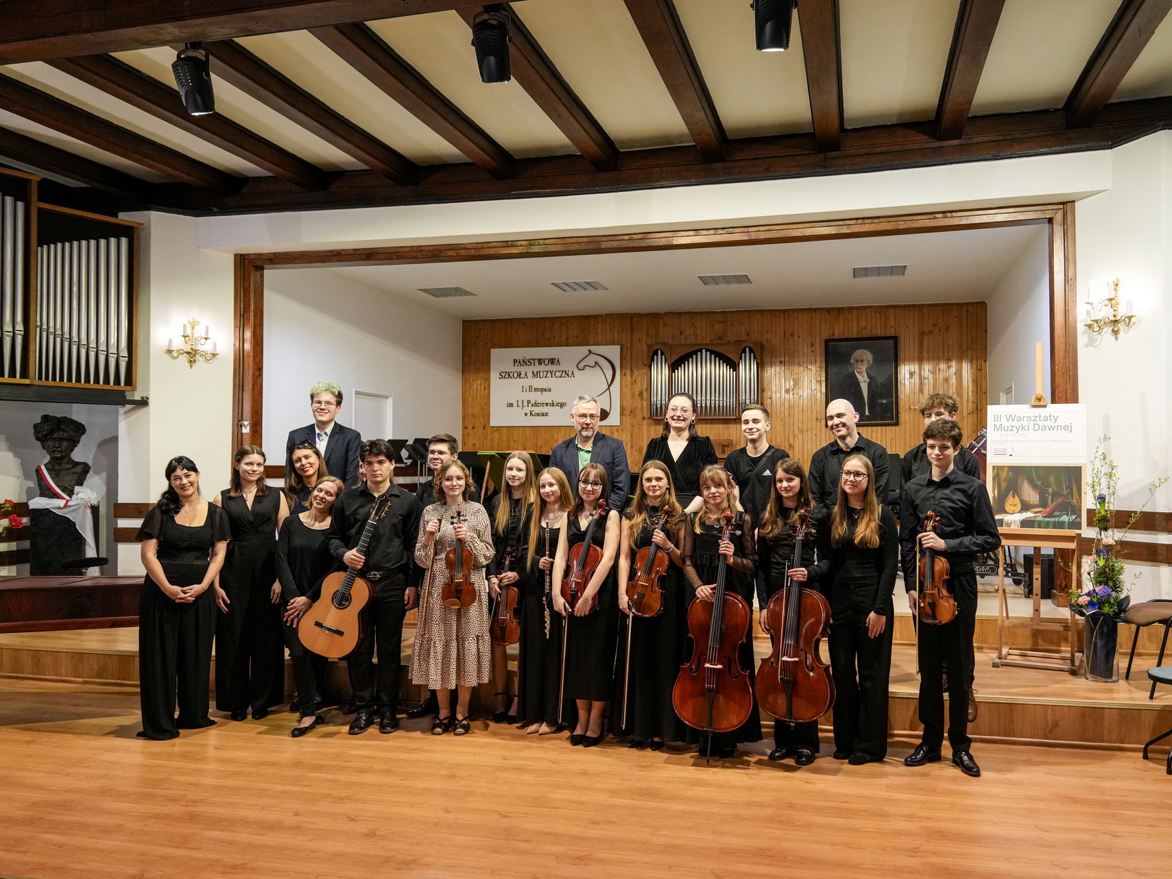 Zdjęcia przedstawiają koncert muzyki dawnej w Państwowej Szkole Muzycznej w Koninie.