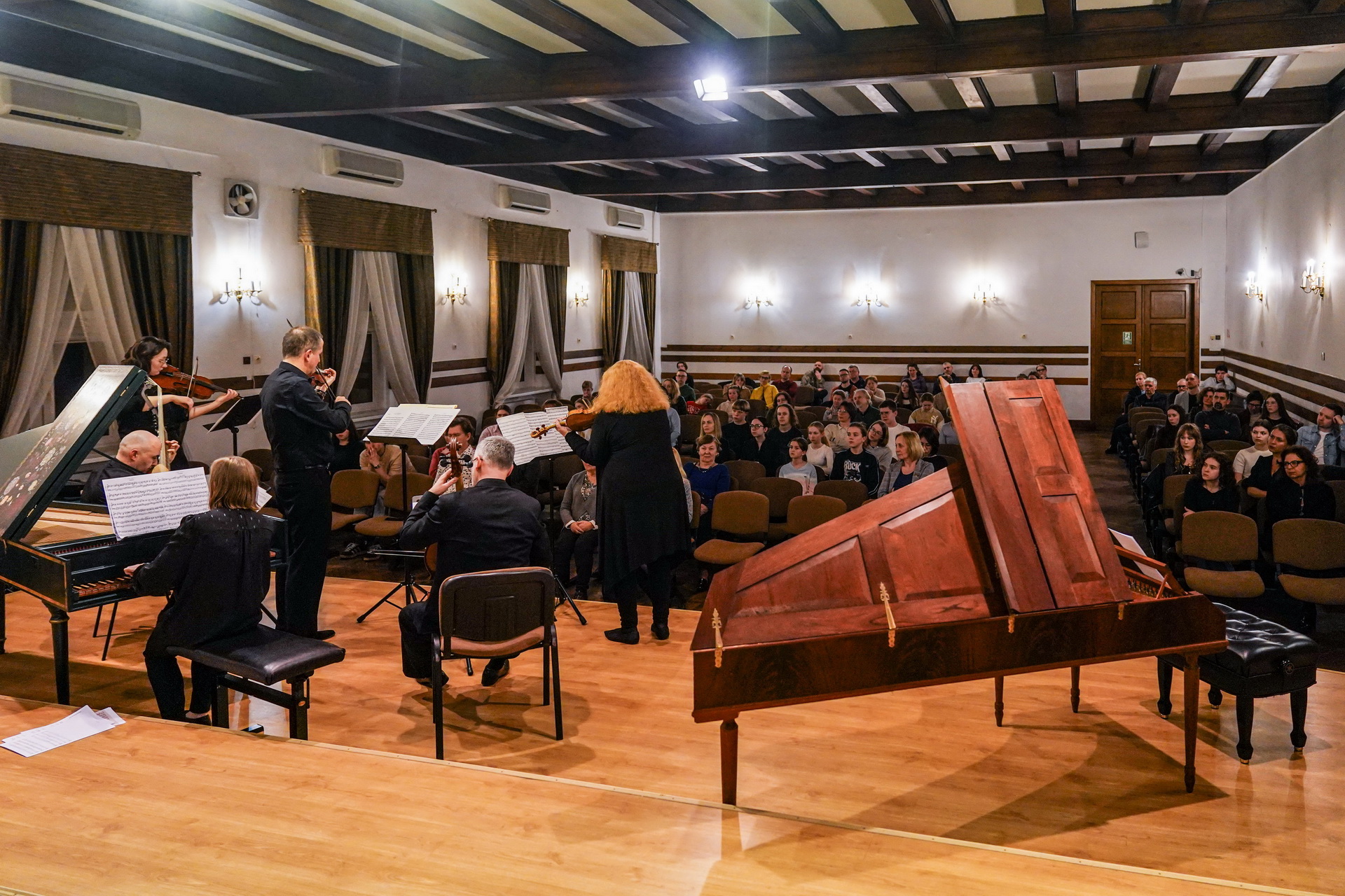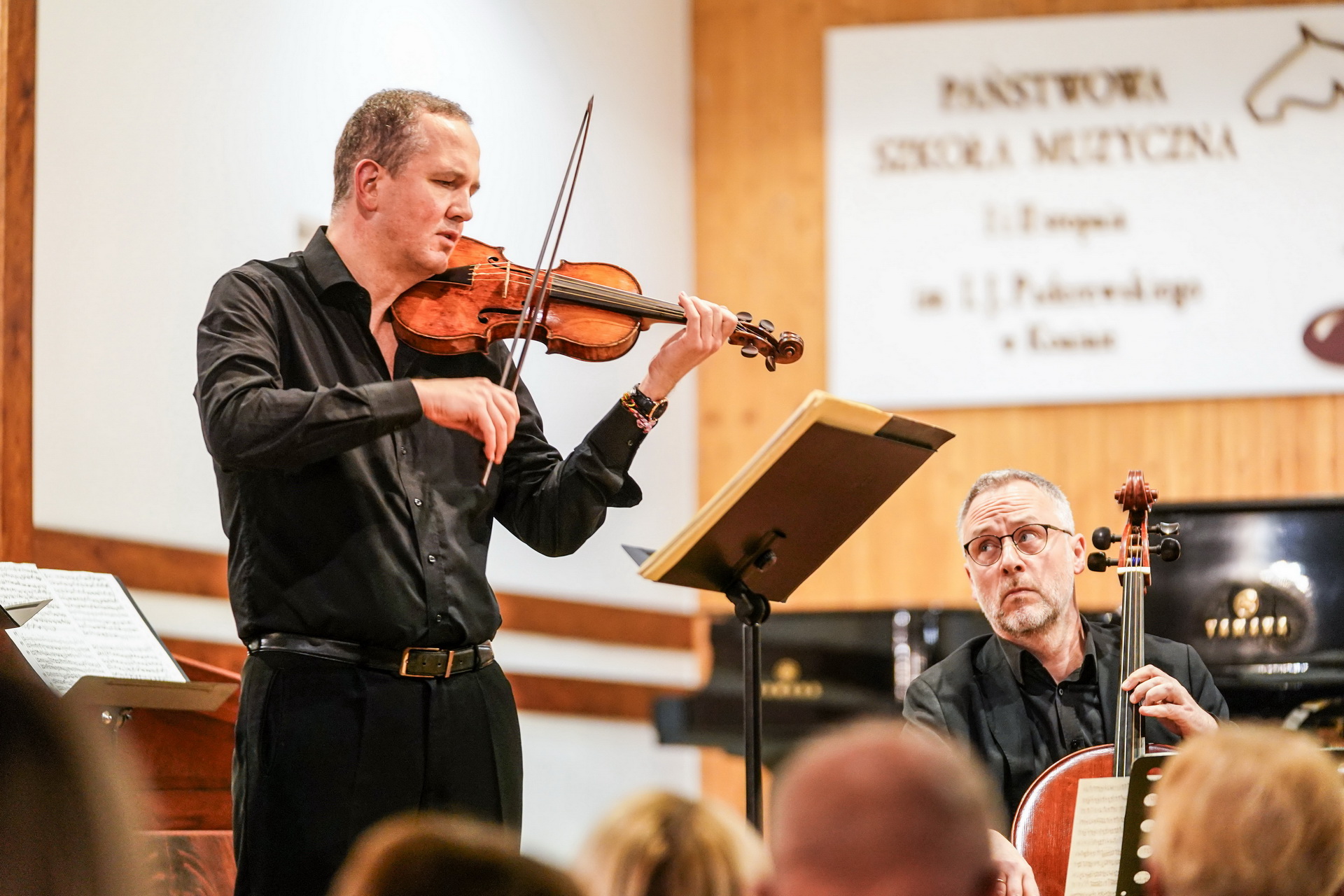 We wtorkowy wieczór (11 marca) w szkolnej auli odbył się znakomity koncert wykładowców, w którym zabrzmiała muzyka dawna takich kompozytorów jak Telemann, J. S. Bach czy W. A. Mozart. Zaprezentowali ją, używając historycznych instrumentów bądź ich replik znakomici muzycy, którzy prowadzą także zajęcia z młodzieżą z całej Polski, przybyłą na warsztaty do Konina: prof. Sirkka-Liisa Kaakinen-Pilch (AM Kraków, Sibelius-Academy Helsinki) - skrzypce, altówka, zespoły kameralne, prof. AMP dr hab. Jarosław Thiel (AM Poznań) - wiolonczele, zespoły kameralne, prof. AMP dr hab. Mikołaj Zgółka (AM Poznań) - skrzypce, altówka, zespoły kameralne, dr Natalia Hyżak (AM Poznań ) - klawesyn, zespoły kameralne, mgr Maciej Kończak – (AM Poznań, PSM I i II st. w Lesznie) - gitary, lutnie, zespoły kameralne, mgr Monika Woźniak (AM Poznań, ZSM w Poznaniu) - fortepian historyczny, zespoły kameralne oraz mgr Ewa Pilarska-Banaszak (PSM Konin) - altówka, organizatorka i pomysłodawczyni warsztatów i koncertu.