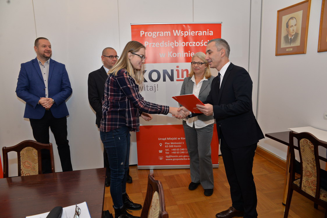 Akademię Młodej Przedsiębiorczości zorganizowało Miasto Konin wraz z Państwową Wyższą Szkołą Zawodową w Koninie oraz Konińską Izbą Gospodarczą. W ramach projektu zorganizowane zostały szkolenia i warsztaty dla studentów o tematyce: rola instytucji wsparcia biznesu w Koninie, planowanie strategiczne w jednostkach samorządowych i podmiotach gospodarczych, sztuka autoprezentacji, wystąpienia publiczne, wsparcie finansowe na start, czy procedura zakładania działalności gospodarczej w świetle nowych przepisów prawnych. Uczestnicy akademii odbyli także dwie wizyty studyjne w konińskich firmach: Hortimex Plus Sp. z o.o. Spółka Komandytowa oraz Blues Hostel w celu nabycia praktycznych umiejętności zakładania i prowadzenia własnej działalności gospodarczej. Szkolenia prowadzone były przez przedstawicieli konińskich instytucji oraz przedsiębiorców.