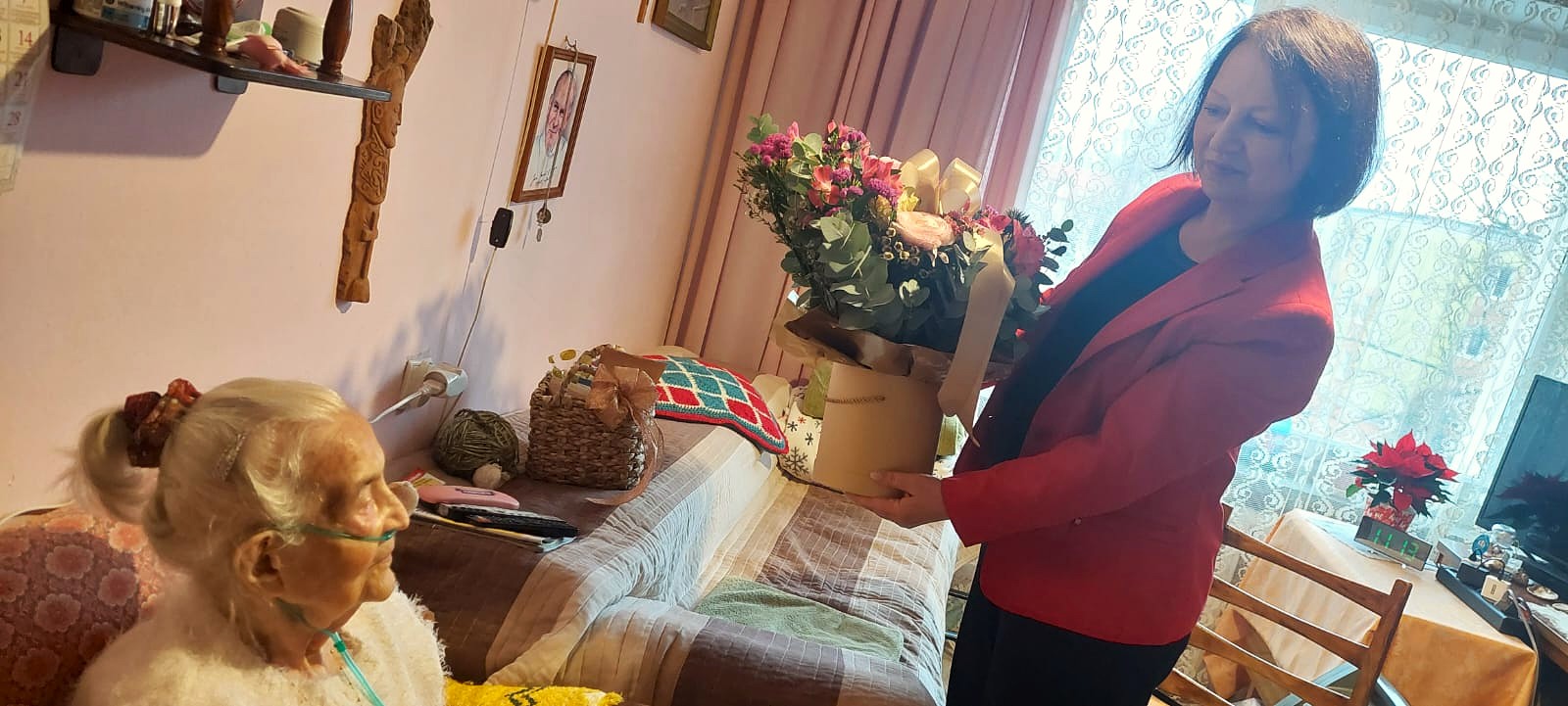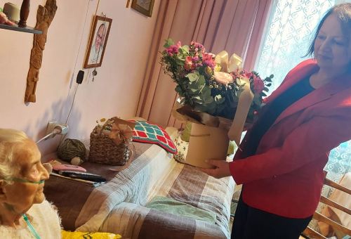 W tym wyjątkowym dniu najstarszą koniniankę odwiedziła kierownik Urzędu Stanu Cywilnego w Koninie – Magdalena Kuznowicz-Górniak. Przekazała od władz miasta najlepsze życzenia oraz piękny bukiet kwiatów.