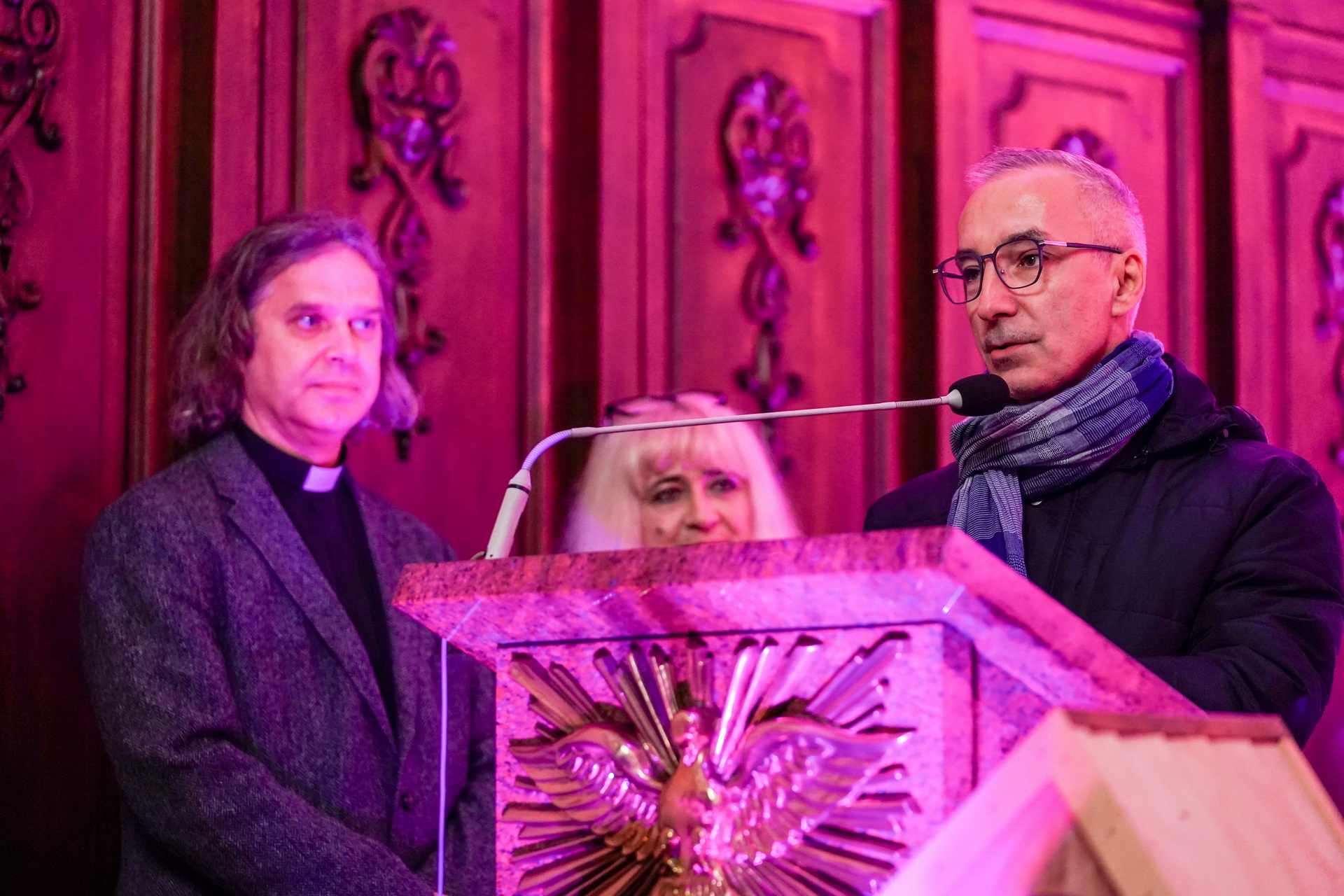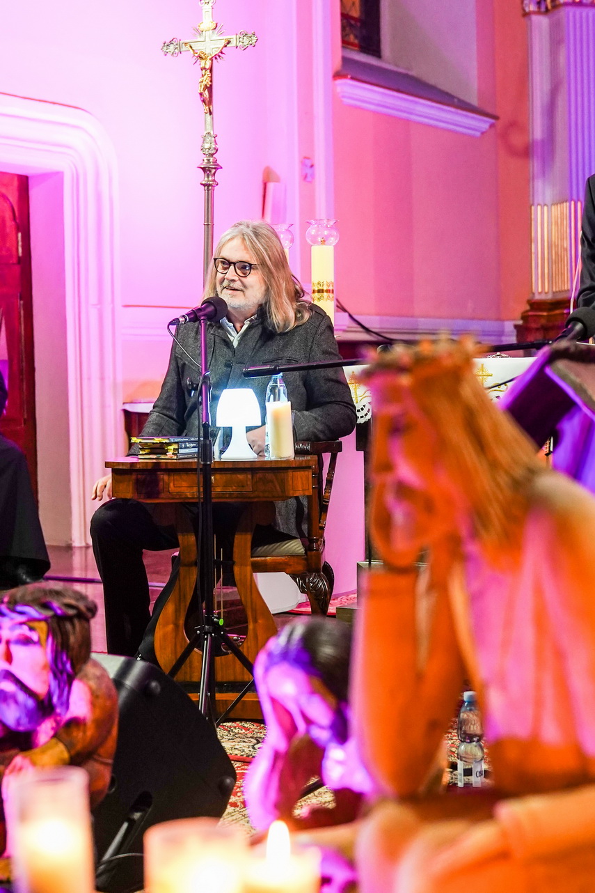 Tegoroczny Tryptyk zaczął się bardzo poetycko i nastrojowo. W piątkowy wieczór bowiem na stopniach ołtarza pojawili się dwaj niezwykli artyści: Krzysztof Cezary Buszaman – poeta o nieprzeciętnym talencie, doceniany w kraju i na świecie oraz niezwykłej skromności muzyk i kompozytor, wykonujący utwory jedynie z tekstami Buszmana – Sylwester Bernaciak. Obaj artyści, przez recytację i muzykę sprawili, że na nie jednym licu pojawiły się łzy – wzruszenia, refleksji, zachwytu.