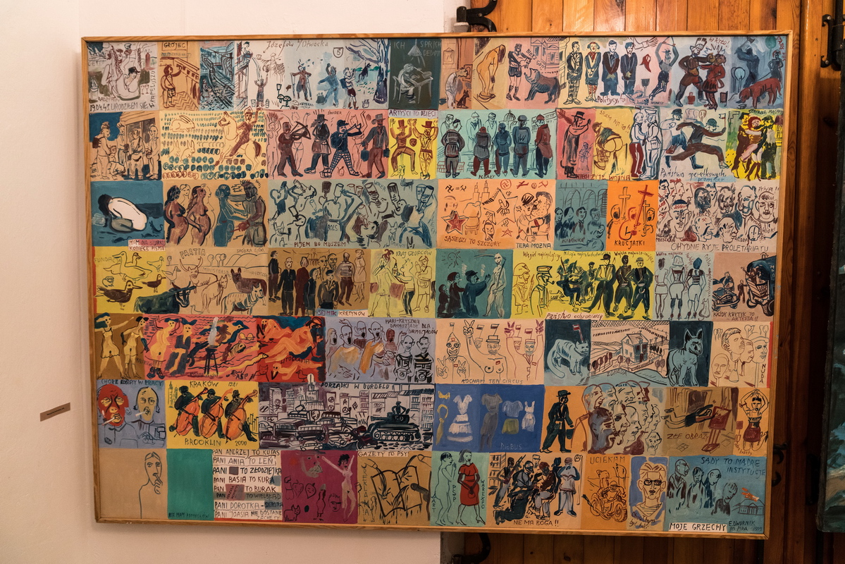 Na wystawie prezentowane są 44 wielkoformatowe obrazy znakomitego artysty, nazywanego często następcą Nikifora. Są wśród nich bardzo wczesne prace („Boisko”), jak i też te, które artysta namalował na swój dyplom.