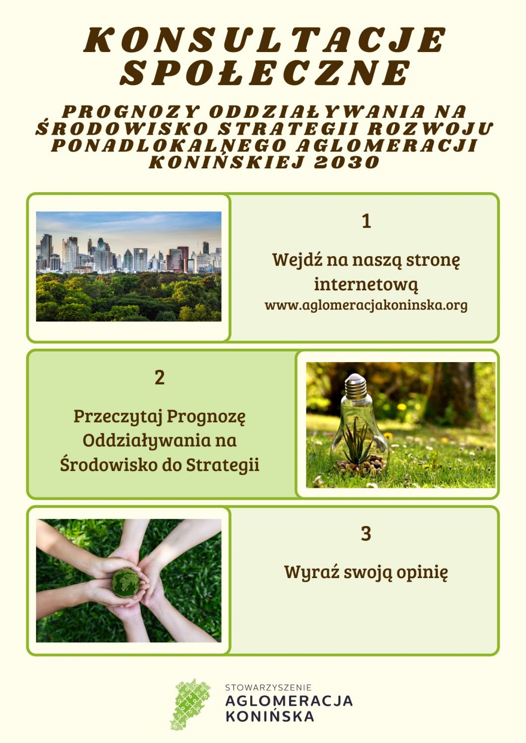 Projekt aktualizacji „Strategii Rozwoju Ponadlokalnego Aglomeracji Konińskiej 2030” wraz z Prognozą oddziaływania na środowisko oraz stanowiskami Regionalnego Dyrektora Ochrony Środowiska w Poznaniu oraz Państwowego Wojewódzkiego Inspektora Sanitarnego dostępne są w wersji papierowej w siedzibie Stowarzyszenia Aglomeracja Konińska, ul. płk. Witolda Sztarka 1, 62-500 Konin oraz do pobrania poniżej.