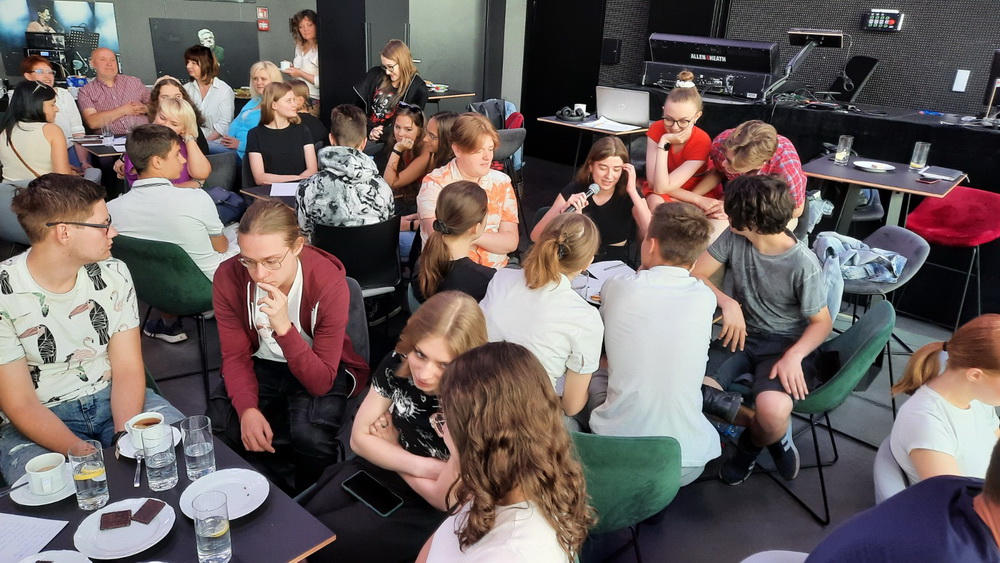 Agnieszka Gołębiowska koordynatorka projektu opowiedziała o tym - „Jak stosować metodę design thinking we wprowadzaniu innowacji w szkole? Czyli historia naszego procesu projektowego”. Anna Hryniewicz z Fundacji Instytutu Edukacja Pro Futuro wprowadziła słuchaczy w świat neurobiologii i neurocepcji poprzez warsztat „Jak tworzyć bezpieczeństwo psychologiczno-emocjonalne w szkole?”. Sylwia Fuhrmann-Komar oraz Marceli Kwaśniewski z Fundacji Europejski Instytut Mediacji dzielili się swoimi doświadczeniami z mediacji rówieśniczej w warsztacie „Jak postępować w sytuacjach konfliktu między uczniami?”.