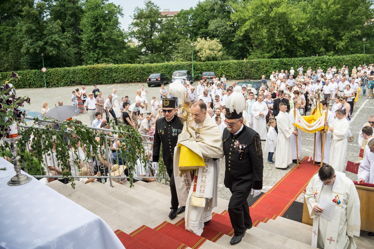 Trasa procesji wiodła do czterech ołtarzy, symbolizujących cztery Ewangelie. Każdy był zbudowany przez inną parafię – św. Maksymiliana, NMP Królowej Polski i św. Wojciecha. Przy każdej modlono się m.in. za miasto i jego mieszkańców, pomyślność narodu i państwa.