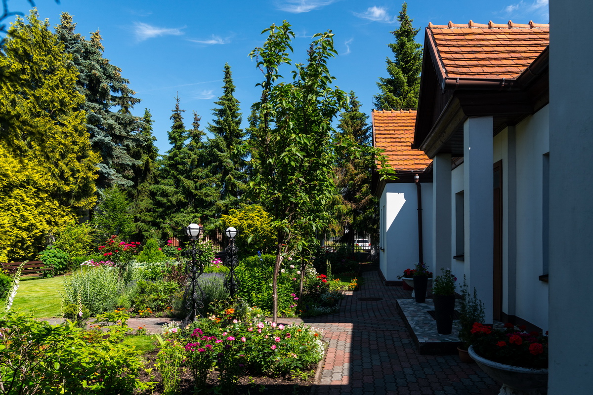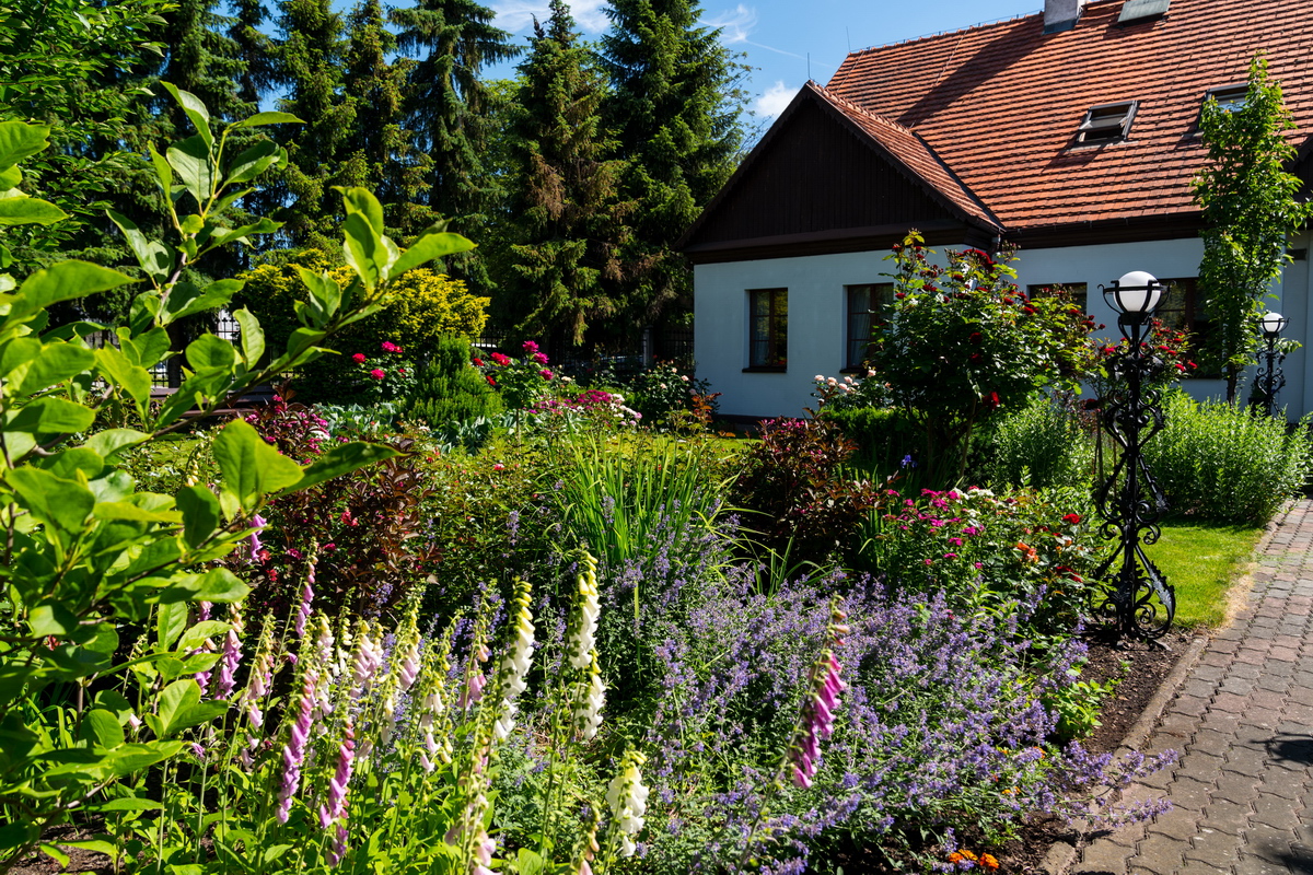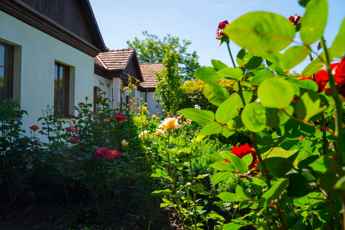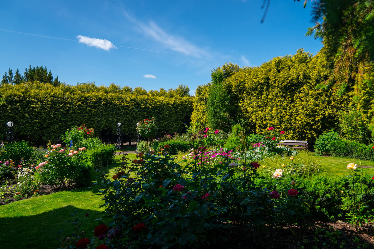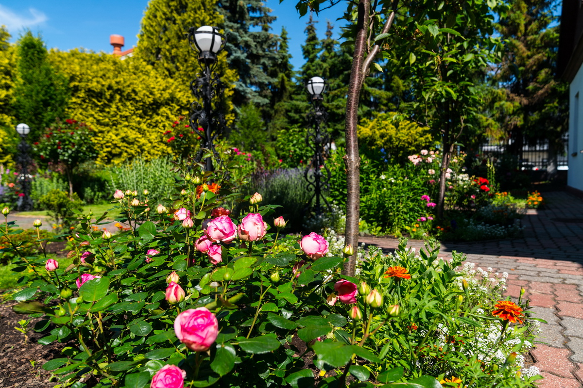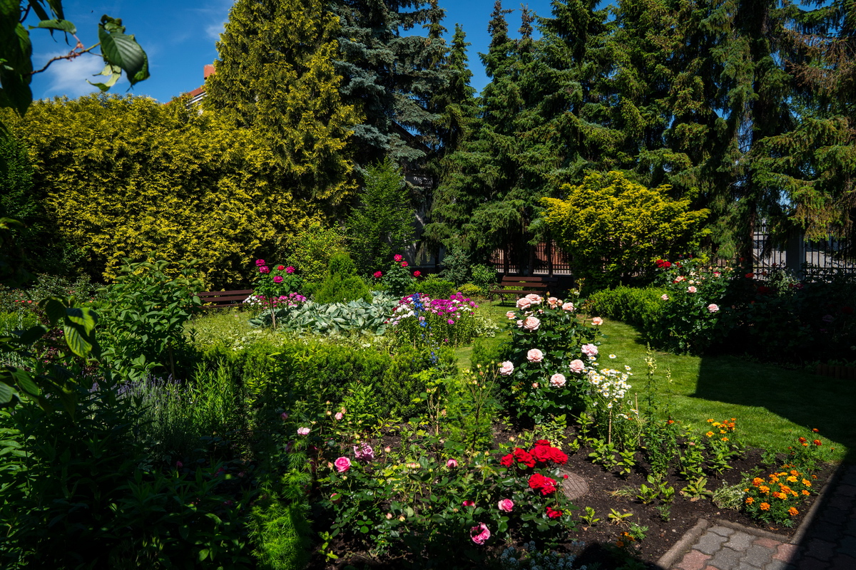 Kilkanaście gatunków róż oraz wiele uzupełniających owo rozarium kwiatów i bylin upiększa ogród znajdujący się przy dworku Zofii Urbanowskiej (obecnie Urząd Stanu Cywilnego).