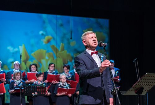 Na scenie zobaczyliśmy także Józefa Mazurkiewicza, poetę, pisarza i rysownika, który przedstawił swoje wiersze. Tuż przed koncertem artysta zaprosił na wernisaż swoich grafik. Na wystawie, którą można oglądać w Strefie K, prezentowanych jest kilkadziesiąt rysunków, które przedstawiają historię naszego miasta oraz miejsca, które dziś znamy już tylko z archiwalnych zdjęć. Koncert Seniorzy dla Miasta rozpoczął się ,,nutą” refleksji . Wspomniano dwie osoby, które odeszły od nas, ale jak podkreślają wokaliści, na zawsze pozostaną w ich sercach.