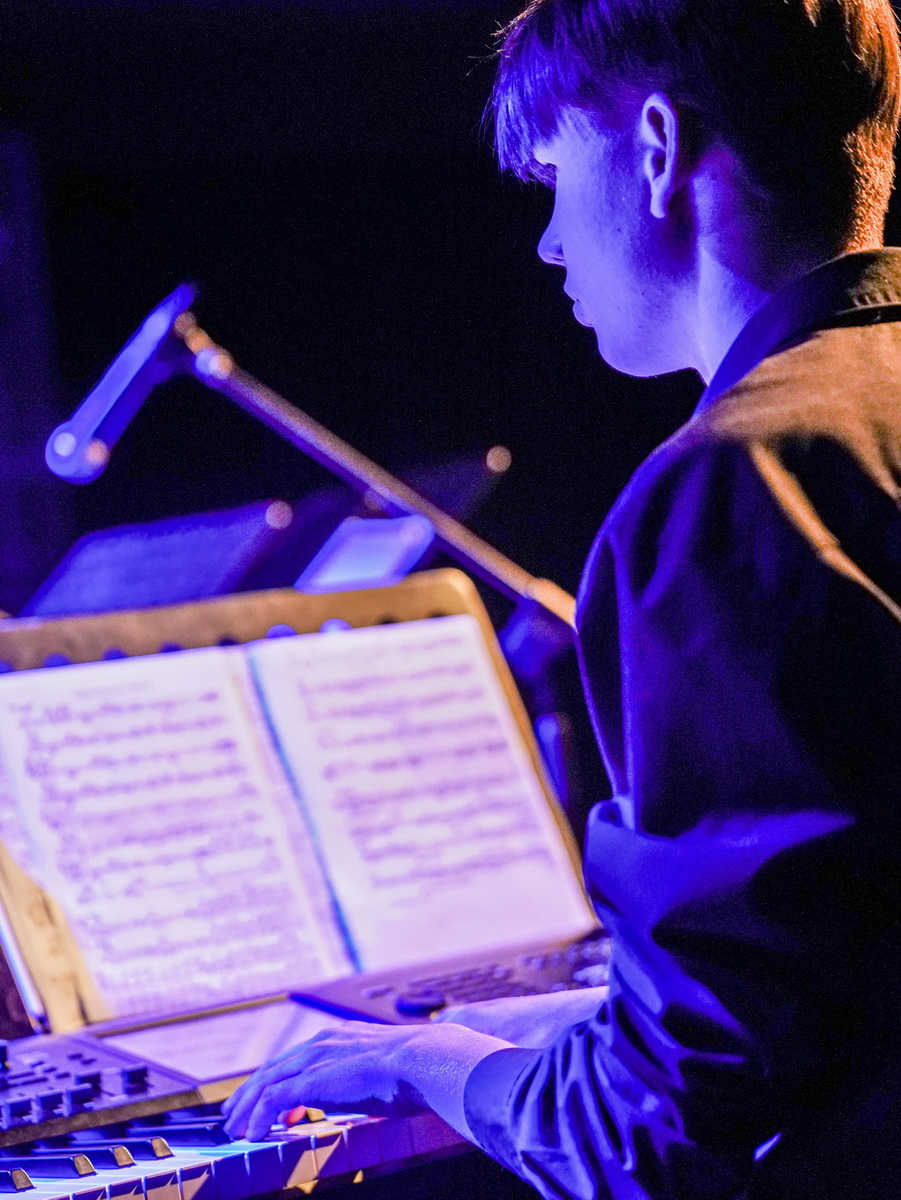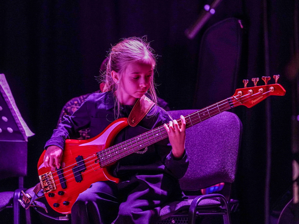 Na zdjęciach widać młodych muzyków podczas koncertu.