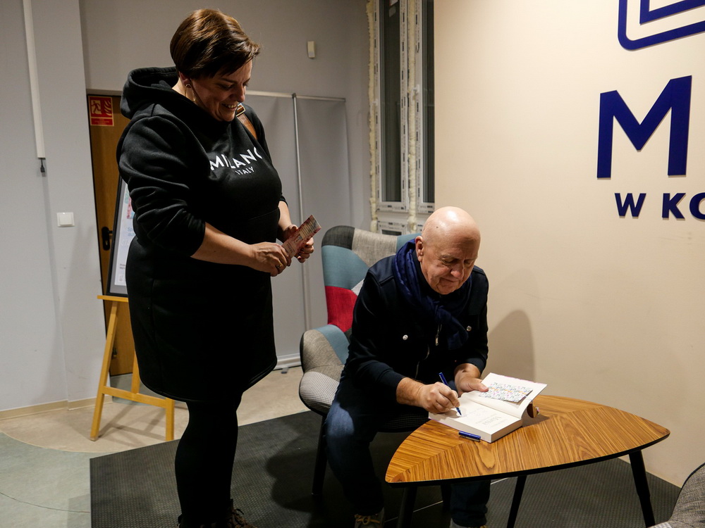 Jej tytuł może być mylący. Nie dotyczy bowiem autora, lecz nastolatki wchodzącej w dorosłe życie, z jej wzlotami i upadkami, zderzaniem się z codziennością - raz łatwiejszą, raz bardzo trudną. W czasie spotkania prowadzonego przez Marcina Szafrańskiego, naczelnego „Przeglądu Konińskiego”, dzielił się spostrzeżeniami o pracy dziennikarza i pisarza, podkreślając, że pisarstwo to jego pasja. Pytany o źródła inspiracji mówił, że fabułę wymyśla od początku do końca, choć czasem zdarza się, że pewne jej fragmenty osadza w konkretnych miejscach, z konkretnymi osobami. Przyznał też, że rozpoczął już pracę nad kolejną książką. O czym będzie – nie chciał zdradzić. Zapowiedział również kolejne spotkanie z czytelnikami, na… tarasie swojego domu.