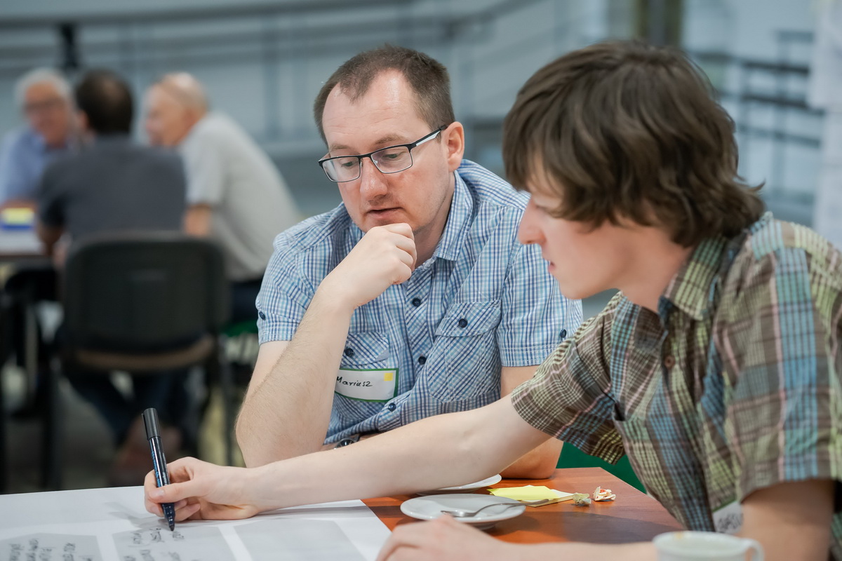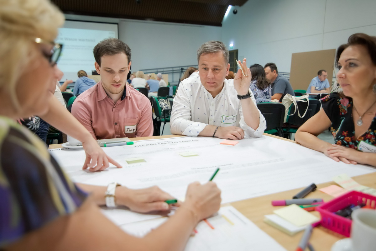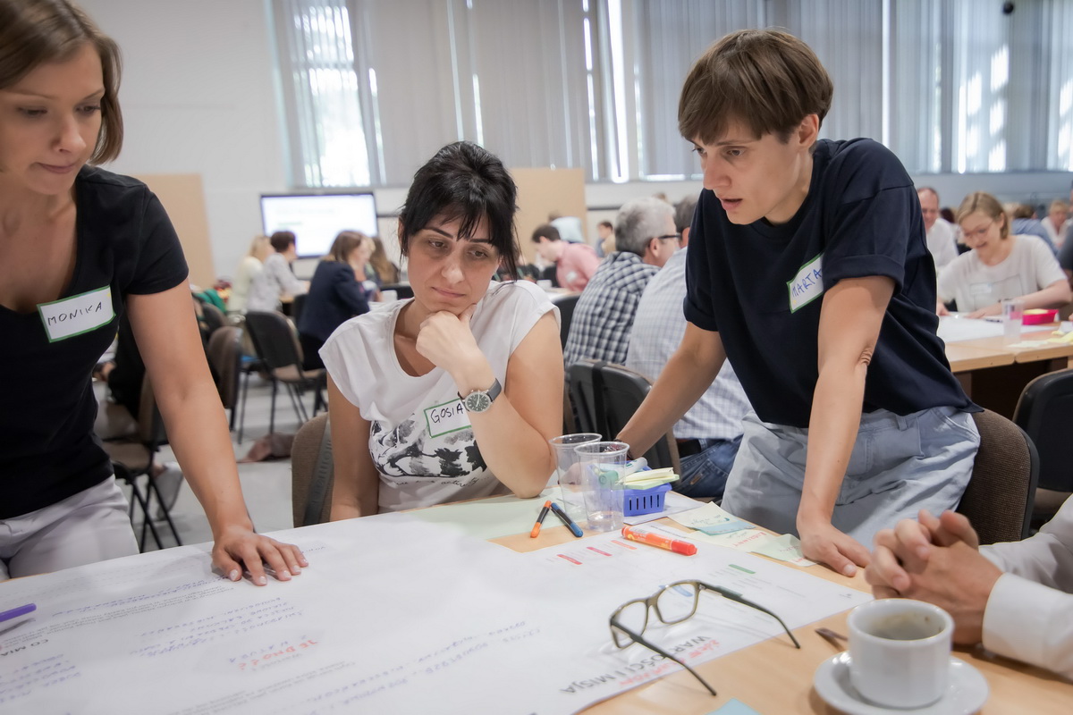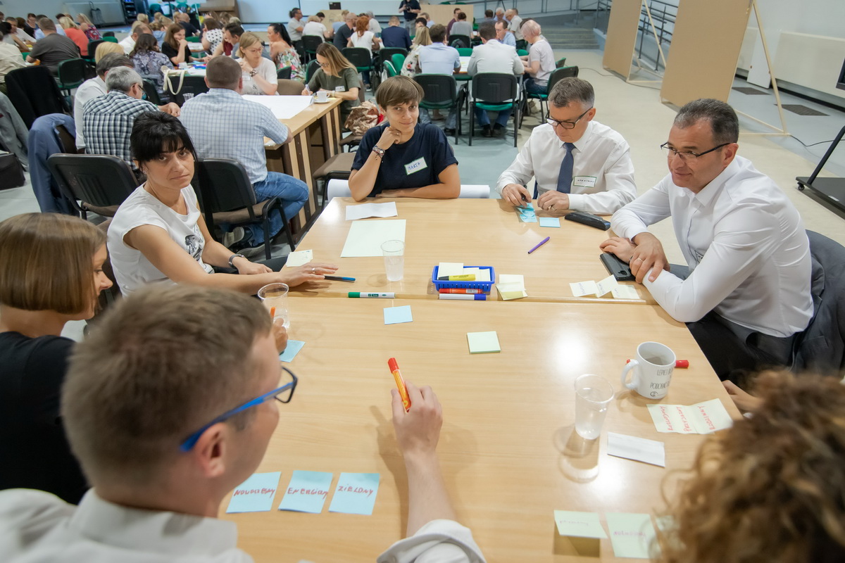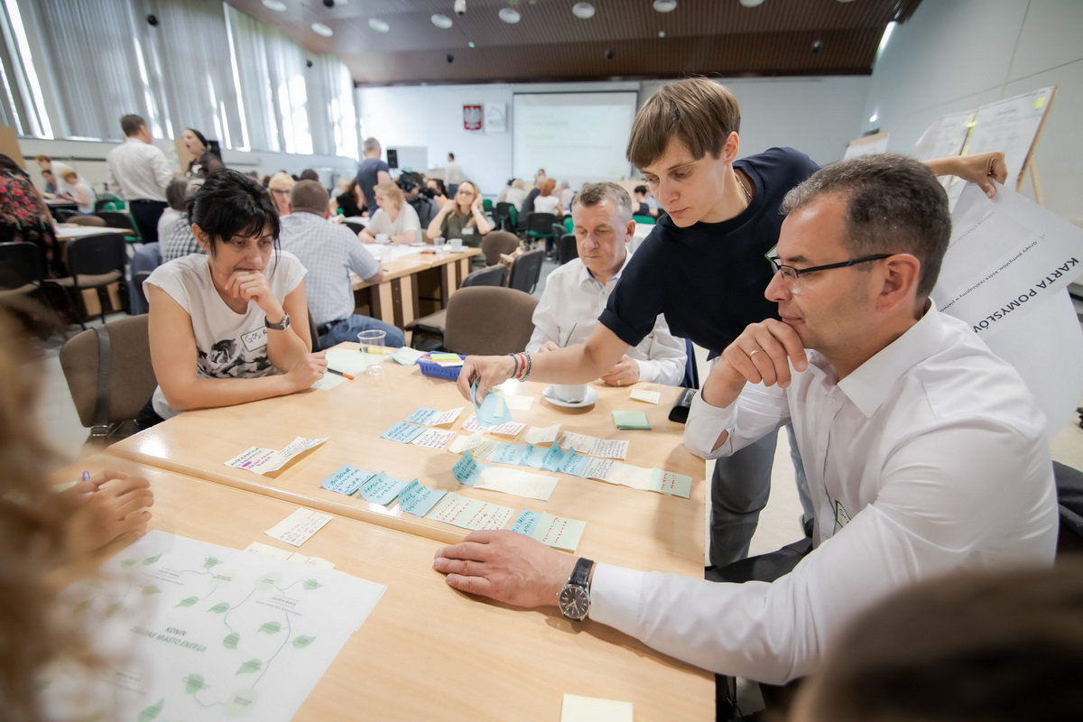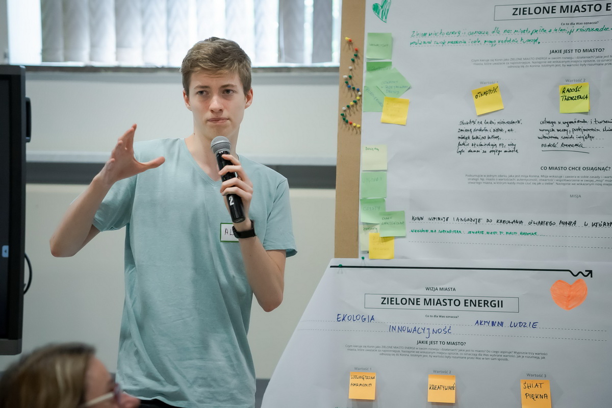Wszystkie osoby, które 18 czerwca pojawiły się w PWSZ, zostały podzielone na 20 zespołów. O przydziale do określonego stolika decydował przypadek, dlatego w każdym zespole byli przedstawiciele różnych środowisk - często osoby, które wcześniej się nie znały. Podczas pięciogodzinnej pracy zespoły pracowały nad określeniem misji, wartości, obszarów i celów strategicznych ważnych dla realizacji idei Konin Zielone Miasto Energii. W finale zespoły przedstawiły swoje propozycje konkretnych działań, dotyczące np. wspierania małych przedsiębiorców, aktywizacji mieszkańców, promocji inicjatyw oddolnych.