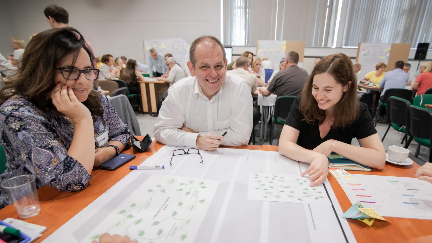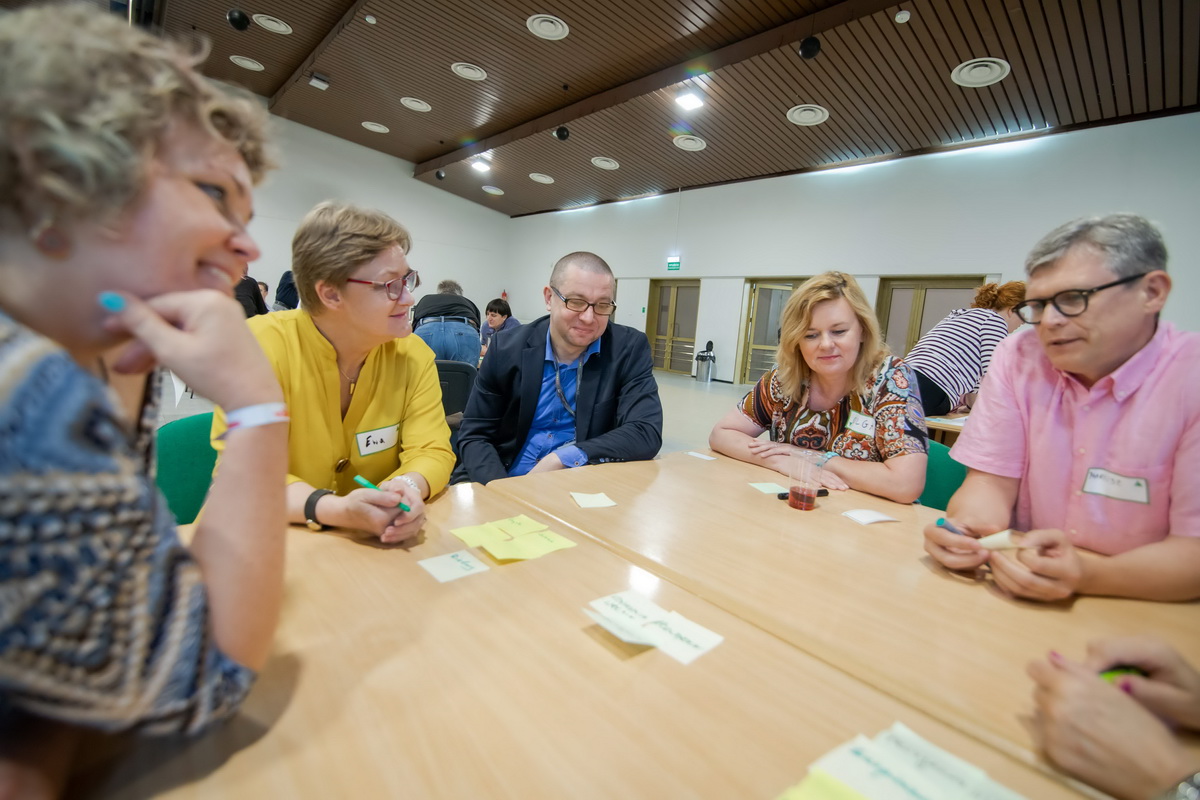Była międzypokoleniowa energia i burza mózgów, choć nie brakowało twórczych sporów! Około 130 mieszkańców Konina - wśród nich m.in.: nauczyciele, aktywiści, ekolodzy, uczniowie, urzędnicy, przedsiębiorcy, seniorzy, ludzie kultury i sportu, prezydenci Konina - budowało nową strategię rozwoju miasta. Był to pierwszy tak duży warsztat. Odbył się pod hasłem „Kreujemy razem”. Miejscem pracy była uczelniana aula PWSZ przy ul. Przyjaźni.