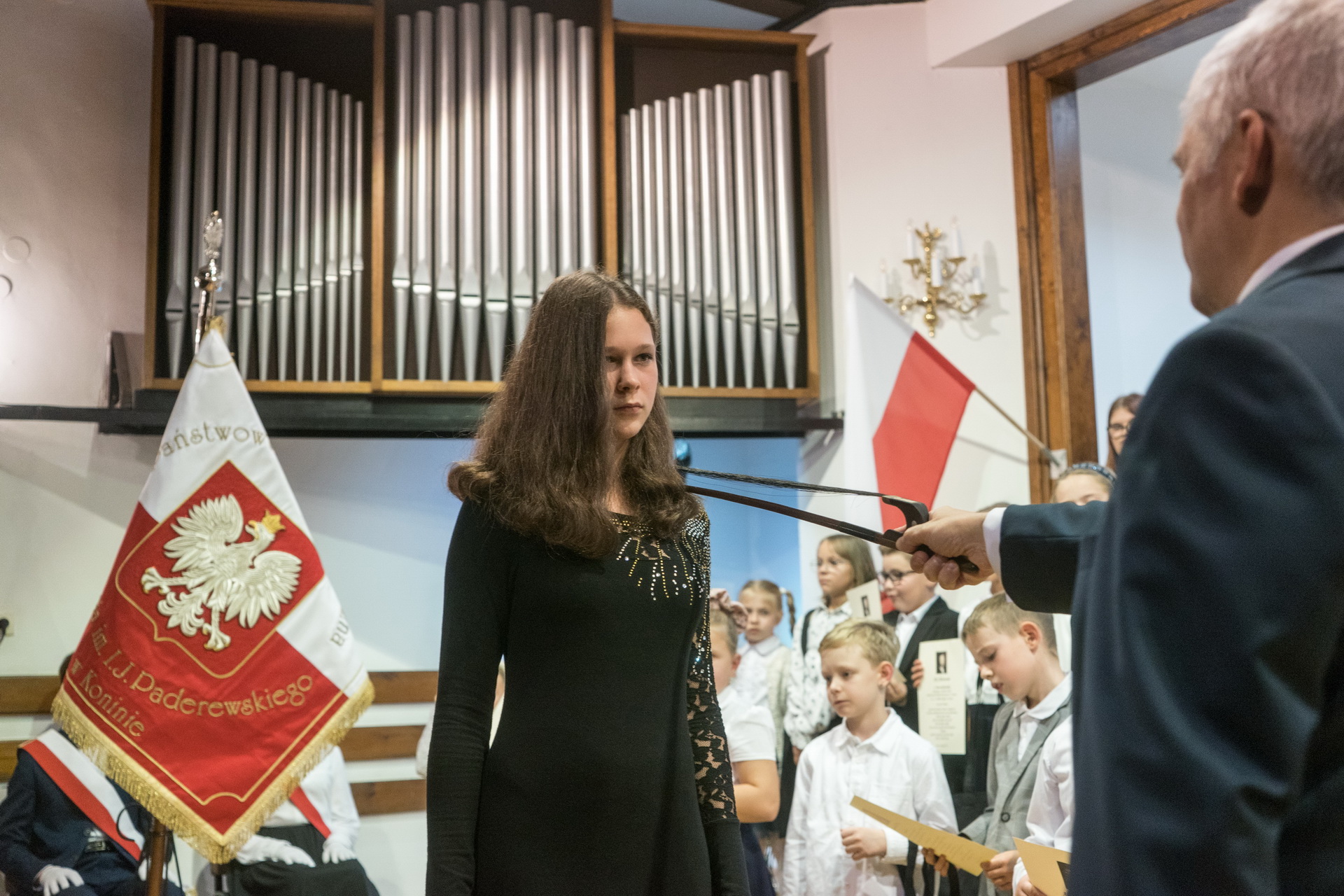 Jak każe tradycja uroczystości rozpoczął hejnał Konina, napisany i podarowany miastu przez jego kompozytora Witolda Friemanna, a szkolny chór złożony z uczniów i nauczycieli odśpiewał średniowieczny hymn „Gaude Mater Polonia”. Po nim dyrektor szkoły Krzysztof Pydyński, w towarzystwie uczniów, pod tablicą upamiętniającą patrona placówki złożył wiązankę kwiatów. Krzysztof Pydyński przypomniał też sylwetkę, dokonania i muzyczne oraz patriotyczne przesłanie, które pozostawił współczesnym Ignacy J. Paderewski, wielki kompozytor i patriota.